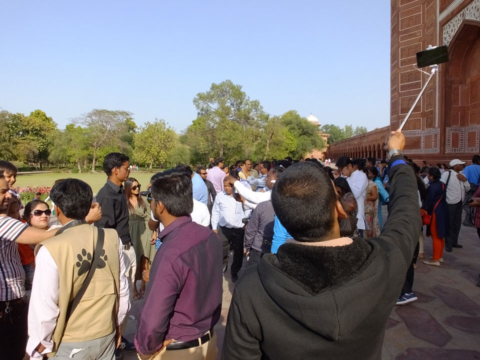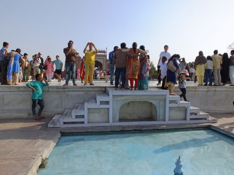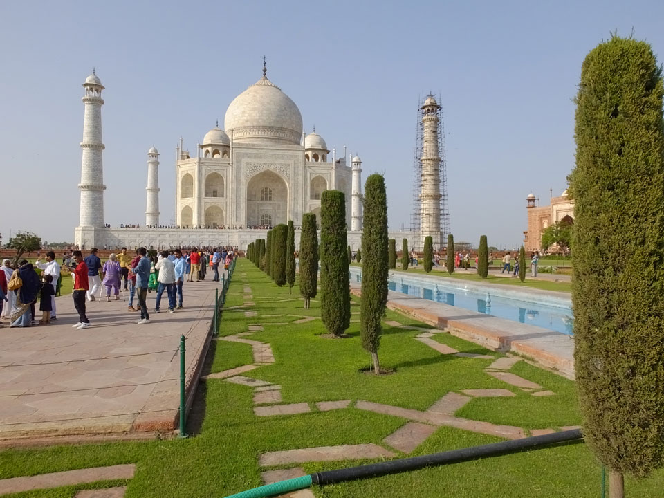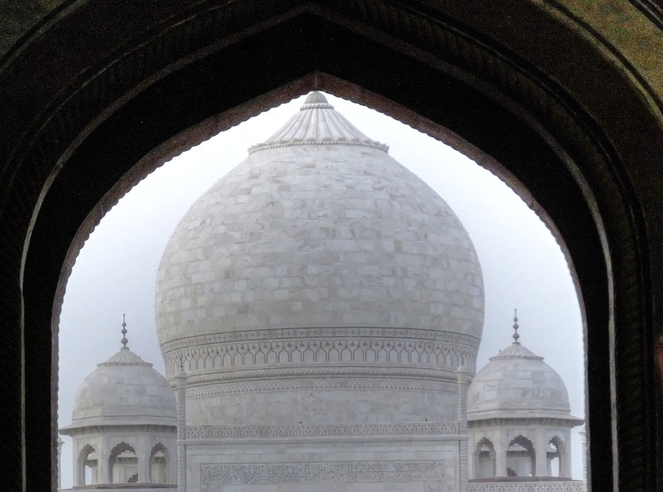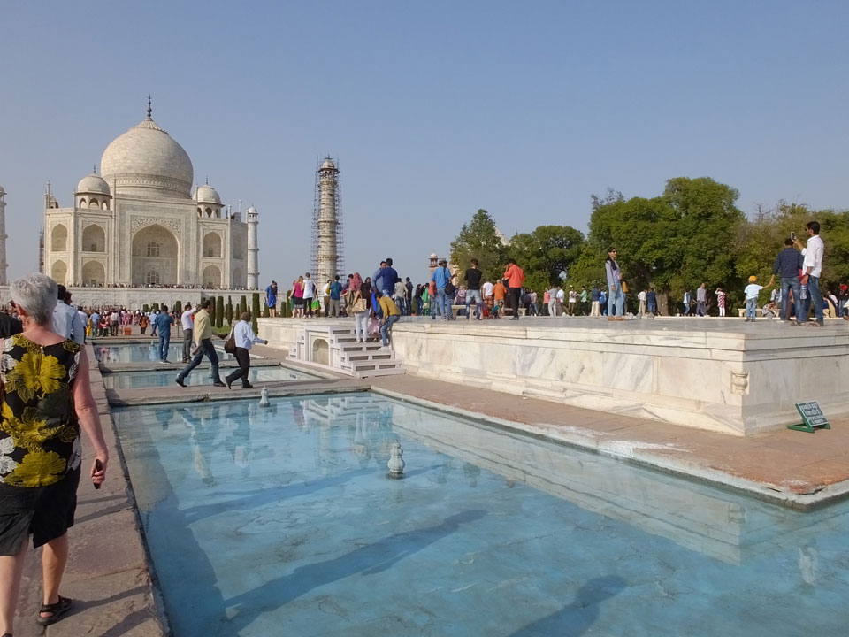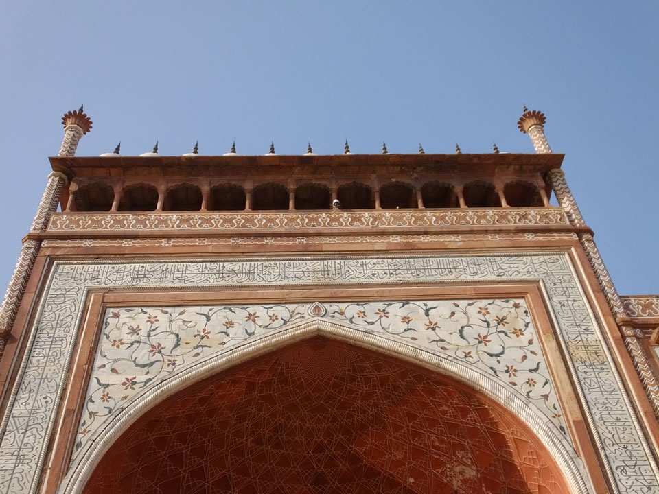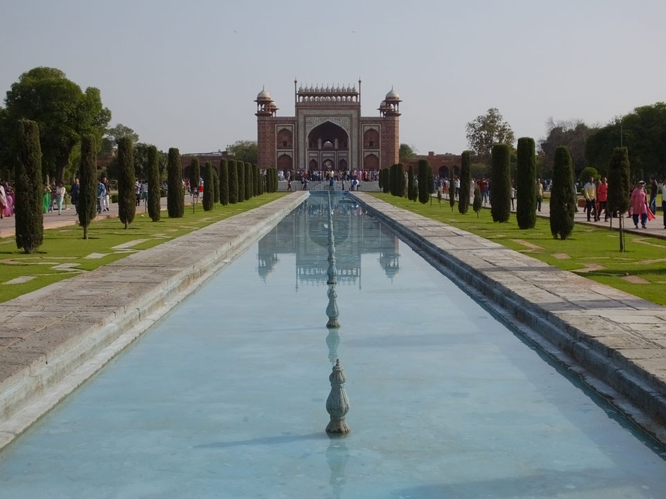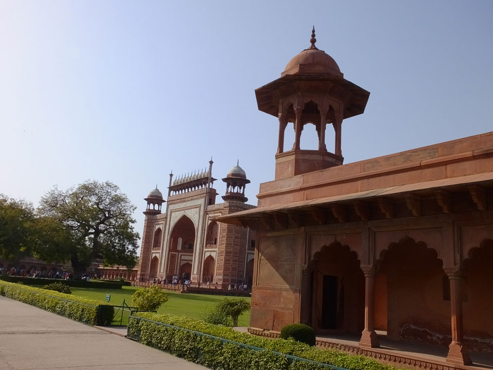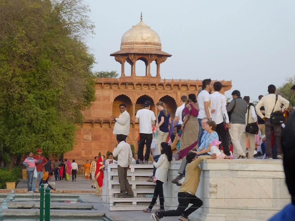 Rein ging’s recht fix, drinnen waren dann viele Leute. Dann sah ich schon hinter der Mauer die Kuppel eines der berühmtesten Bauwerke überhaupt – das Taj Mahal!