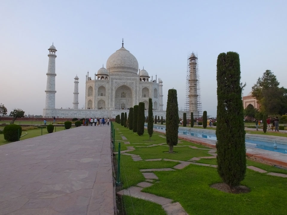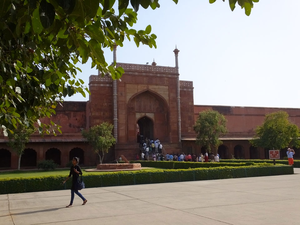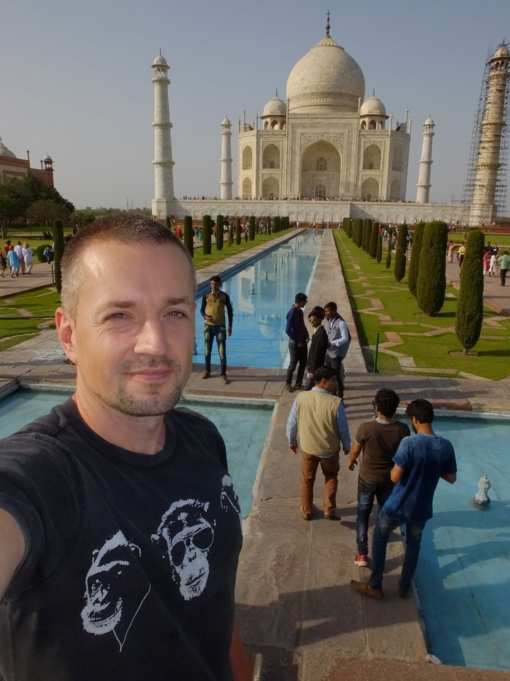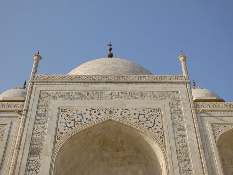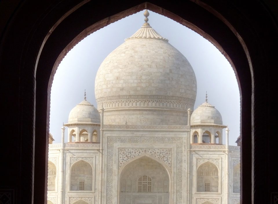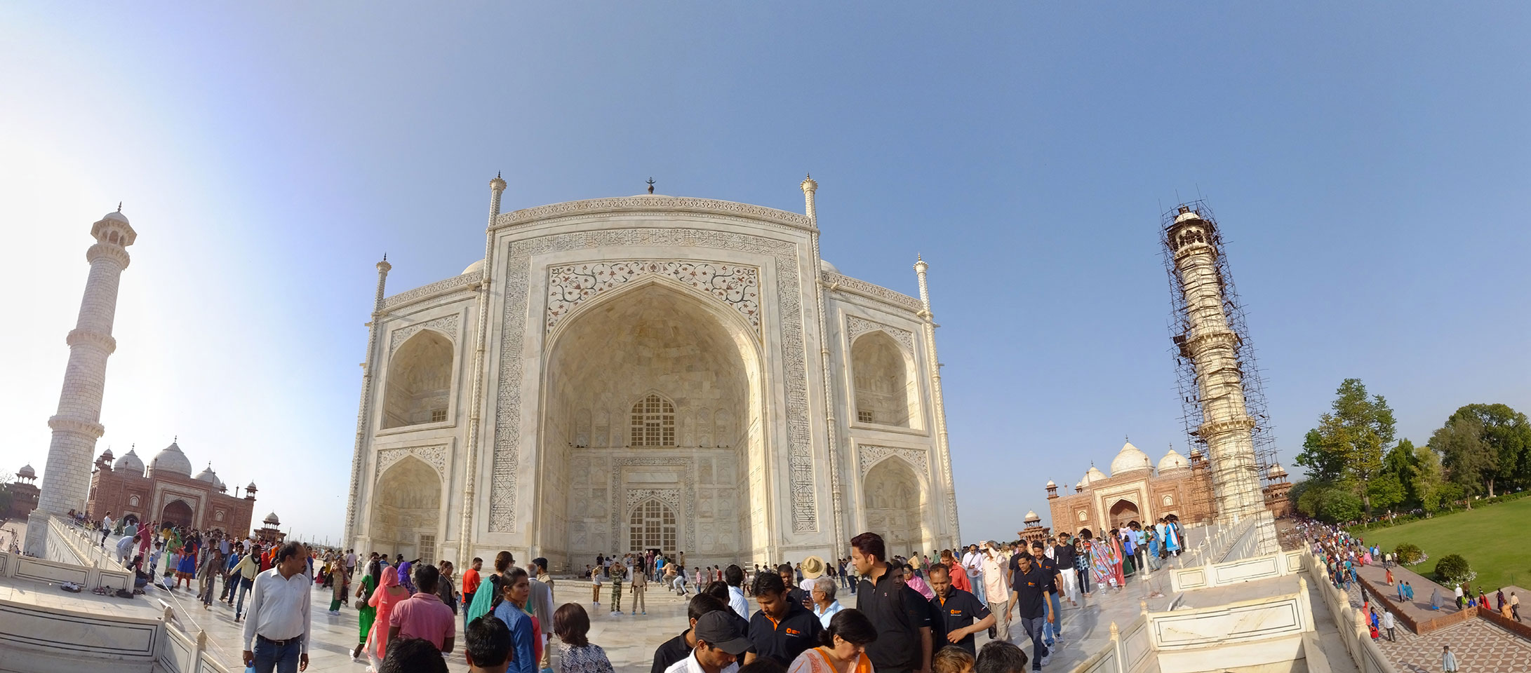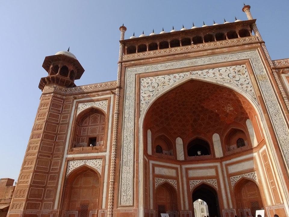 Rein ging’s recht fix, drinnen waren dann viele Leute. Dann sah ich schon hinter der Mauer die Kuppel eines der berühmtesten Bauwerke überhaupt – das Taj Mahal!