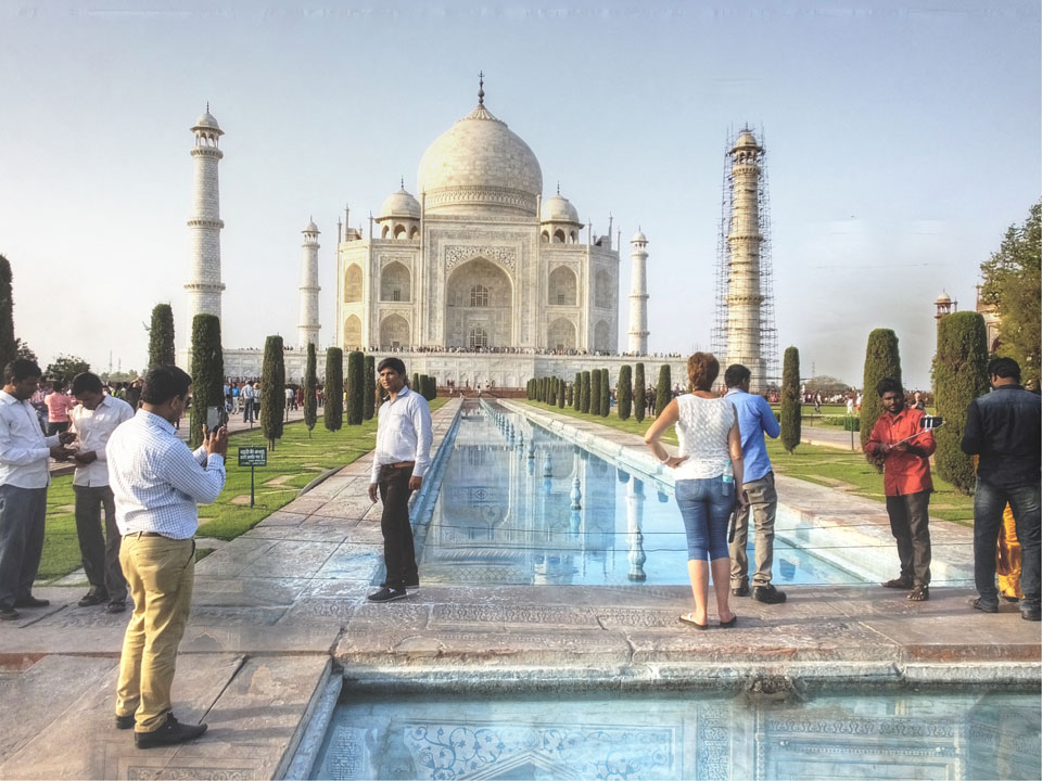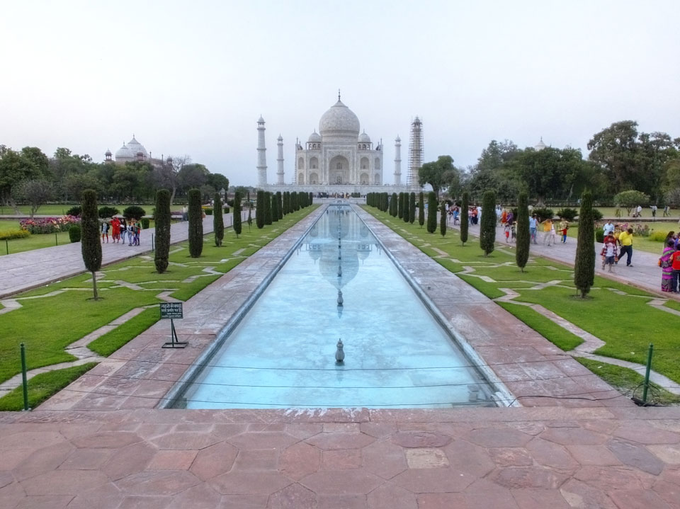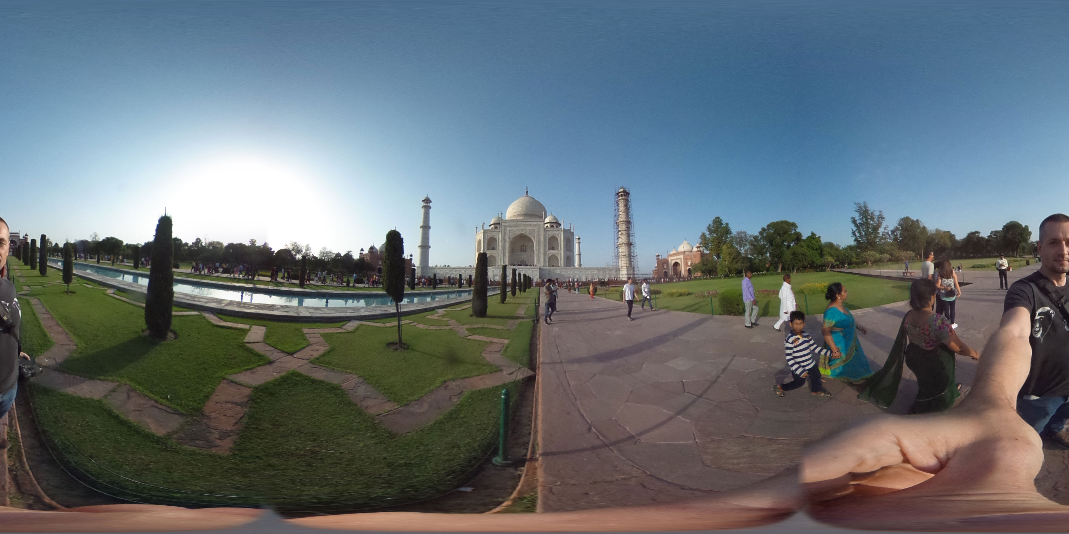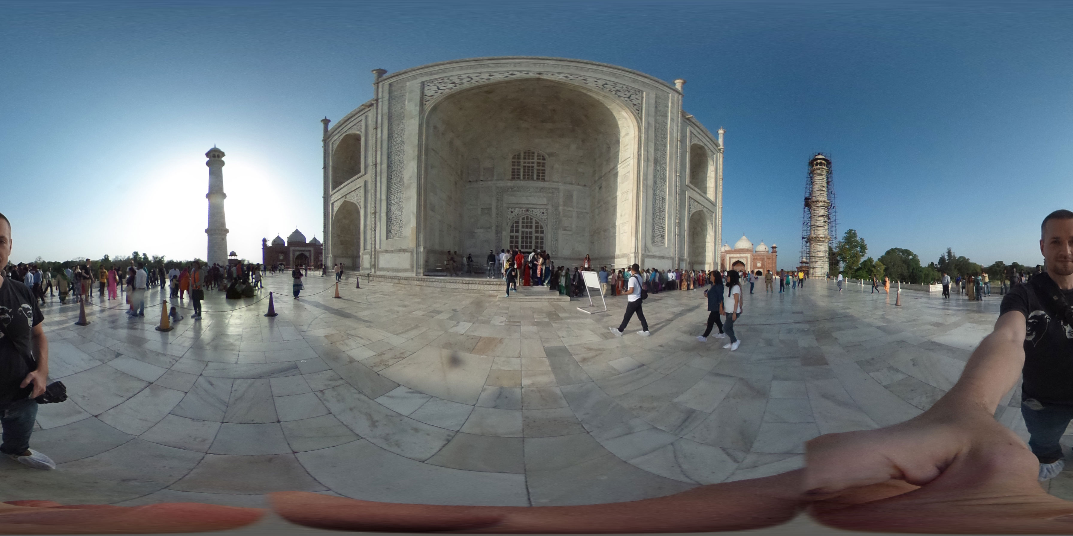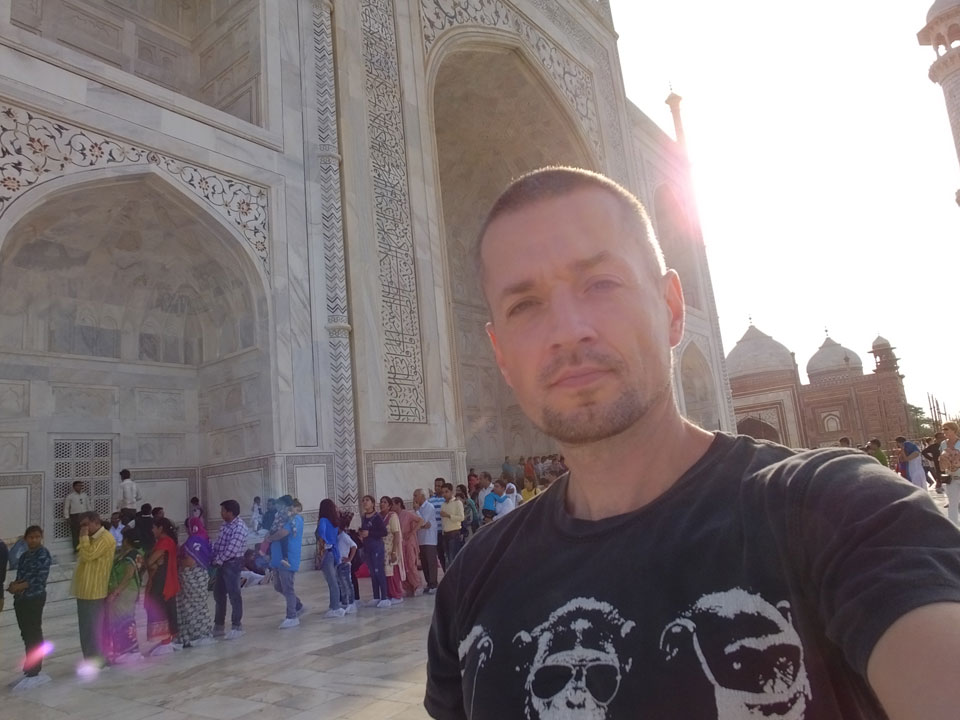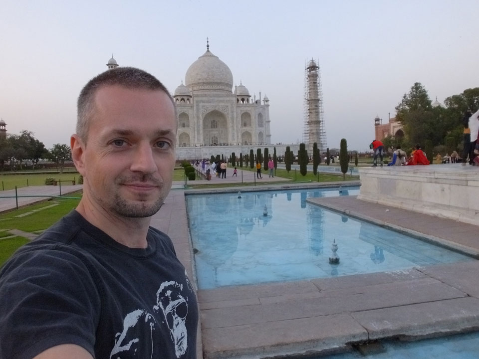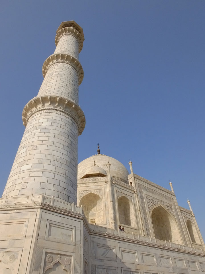 Rein ging’s recht fix, drinnen waren dann viele Leute. Dann sah ich schon hinter der Mauer die Kuppel eines der berühmtesten Bauwerke überhaupt – das Taj Mahal!