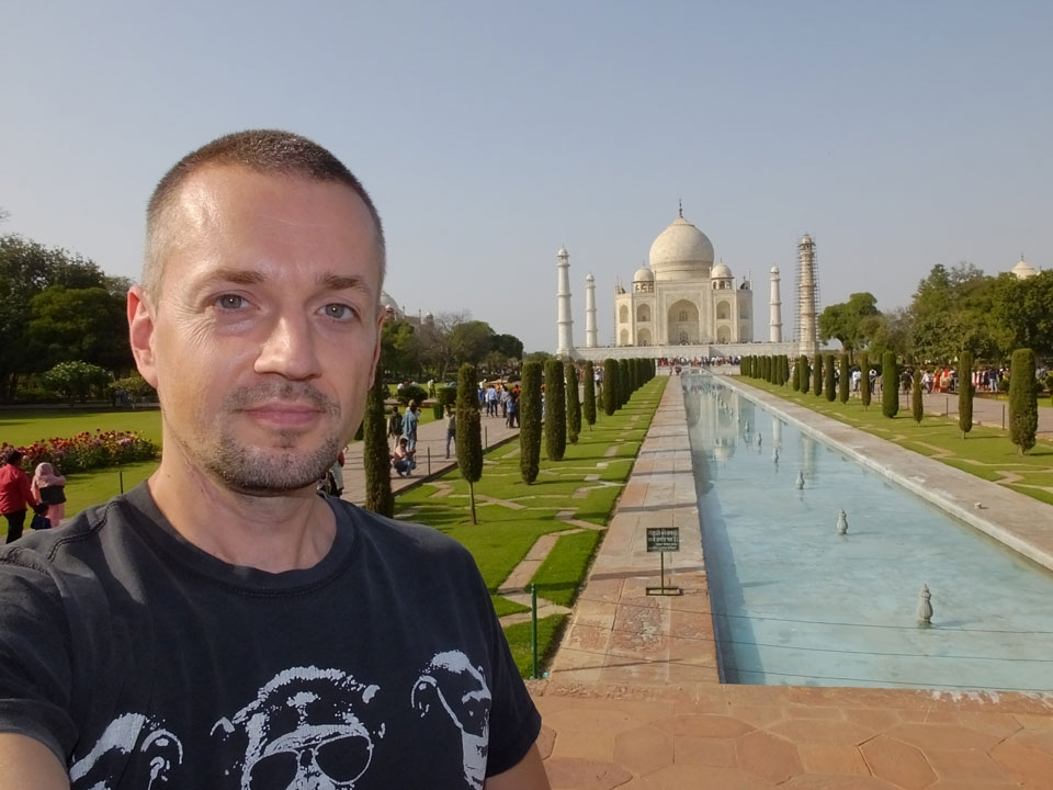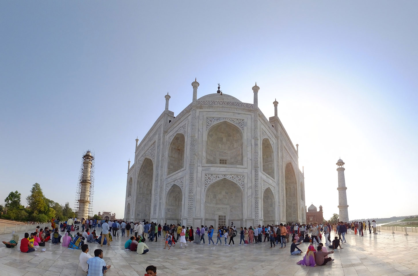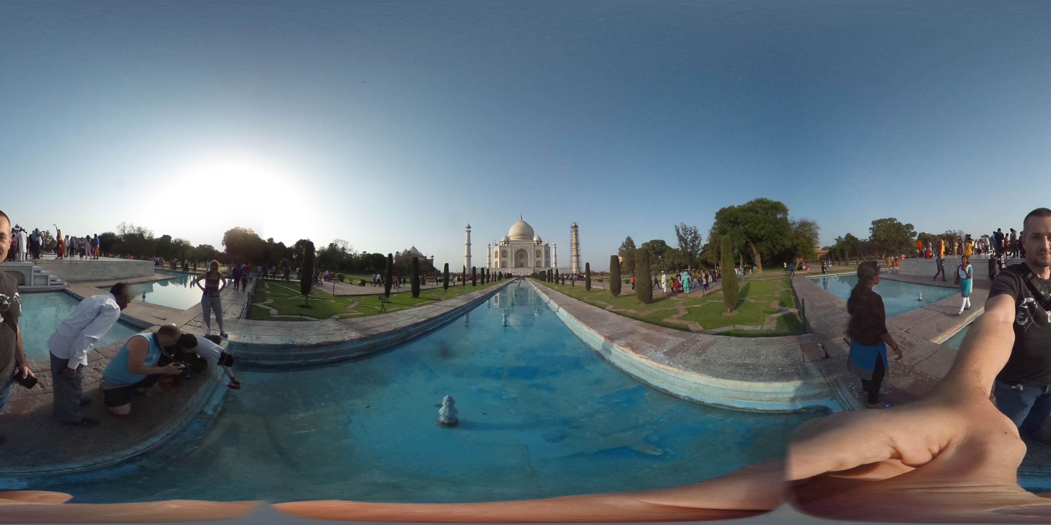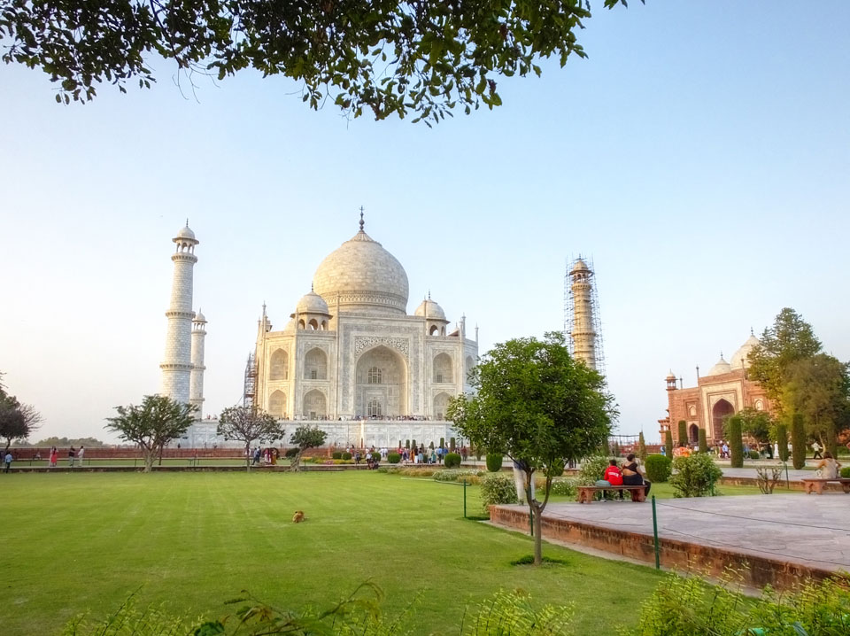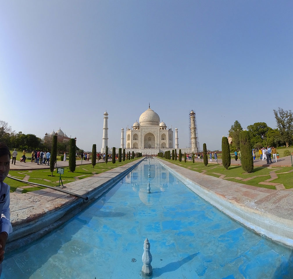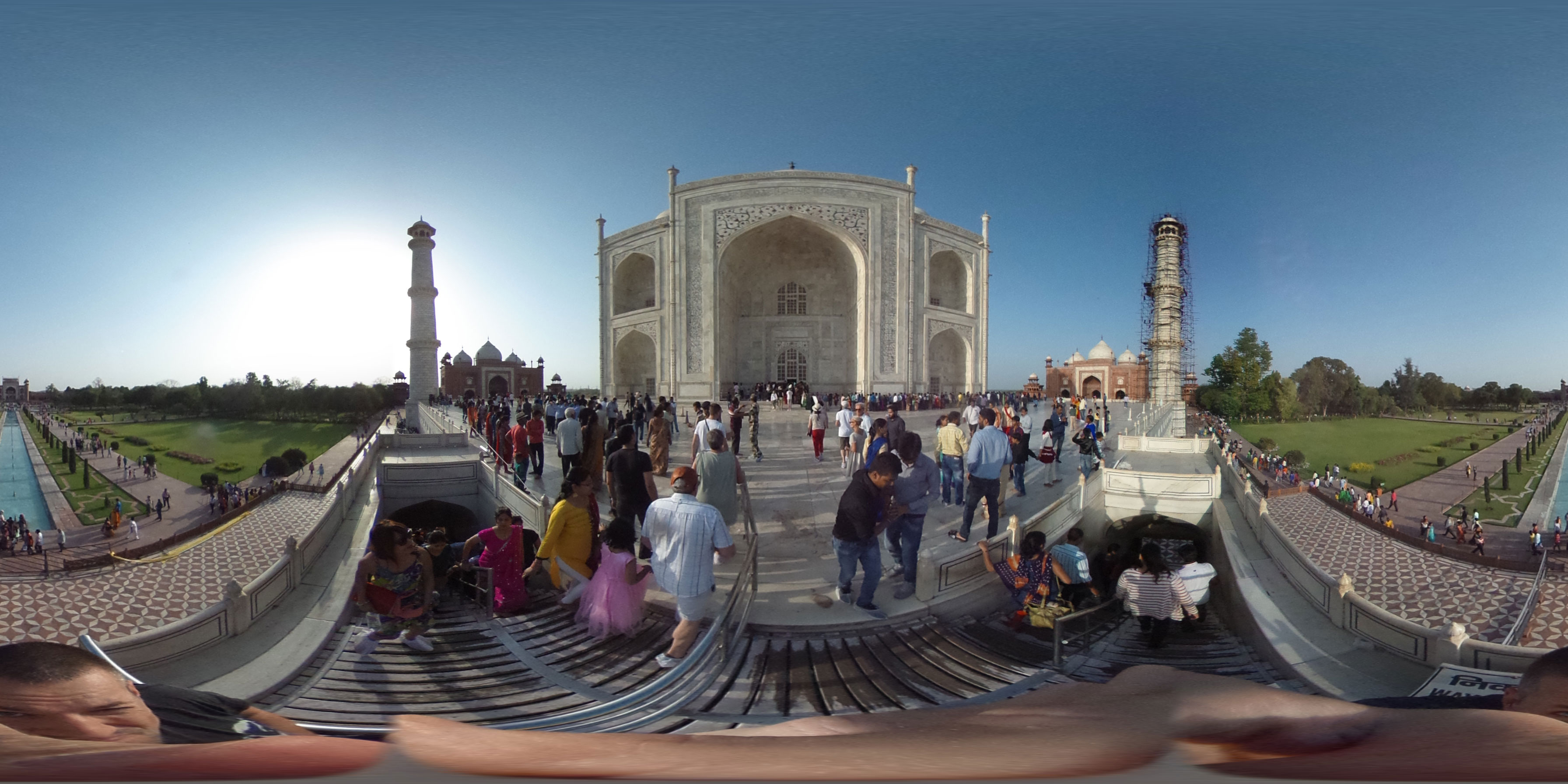Rein ging’s recht fix, drinnen waren dann viele Leute. Dann sah ich schon hinter der Mauer die Kuppel eines der berühmtesten Bauwerke überhaupt – das Taj Mahal!