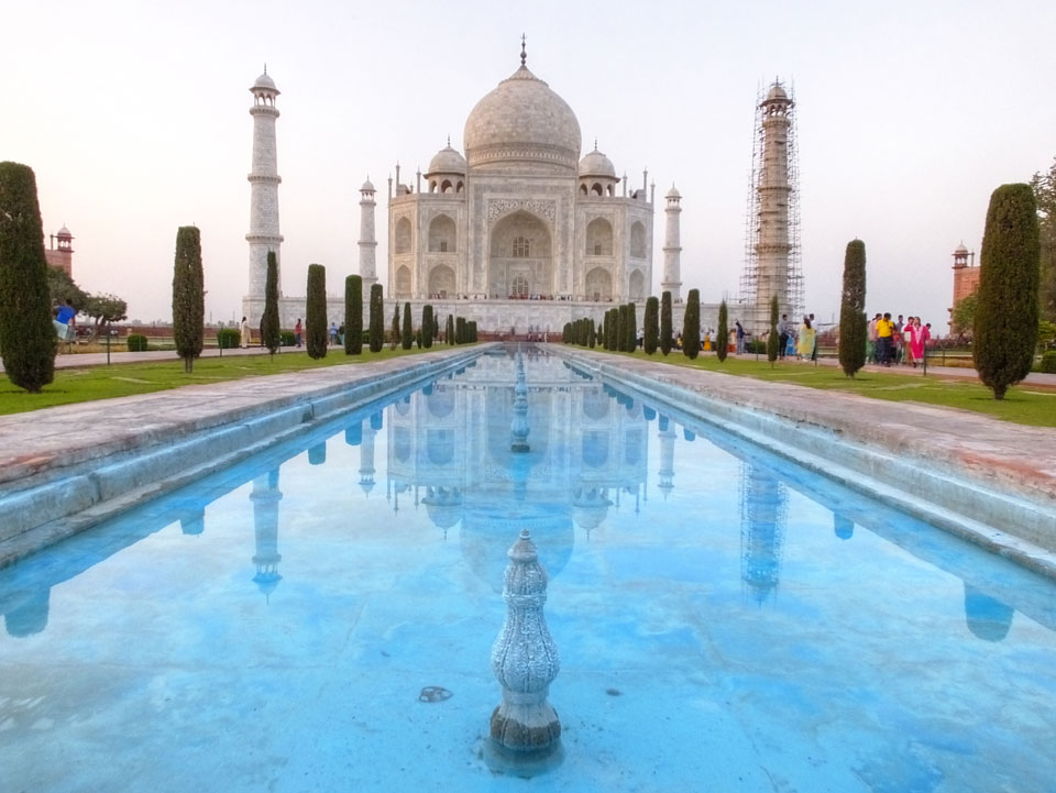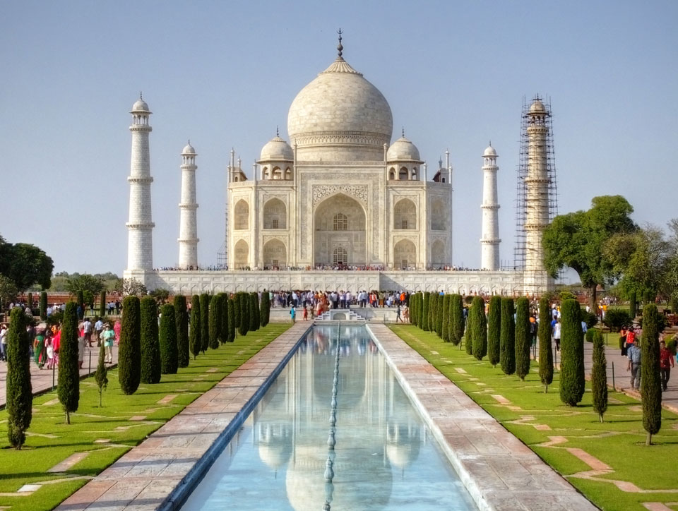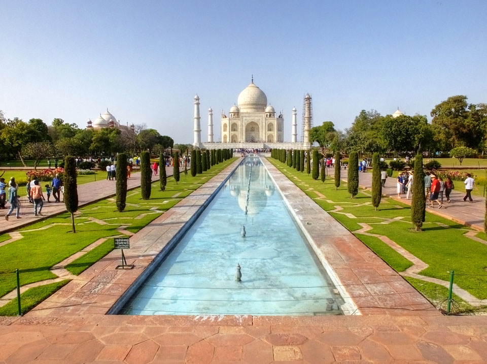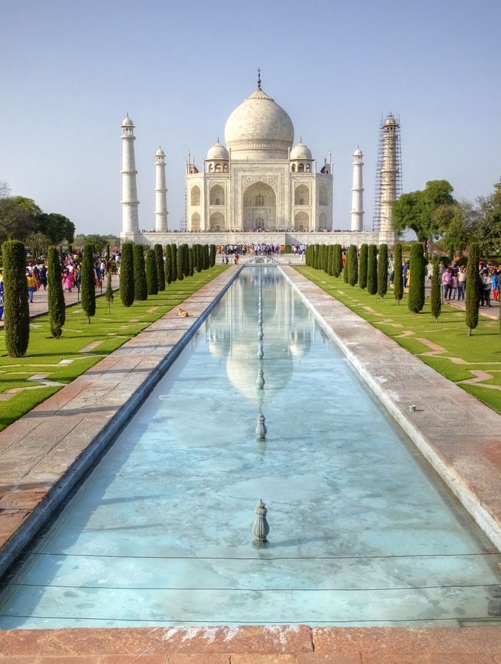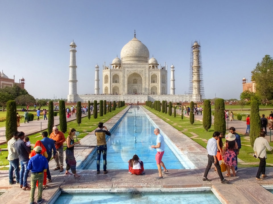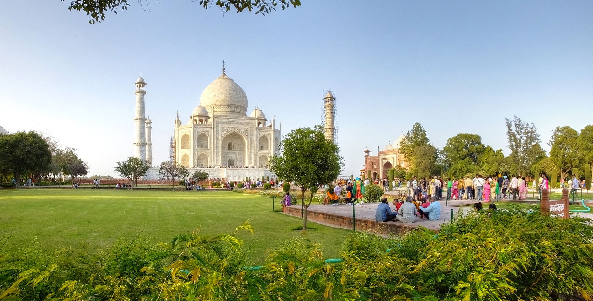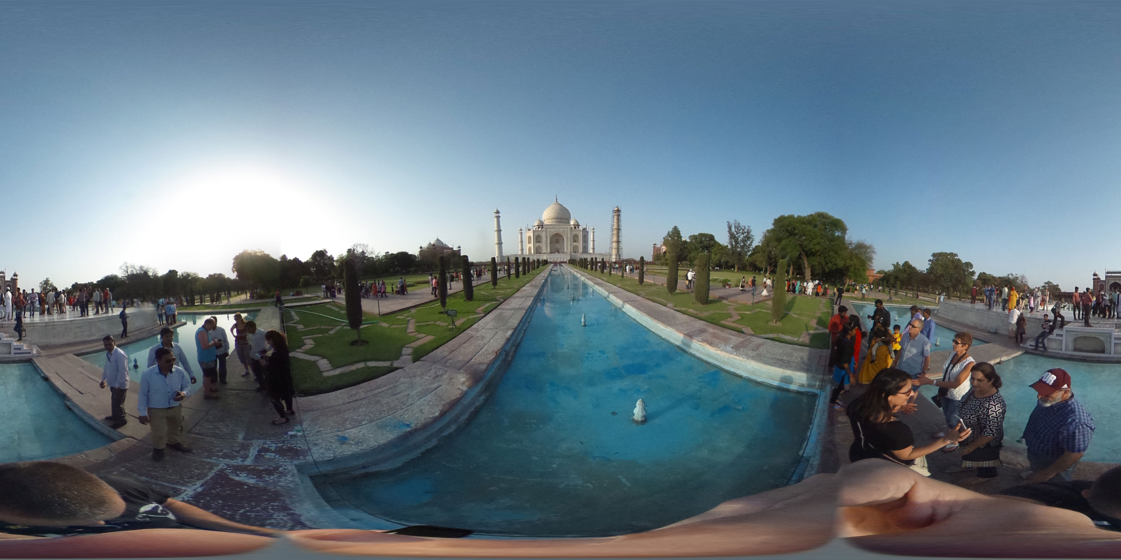 Rein ging’s recht fix, drinnen waren dann viele Leute. Dann sah ich schon hinter der Mauer die Kuppel eines der berühmtesten Bauwerke überhaupt – das Taj Mahal!