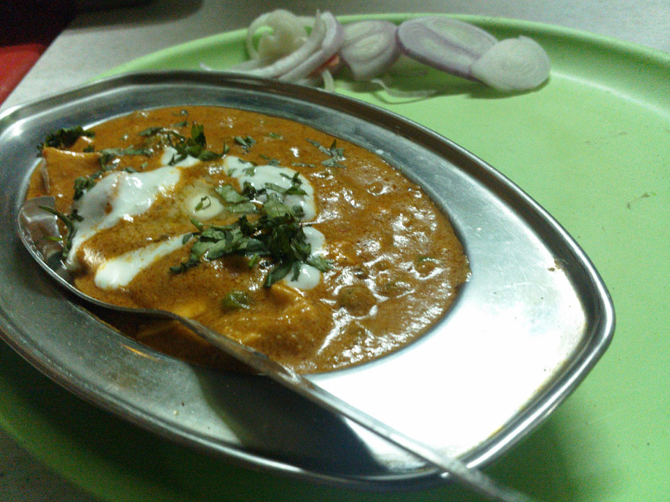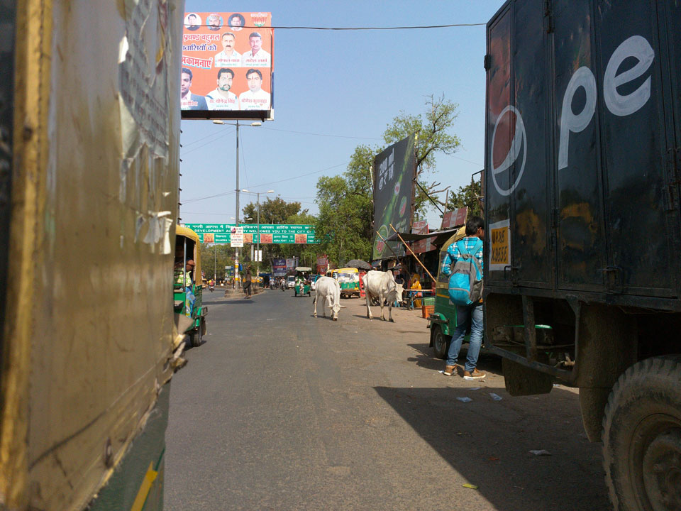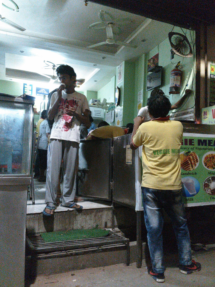 Nach ’ner Dusche dann ging ich was essen. Gleich um die Ecke gab’s ein ausreichend gutes Veg. Restaurant. Kurze Hosen sind hier die falsche Bekleidung. In Delhi fliegen Unmengen an Mücken umher.