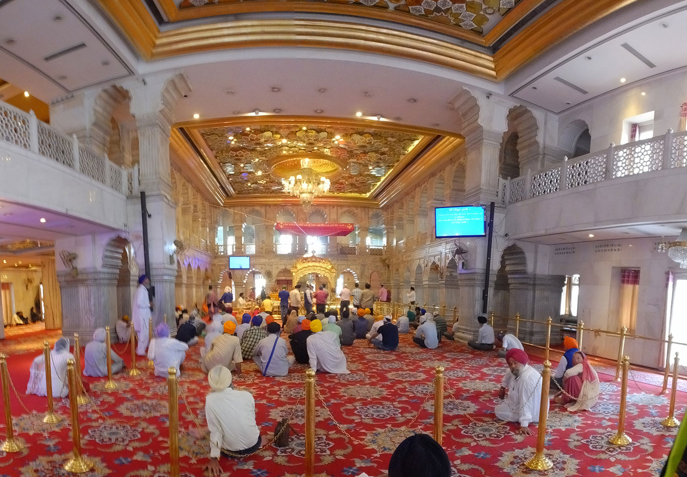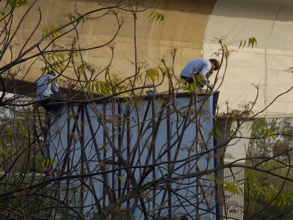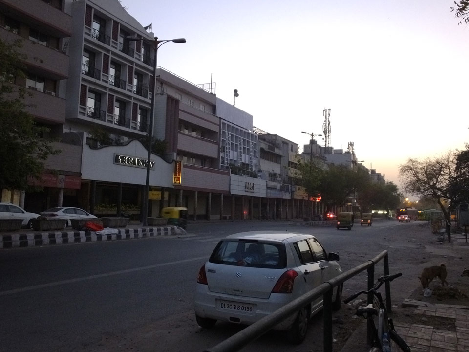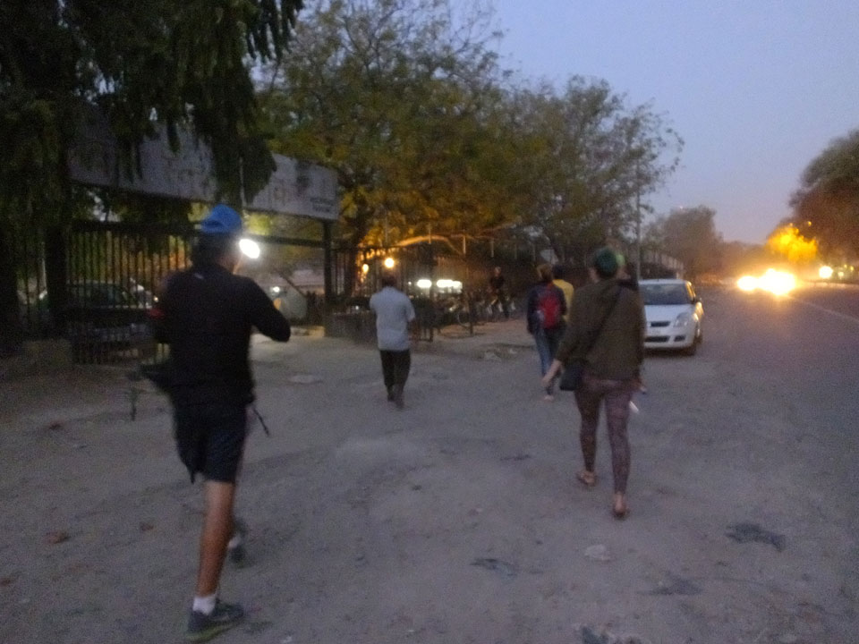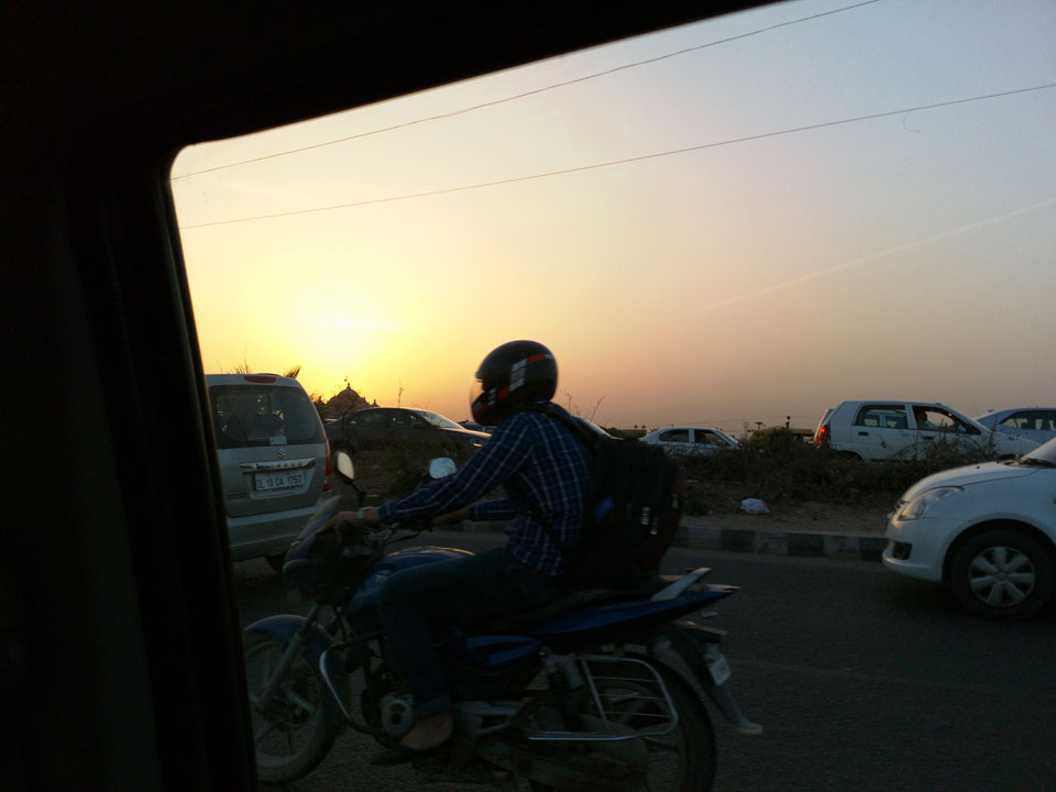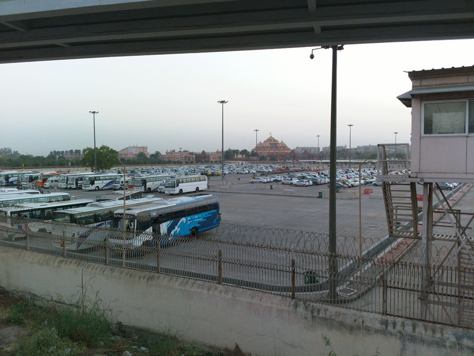 Ich schlief bis ca. 17:00 und machte um 18:00 los zum Akshardham. Dort am großen Hindu-Tempel ist nach Sonnenuntergang ein riesiges Wasserspiel, was toll sein soll. Cameras sind nicht erlaubt. Mit dem Uber ging’s hin doch der Fahrer war eine Katastrophe. Er verstand kein Englisch, was Ok wäre, doch irgendwie traute er dem Google Maps Navi nicht und fuhr viel zu weit und quer herum. Fährend der Fahrt im Navi herumzuwurschteln, sah gefährlich aus. Wir legten über die doppelte Strecke zurück, standen im Stau, während die Zeit und meine Geduld verstrich. Statt 15′ Fahrtzeit, saß ich eine halbe Stunde bis dahin – und verpasste den Eintritt zum Tempel.