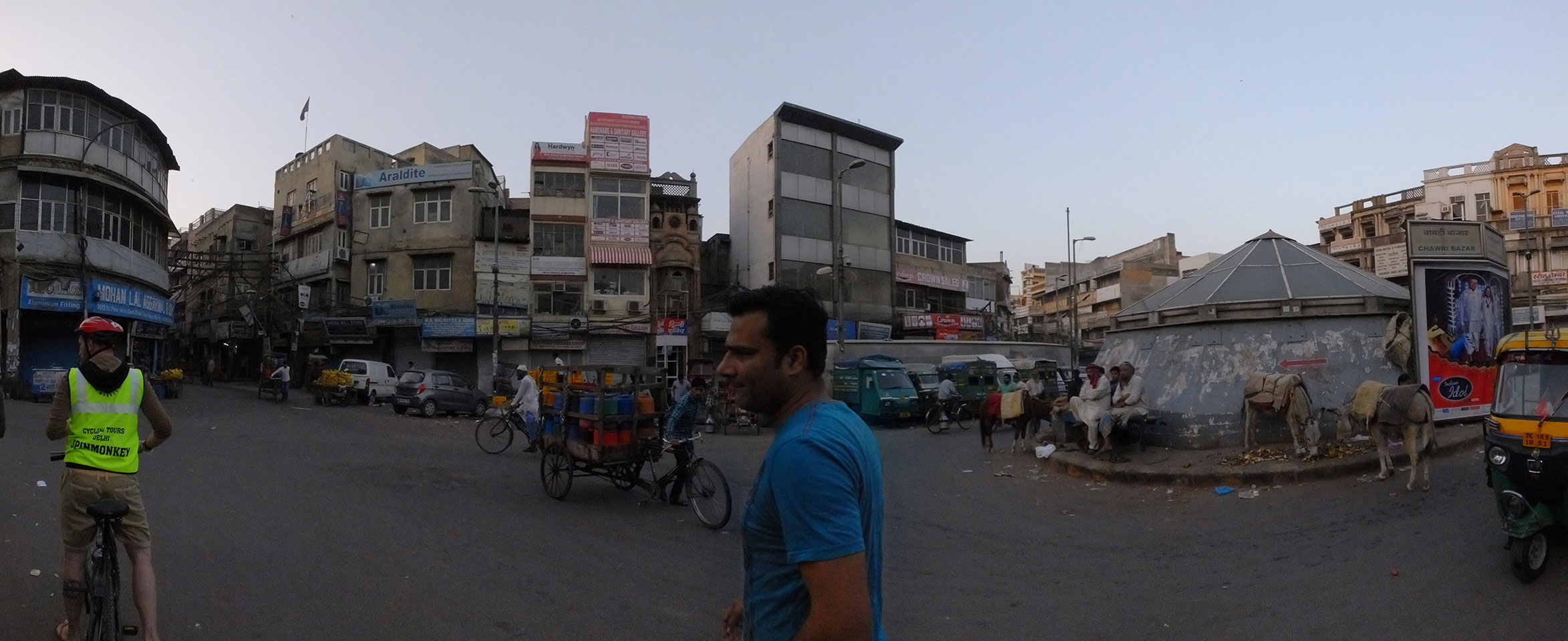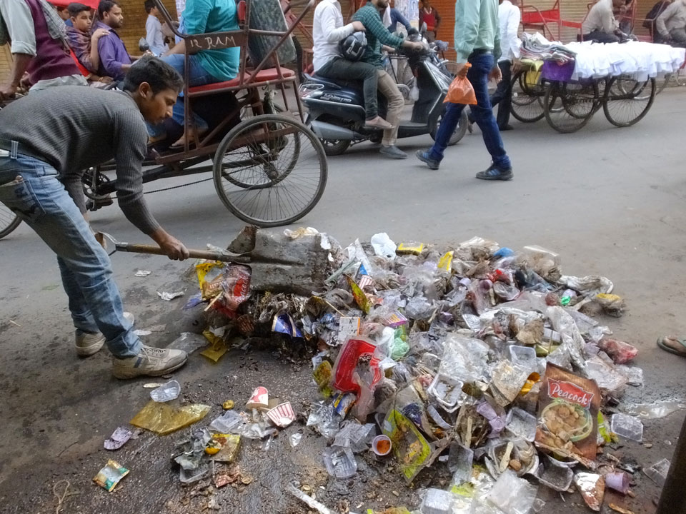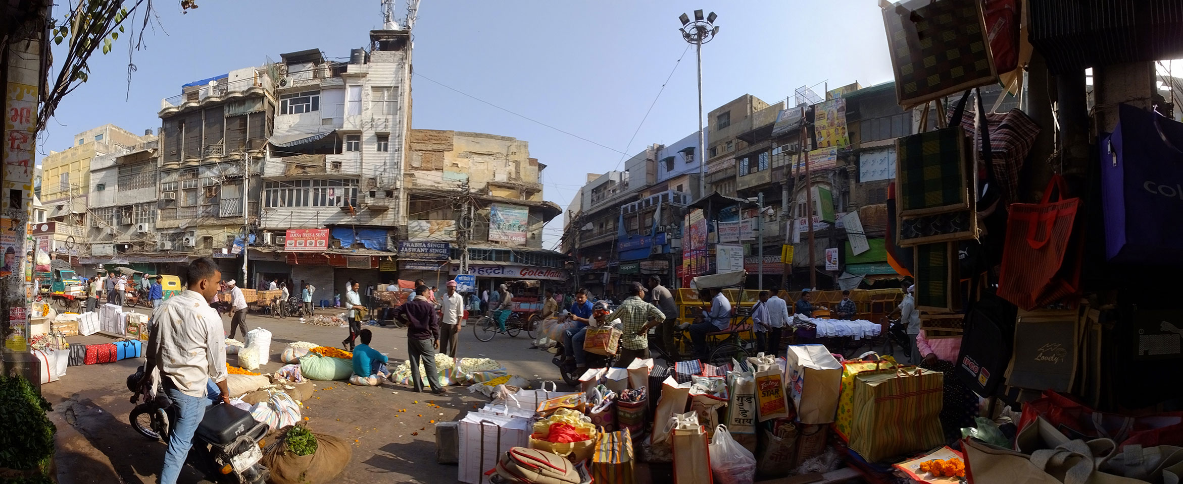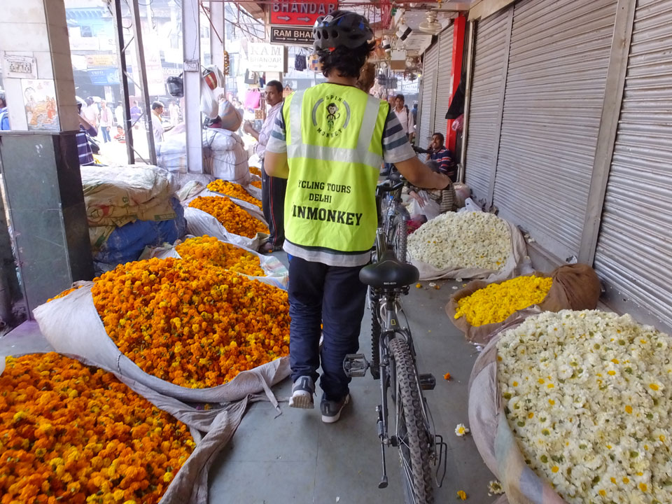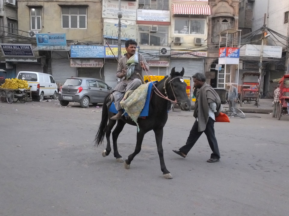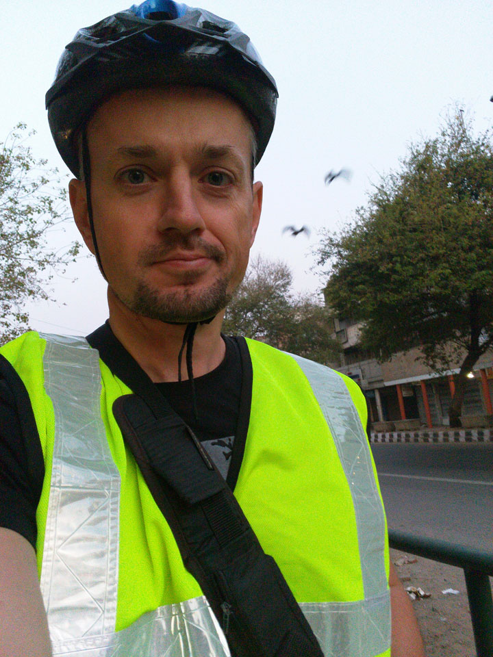 Der Taxifahrer kam nach 5:30 und fuhr uns zum Start der Radeltour in’s alte Delhi. Auf den Fußwegen lagen viele Leute, die noch schliefen. Alles sehr rämlich und eine andere Gegend.