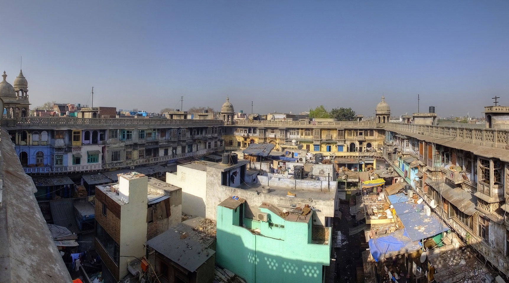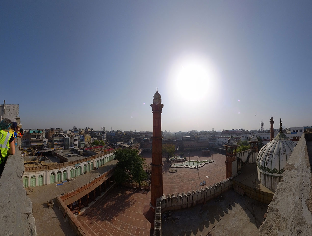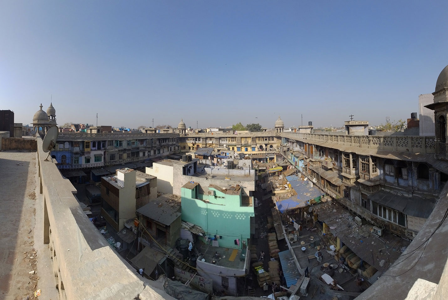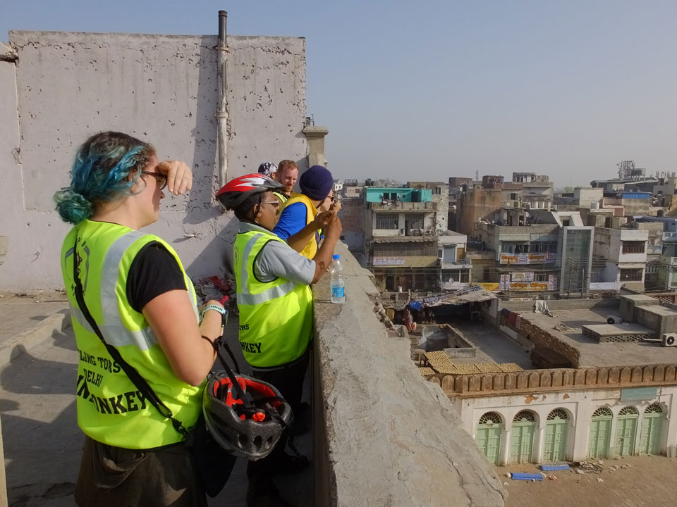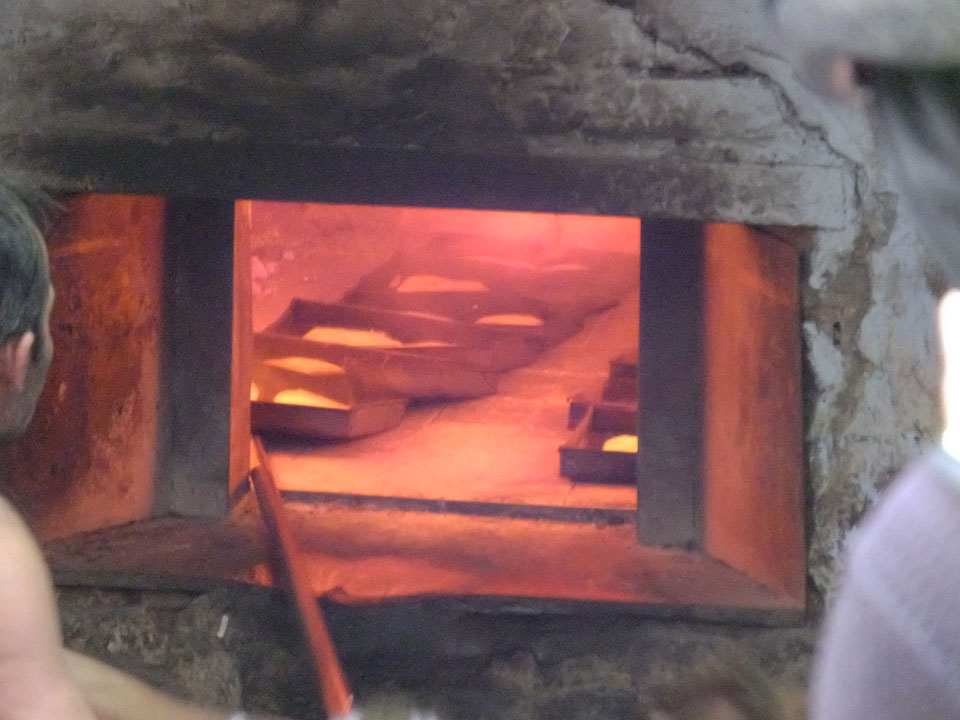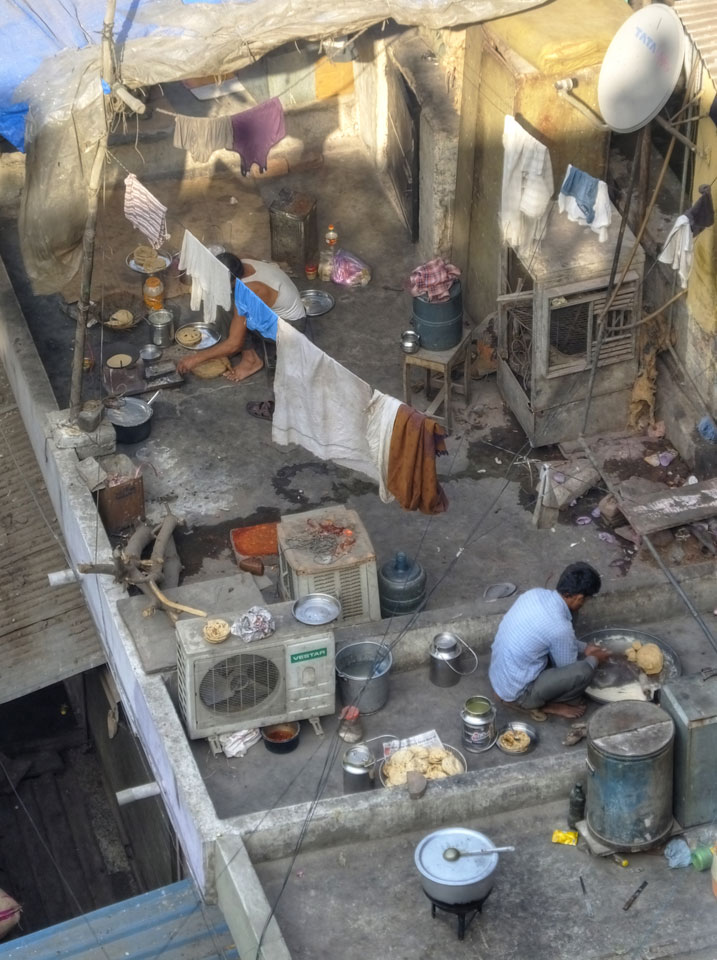 Die Tour ging langsam zu Ende. Cool war auch ein versteckter Weg in ein altes Haus auf das Dach. Von dort sah man in den Innenhof des größten Gewürzmarktes. Die Luft war voller Chillipulver. Niesen, wie bei Heuschnupfen und ein Kratzen im Hals. Der Markt ist sein mehreren hundert Jahren in Betrieb, ohne Pause. Von da oben sah man die Leute ihr Frühstück bereiten. Teilkugeln wurden ausgerollt, auf Feueröfen gebacken.