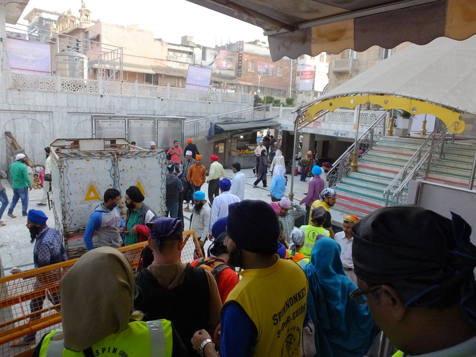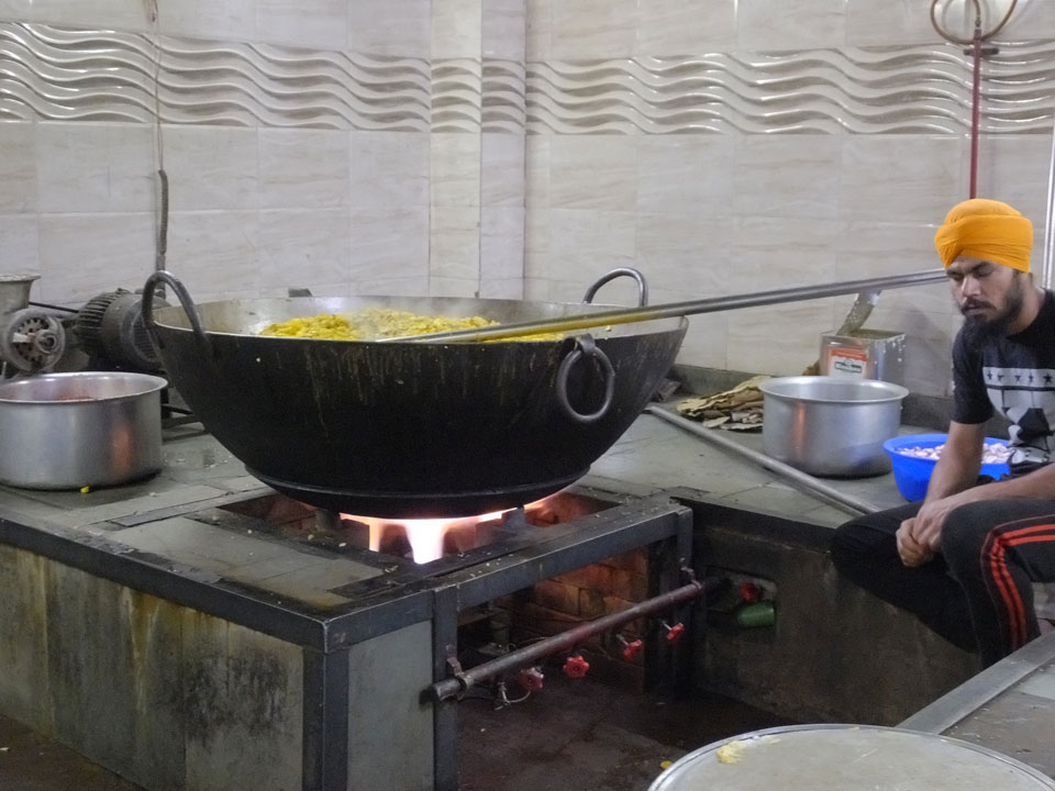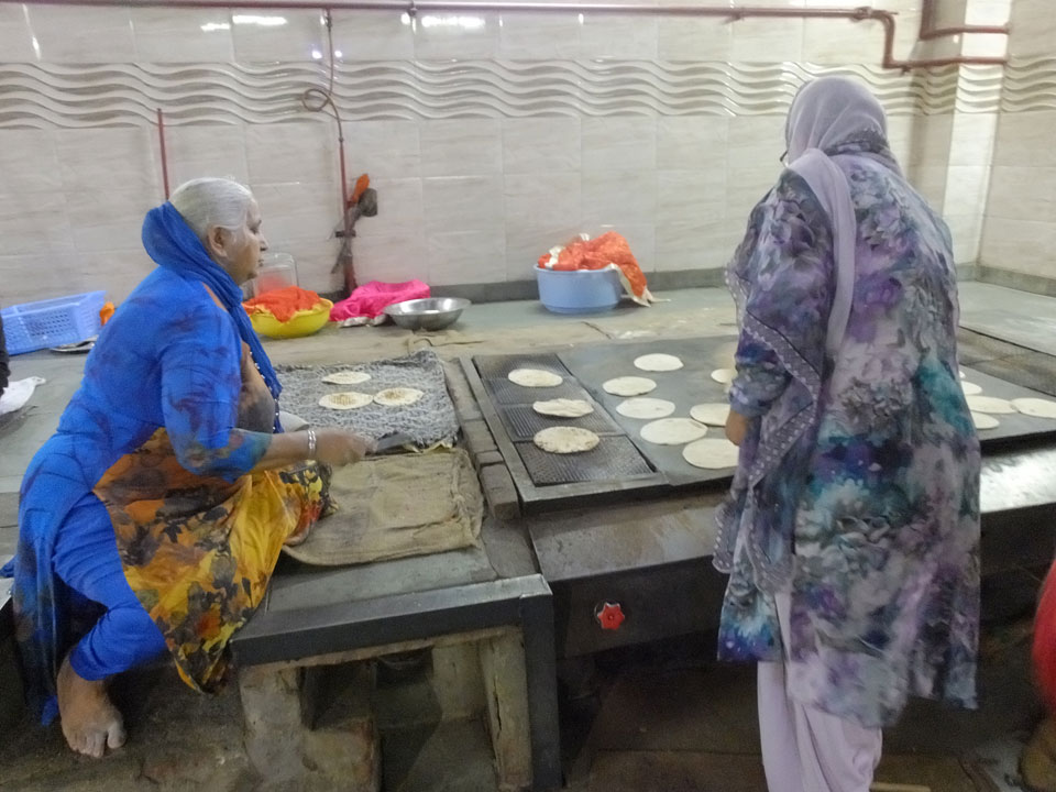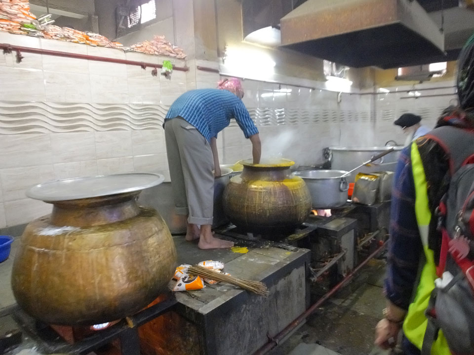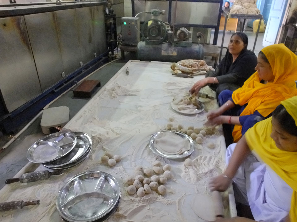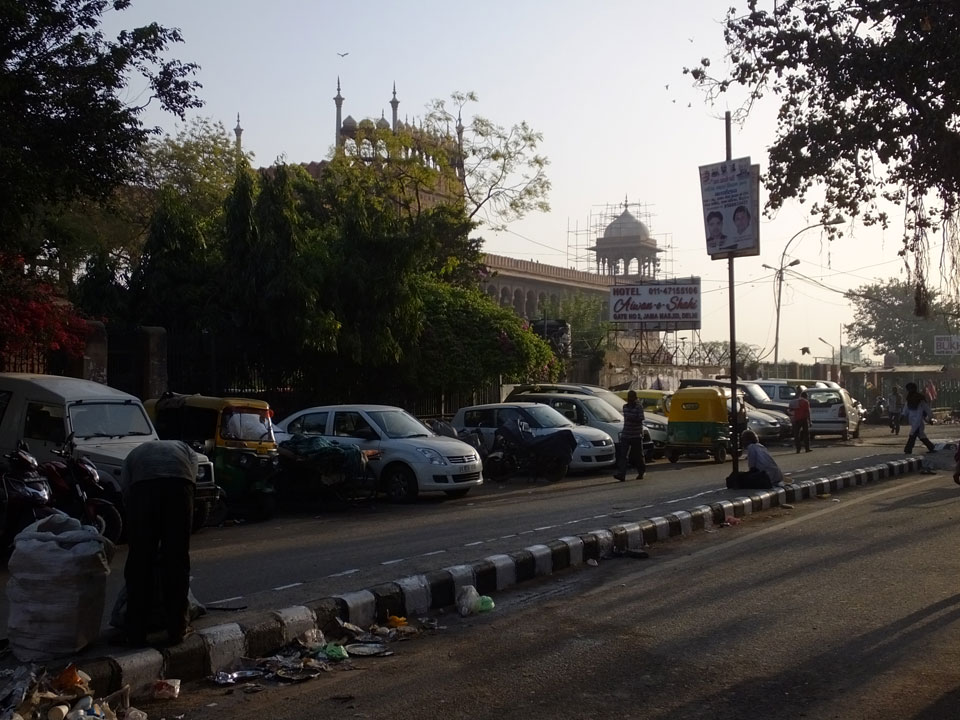 Wir fuhren zu einem der alten Stadttore. Überall stehen Moscheen, selbst da auf dem Platz eine kleine. In Alt Delhi soll es 16.000 religöse Städten geben, sagte man uns. Weitere Stationen waren ein Sikh Tempel, wo ich auch in der Großküche mal ein paar Chapati wälzte. Die Jama Masjid Moschee sah super aus. Da jeder, und damit auch ich das 300 Photo-Ticket sparte, gab’s da leider keine Bilder. Die vielen tauben die manchmal zusammen aufschreckten und über unsere Köpfe flogen waren auch was Besonderes. Nette Atmosphäre dort so früh am Morgen. Ein paar der Männer waren mit einem Überziehkleid ausgestattet, weil kurze Hosen nicht erlaubt sind.