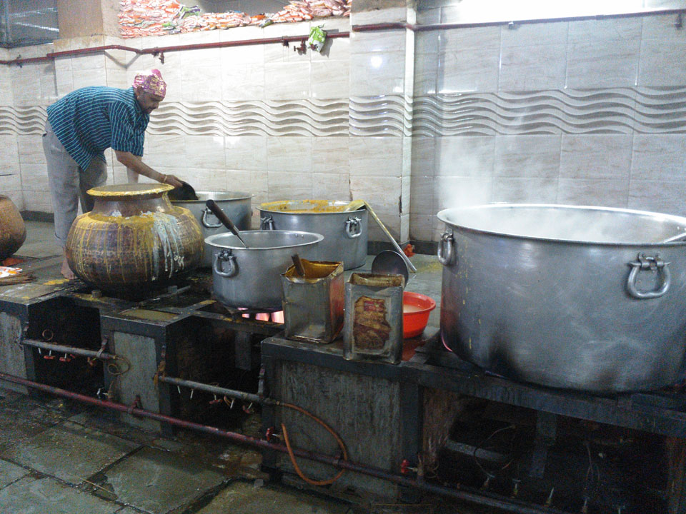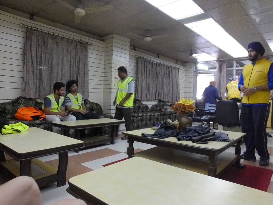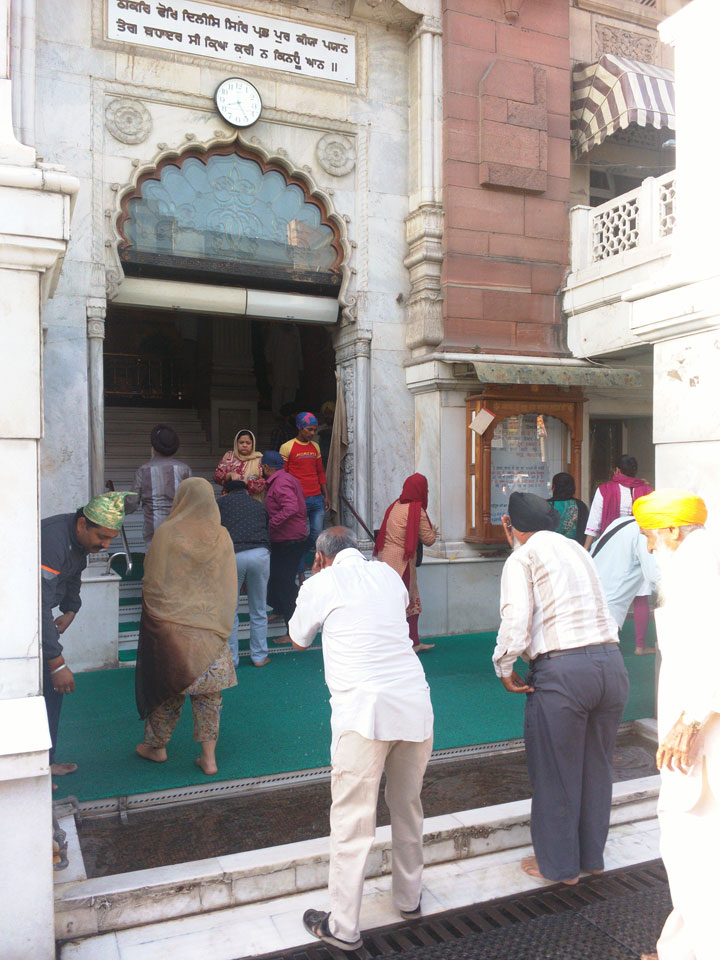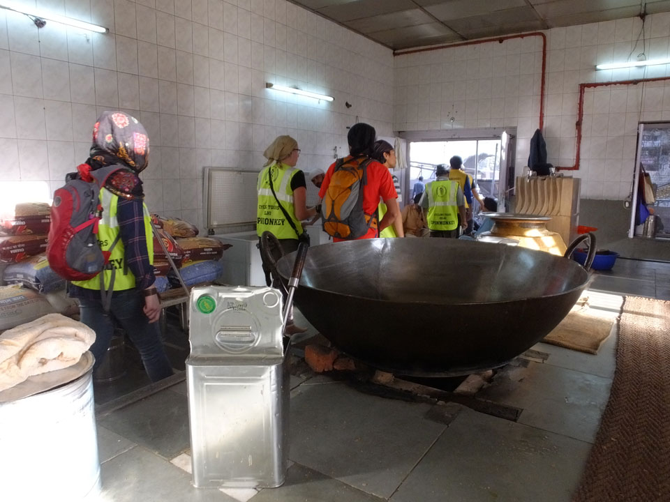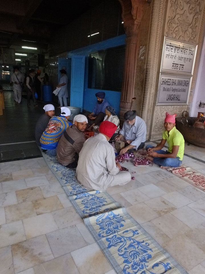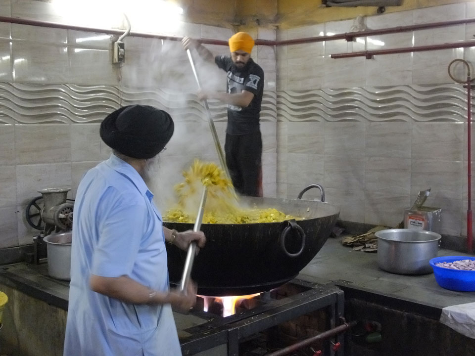 Wir fuhren zu einem der alten Stadttore. Überall stehen Moscheen, selbst da auf dem Platz eine kleine. In Alt Delhi soll es 16.000 religöse Städten geben, sagte man uns. Weitere Stationen waren ein Sikh Tempel, wo ich auch in der Großküche mal ein paar Chapati wälzte. Die Jama Masjid Moschee sah super aus. Da jeder, und damit auch ich das 300 Photo-Ticket sparte, gab’s da leider keine Bilder. Die vielen tauben die manchmal zusammen aufschreckten und über unsere Köpfe flogen waren auch was Besonderes. Nette Atmosphäre dort so früh am Morgen. Ein paar der Männer waren mit einem Überziehkleid ausgestattet, weil kurze Hosen nicht erlaubt sind.