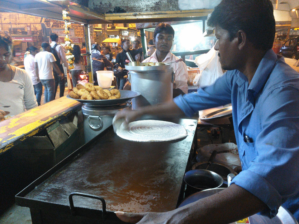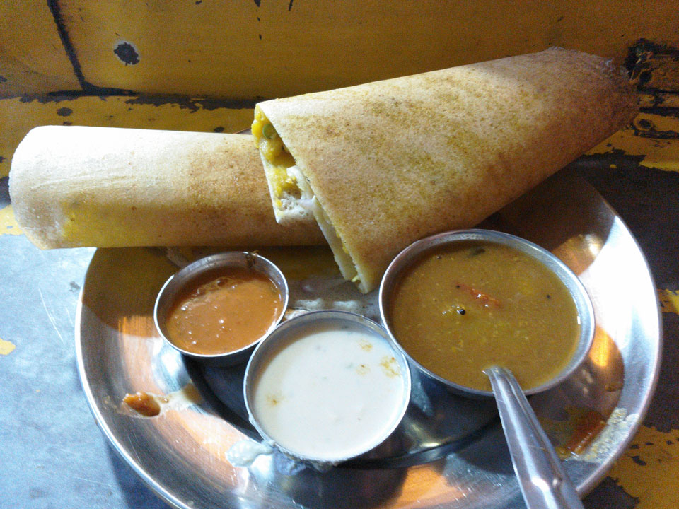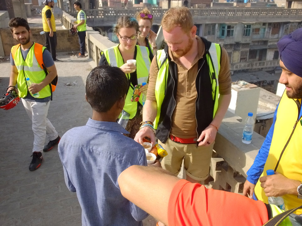 Die Fahrt durch die Straßen, dann zum Frühstück. Es gab Aloo Puri und Lassi, soviel man wollte.