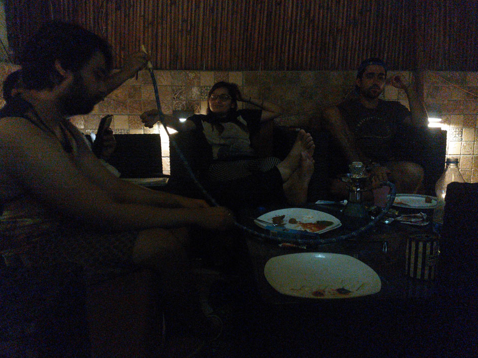 Eine Amerikanerin spielte wieder Country, die Shisha machte weniger ihre Runde. Weniger Mücken heute aber dann doch wieder runter an den Rechner.