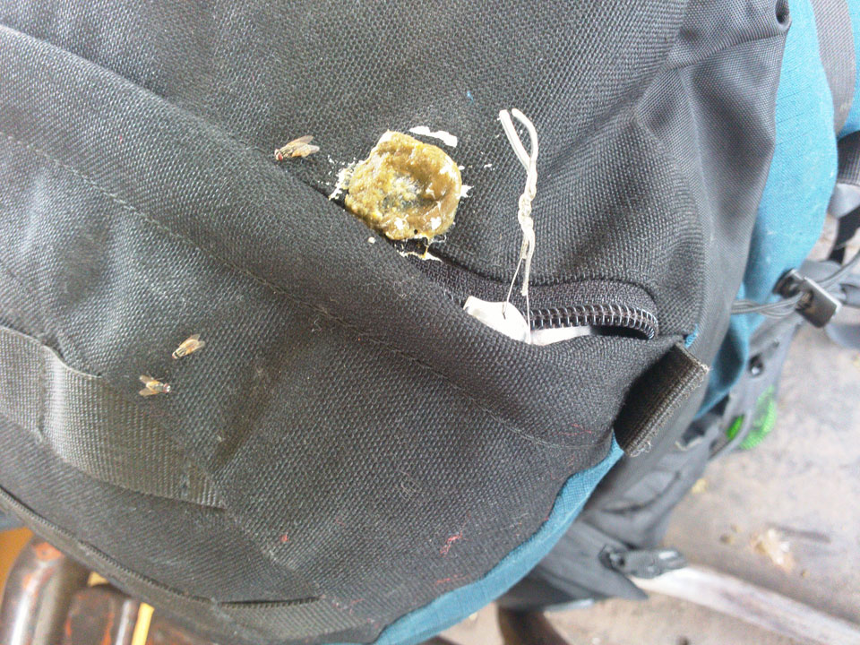 Eine Taube saß viele Meter über mir. Ein paar Kothäufchen lagen da knapp neben der Sitzbank. Da hätte ich besser aufpassen sollen, denn wenig später traf Abwurf meinen Rucksack. Ich versetzte meinen Rucksack ein paar Zentimeter, was Erfolg brachte. Die weiteren zwei Tauben-Kleckse verfehlten den Rucksack um wenige Zentimeter. Das Tier saß echt 2h auf der gleichen Stelle.