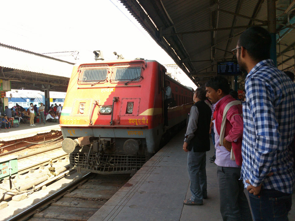 Ich rief wieder einen Uber, der sich durch den Stau quetschen musste. Ganz irre fuhr er mal als Geisterfahrer auf den falschen Straßenseite. Ein Bus kam uns entgegen, der aber nur von der Lichthupe gebrauch machte. So kam ich nach der offiziellen Abfahrtzeit am Bahnhof Delhi an und hatte viel Zeit.
