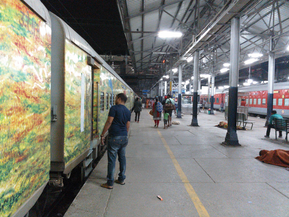 Krass kurz nach 4 wachte ich auf. Mein Zug um 5:15 würde nicht warten. Ich fand ein Tutuk, was teure 200 INR für die Fahrt zum Bahnhof verlangte. Wenigstens war ich dann dort und suchte nach meinem Bahnsteig. Nirgends eine Übersicht der Züge, doch zufällig fand ich den Zug fix.