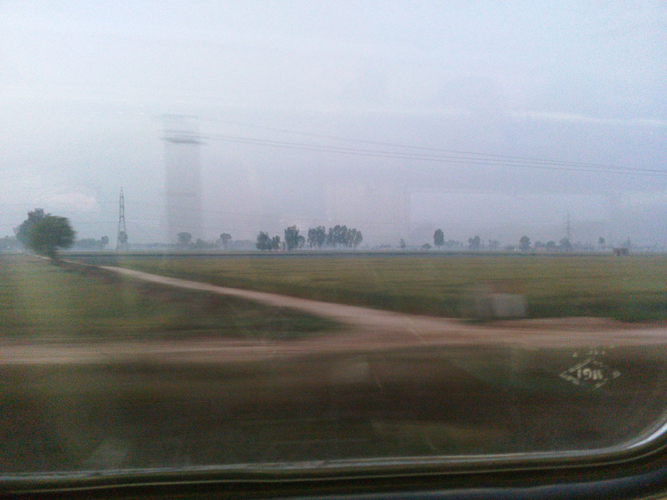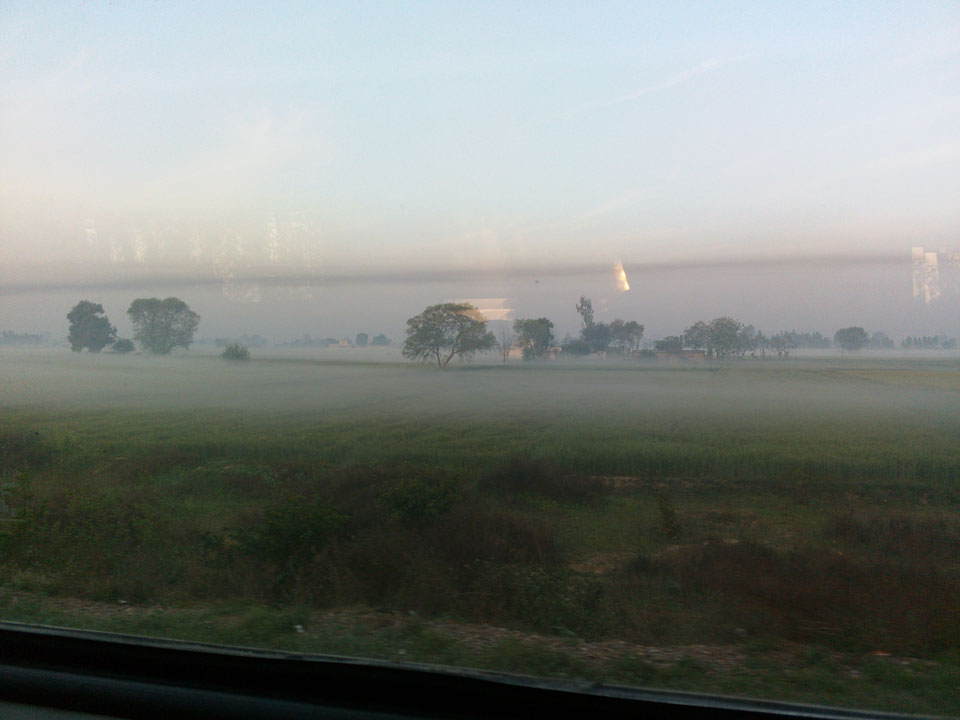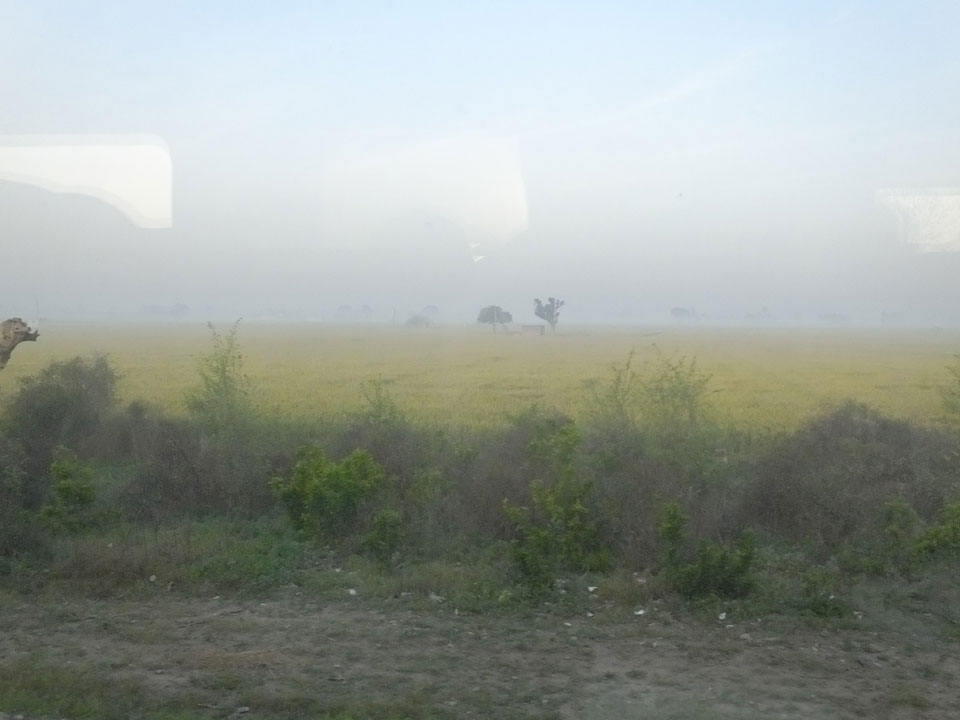 Die Fahrt ging pünktlich los. Ich kaufte einige Chai und nickte weg. Aus dem Fenster sah ich die tolle Morgenlandschaft mit Bodennebel über den Feldern.