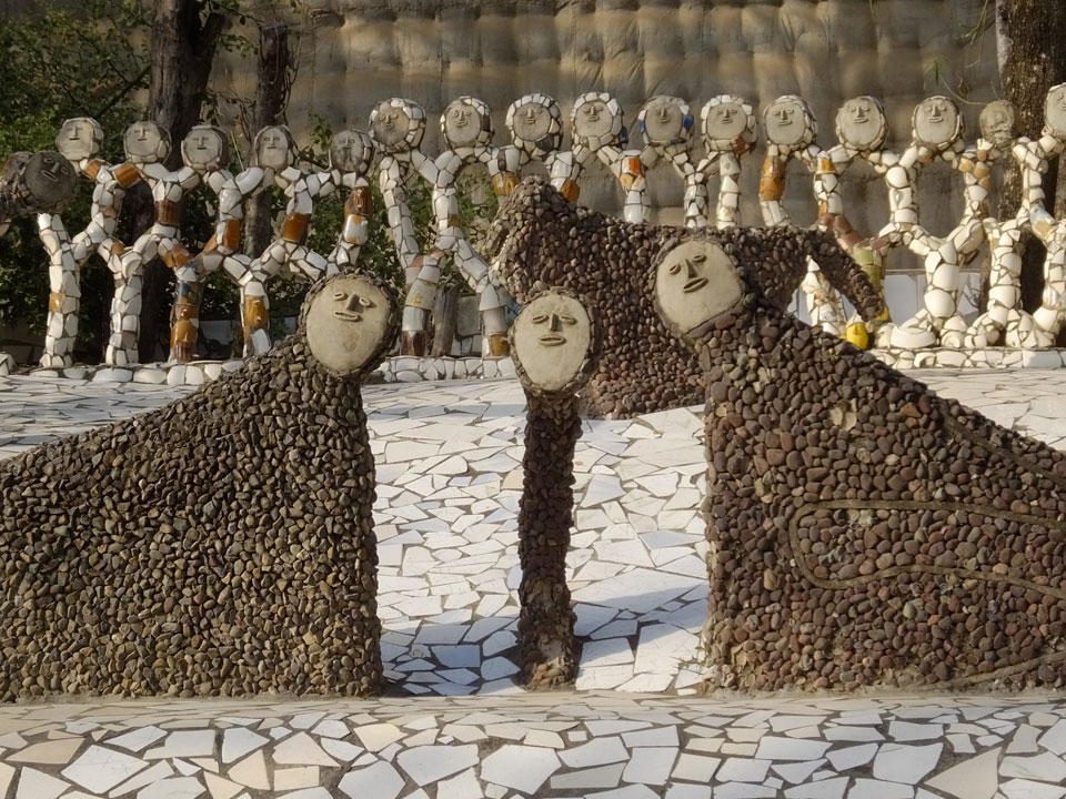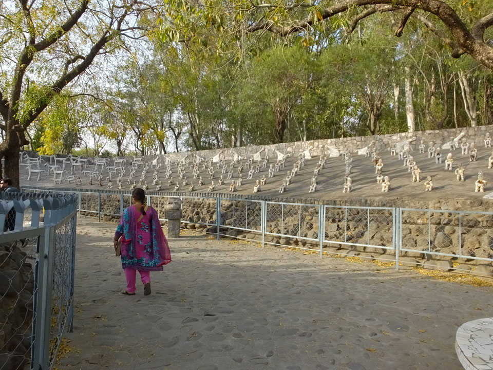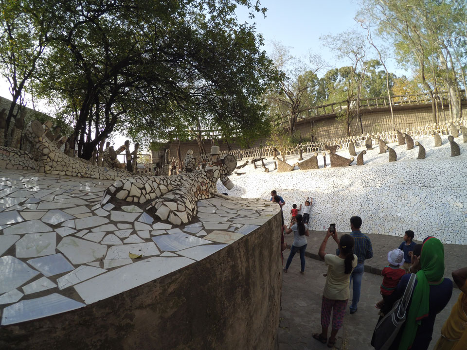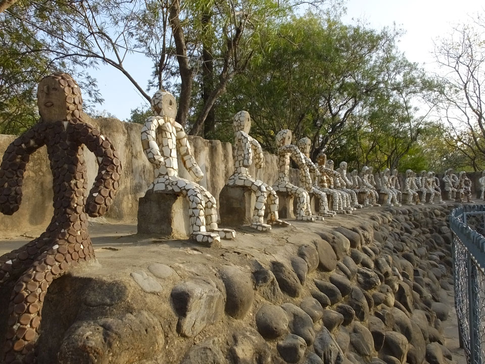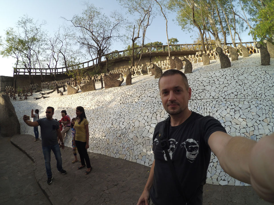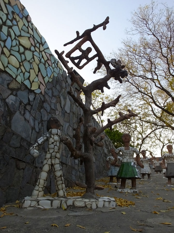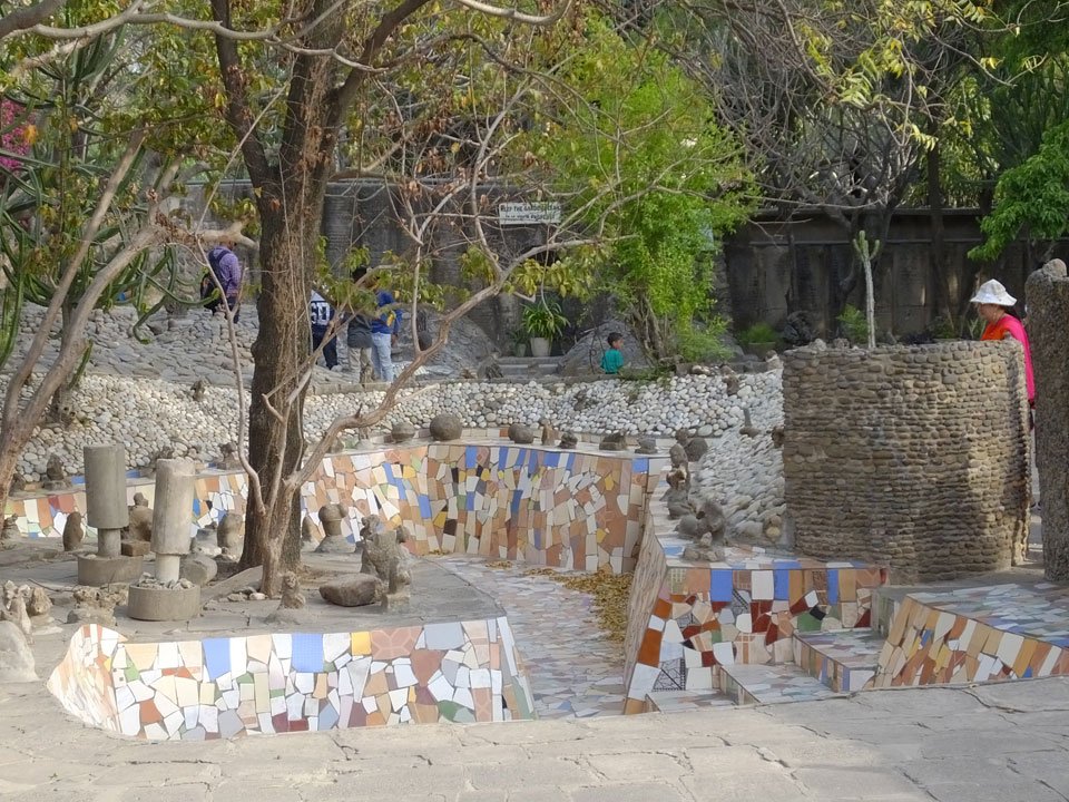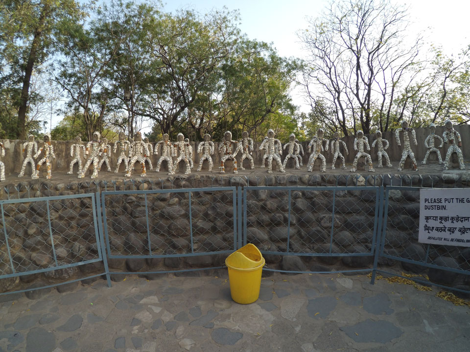 Man bot mir an, dass ich das Zimmer wechseln könne, weil mein Zimmer ohne Fenster nach außen etwas stickig war. Das wollte ich dann auch machen, zunächst jedoch hatte ich ein Tourismus-Programm offen. Ich fuhr für 70 INR zum Rock Garden. Dieser Steingarten wurde von einem Mann gestaltet, der alle möglichen Sachen zu Stauen verarbeitet hatte. Das Ticket kostete mal ausnahmsweise den gleichen Preis für Touristen – nur 30 INR. In einem Café dort hatte ich wieder was zu essen. Dann schaute ich mir den Park an.