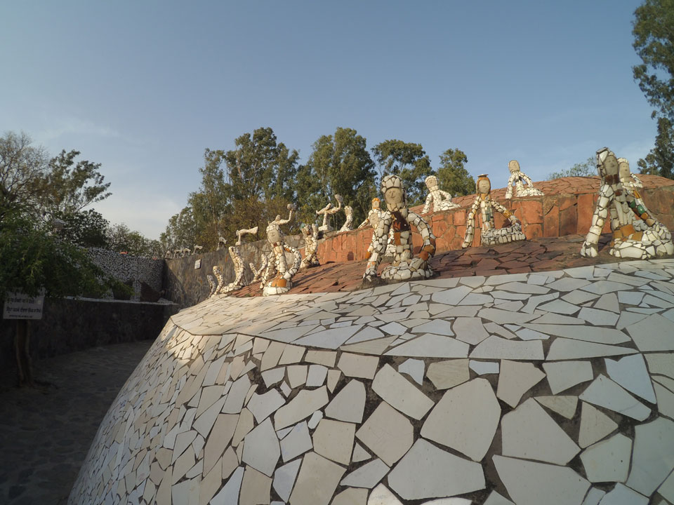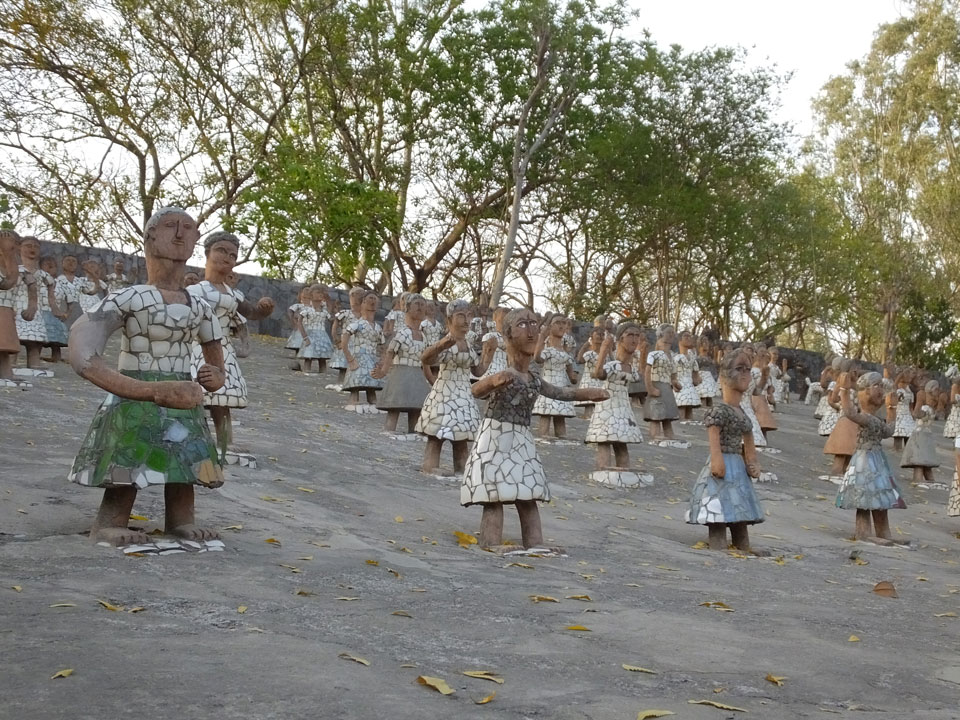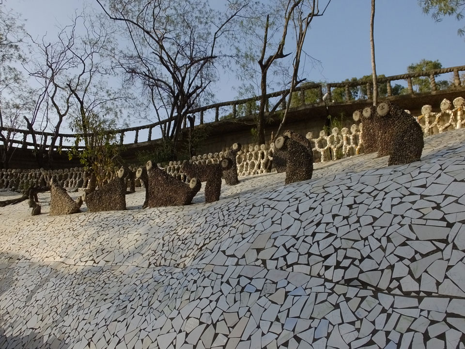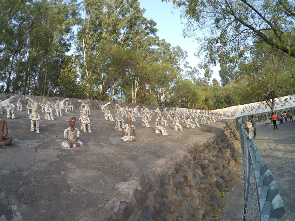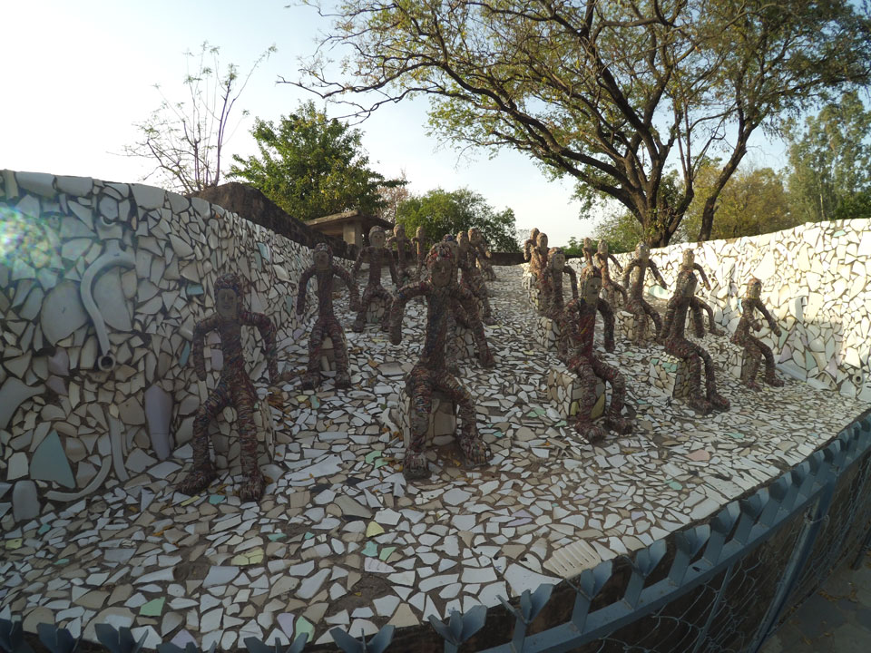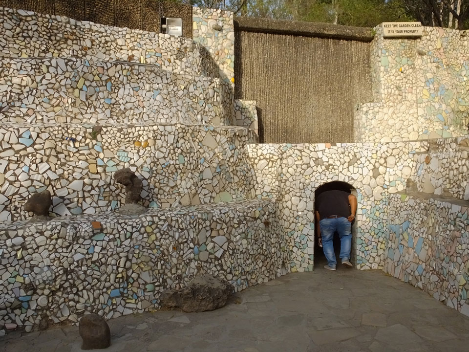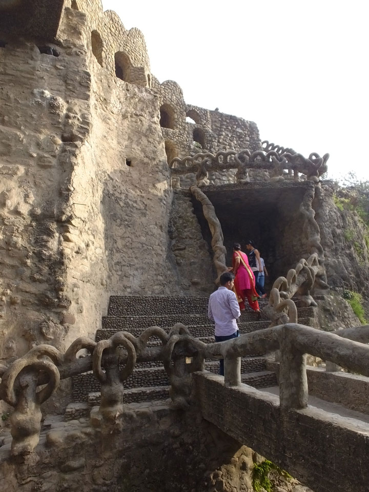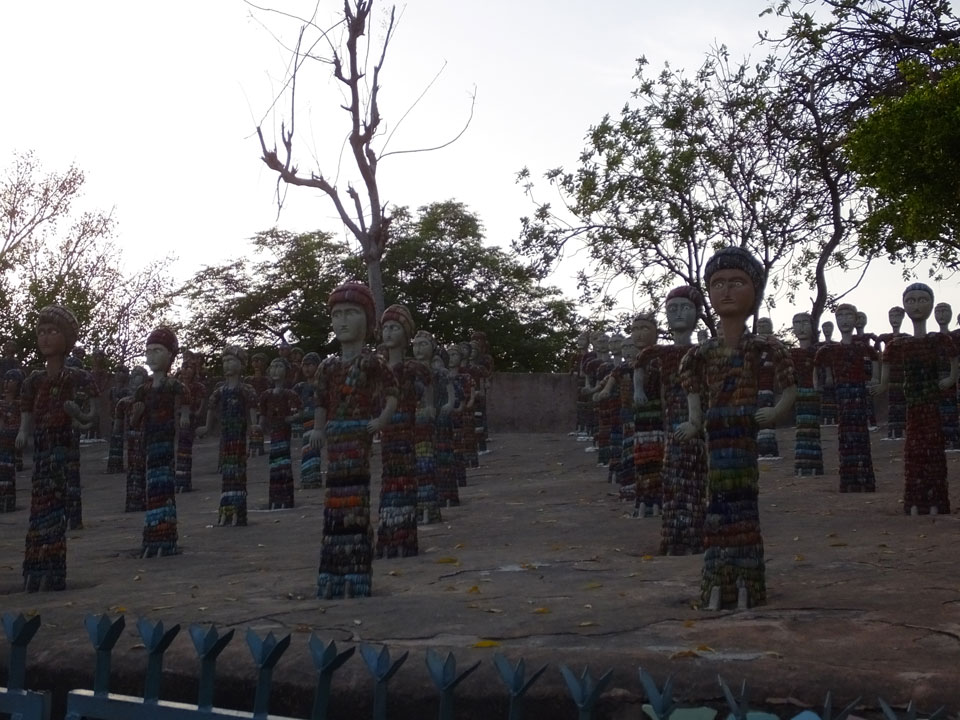 Man bot mir an, dass ich das Zimmer wechseln könne, weil mein Zimmer ohne Fenster nach außen etwas stickig war. Das wollte ich dann auch machen, zunächst jedoch hatte ich ein Tourismus-Programm offen. Ich fuhr für 70 INR zum Rock Garden. Dieser Steingarten wurde von einem Mann gestaltet, der alle möglichen Sachen zu Stauen verarbeitet hatte. Das Ticket kostete mal ausnahmsweise den gleichen Preis für Touristen – nur 30 INR. In einem Café dort hatte ich wieder was zu essen. Dann schaute ich mir den Park an.