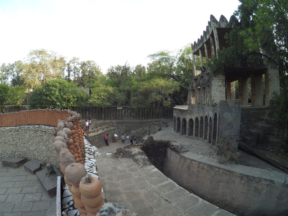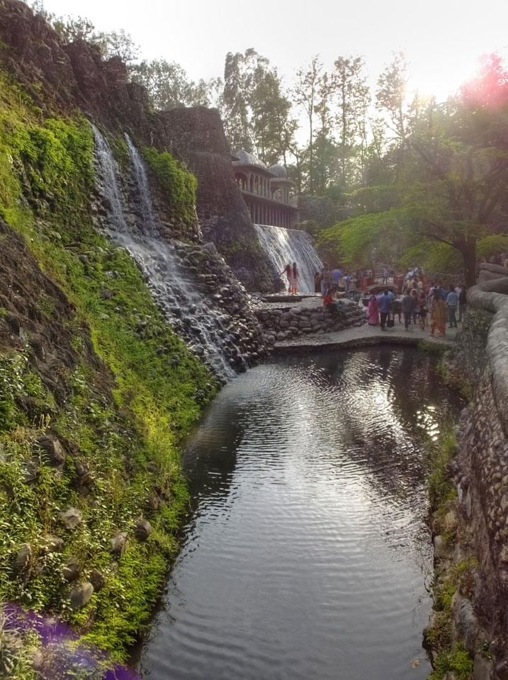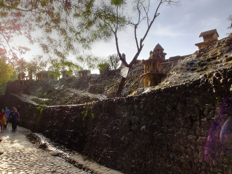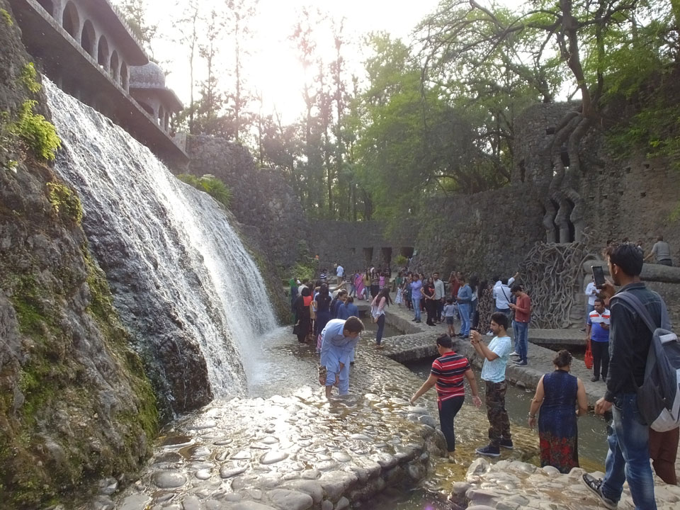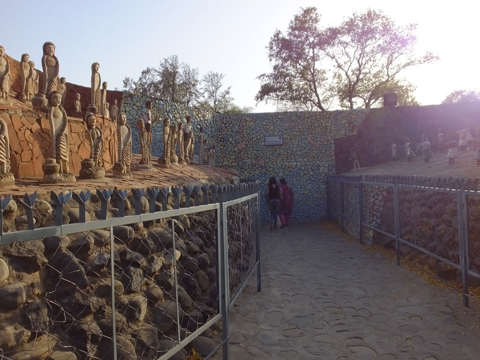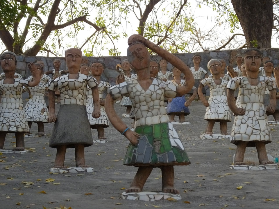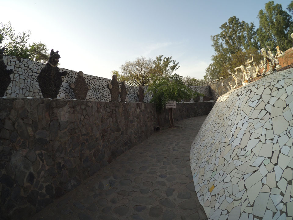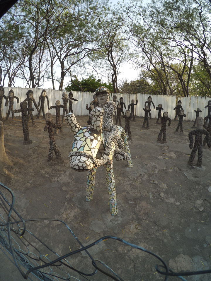 Man bot mir an, dass ich das Zimmer wechseln könne, weil mein Zimmer ohne Fenster nach außen etwas stickig war. Das wollte ich dann auch machen, zunächst jedoch hatte ich ein Tourismus-Programm offen. Ich fuhr für 70 INR zum Rock Garden. Dieser Steingarten wurde von einem Mann gestaltet, der alle möglichen Sachen zu Stauen verarbeitet hatte. Das Ticket kostete mal ausnahmsweise den gleichen Preis für Touristen – nur 30 INR. In einem Café dort hatte ich wieder was zu essen. Dann schaute ich mir den Park an.