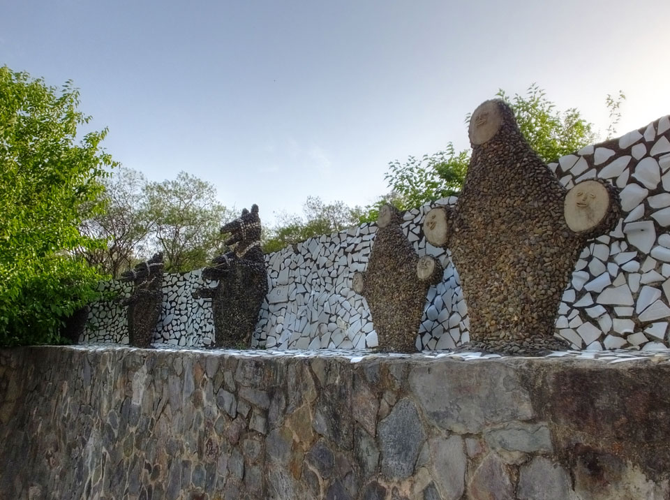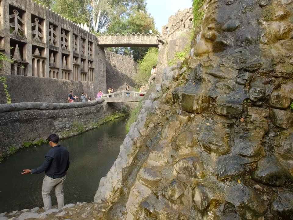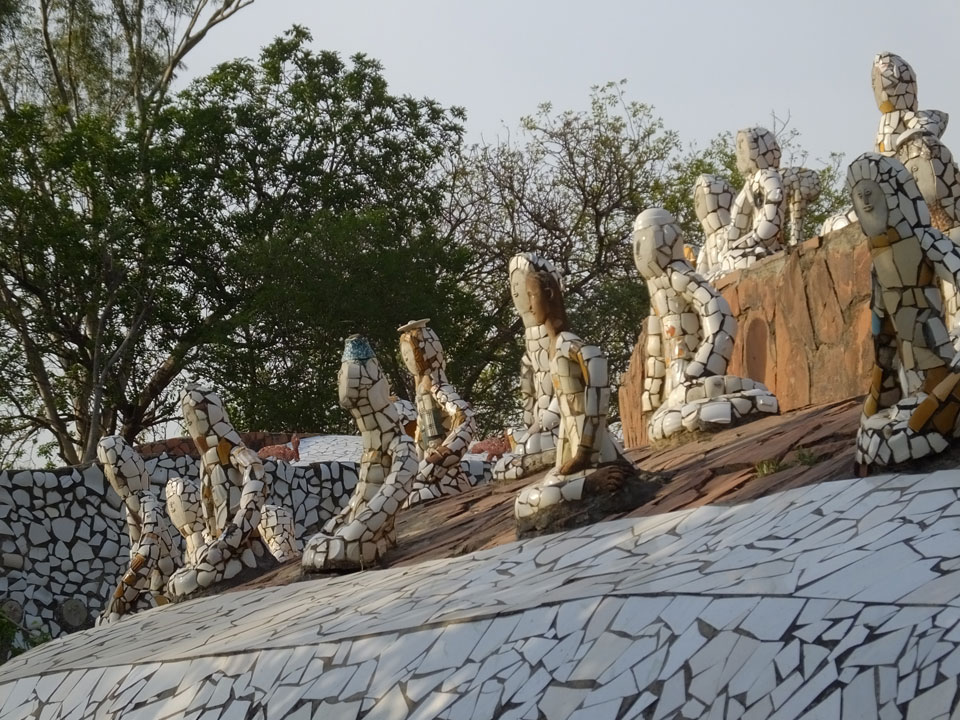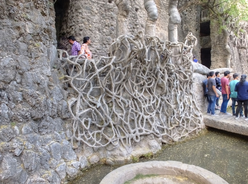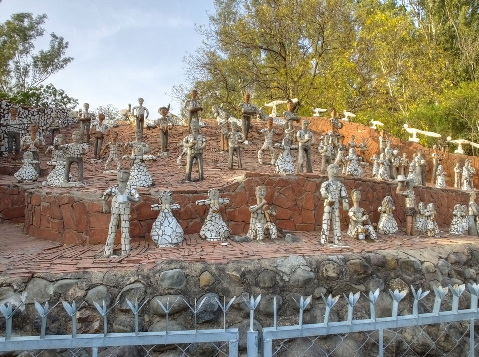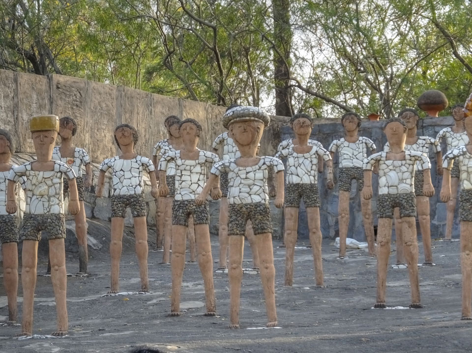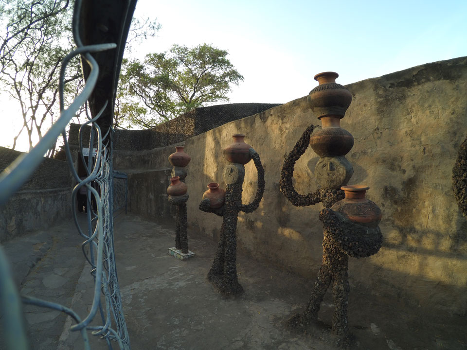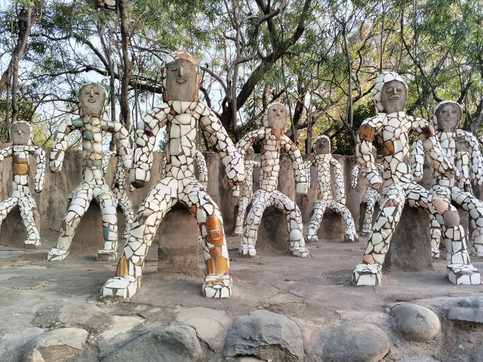 Man bot mir an, dass ich das Zimmer wechseln könne, weil mein Zimmer ohne Fenster nach außen etwas stickig war. Das wollte ich dann auch machen, zunächst jedoch hatte ich ein Tourismus-Programm offen. Ich fuhr für 70 INR zum Rock Garden. Dieser Steingarten wurde von einem Mann gestaltet, der alle möglichen Sachen zu Stauen verarbeitet hatte. Das Ticket kostete mal ausnahmsweise den gleichen Preis für Touristen – nur 30 INR. In einem Café dort hatte ich wieder was zu essen. Dann schaute ich mir den Park an.