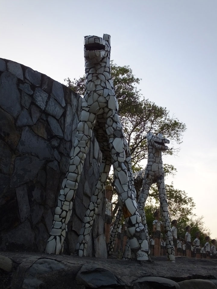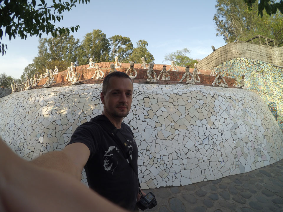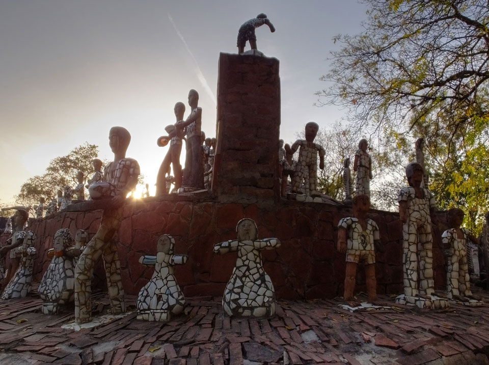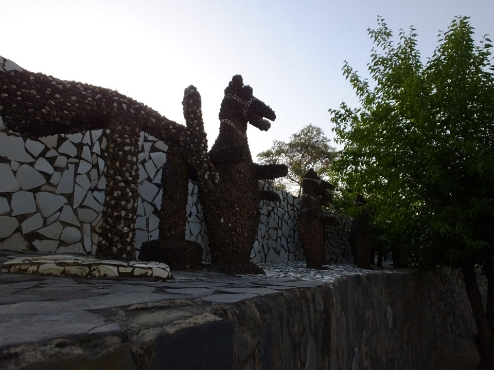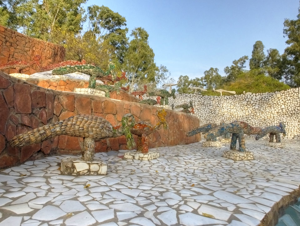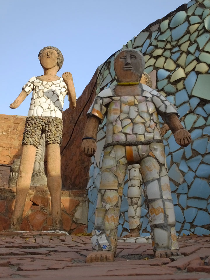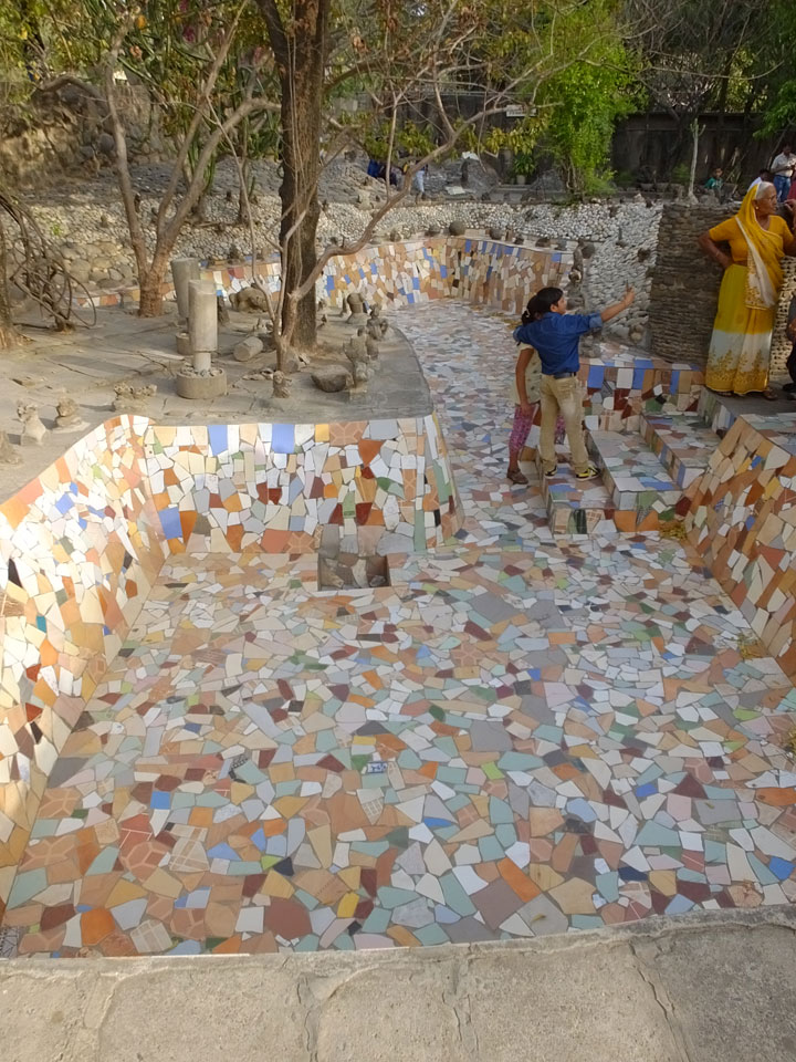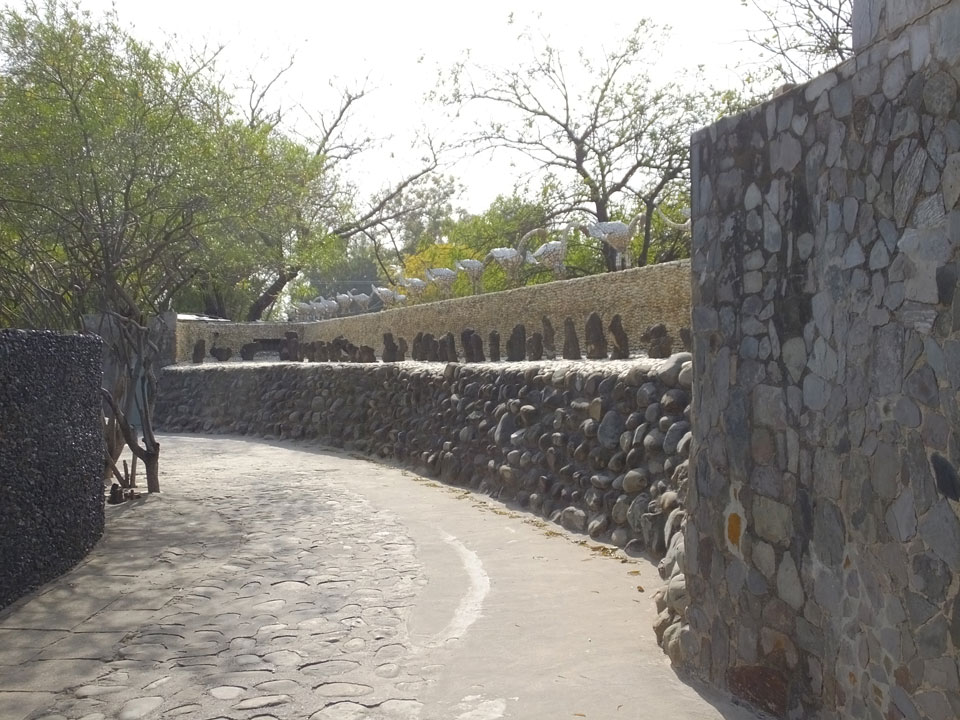 Man bot mir an, dass ich das Zimmer wechseln könne, weil mein Zimmer ohne Fenster nach außen etwas stickig war. Das wollte ich dann auch machen, zunächst jedoch hatte ich ein Tourismus-Programm offen. Ich fuhr für 70 INR zum Rock Garden. Dieser Steingarten wurde von einem Mann gestaltet, der alle möglichen Sachen zu Stauen verarbeitet hatte. Das Ticket kostete mal ausnahmsweise den gleichen Preis für Touristen – nur 30 INR. In einem Café dort hatte ich wieder was zu essen. Dann schaute ich mir den Park an.