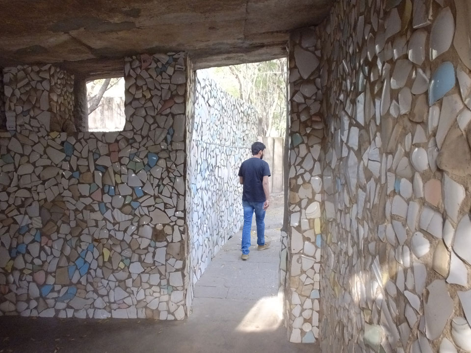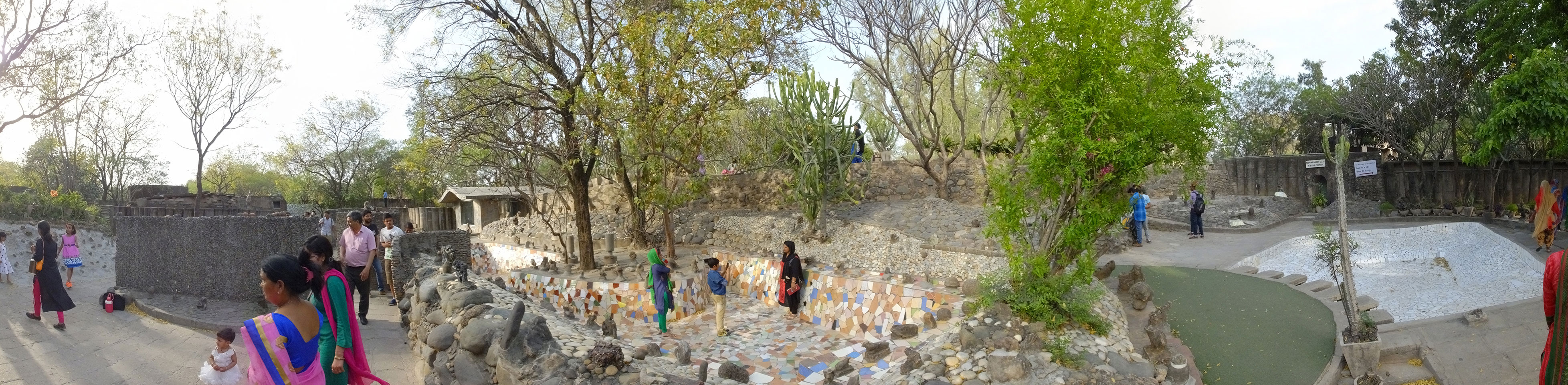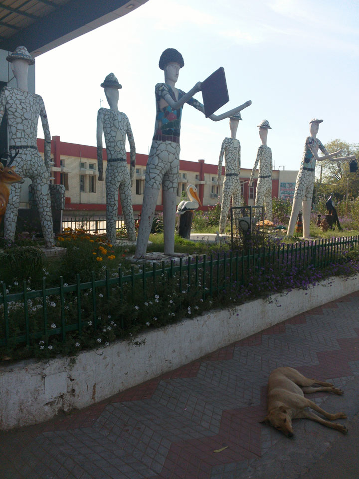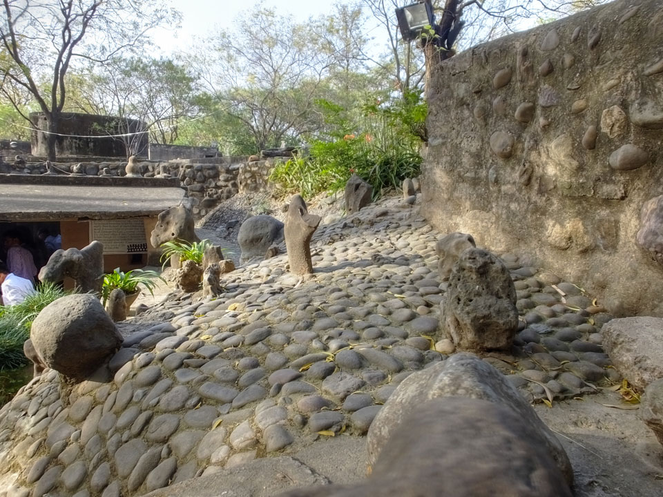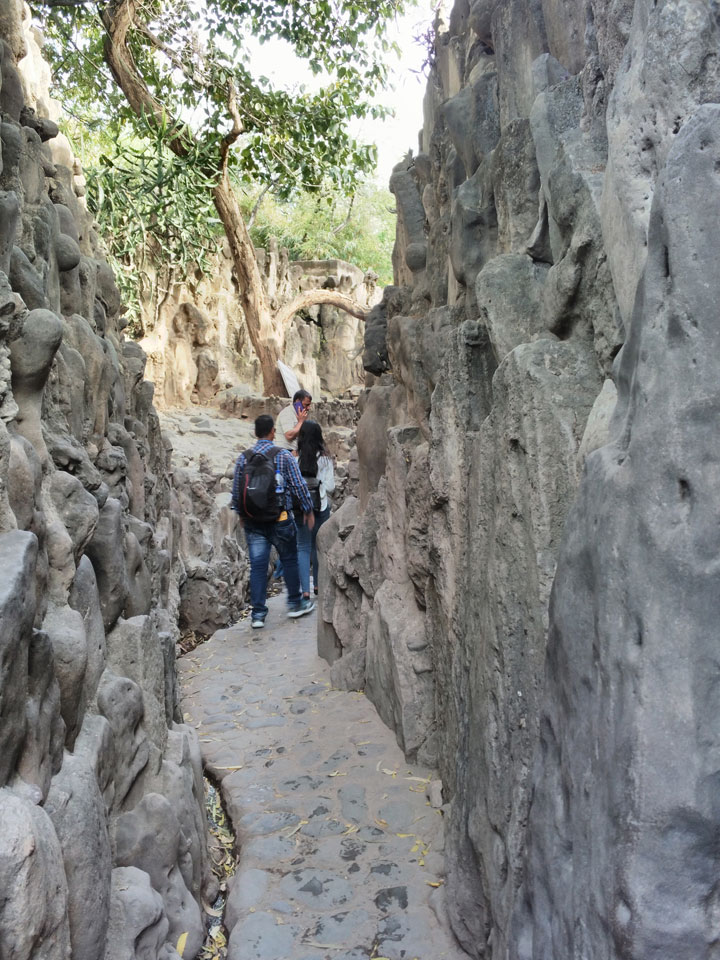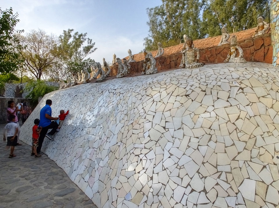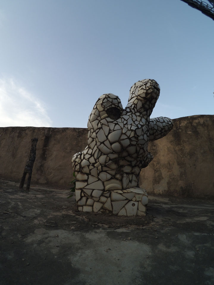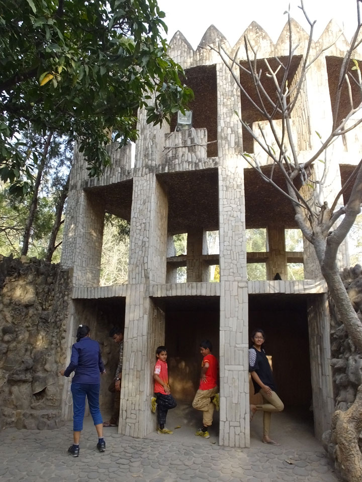 Man bot mir an, dass ich das Zimmer wechseln könne, weil mein Zimmer ohne Fenster nach außen etwas stickig war. Das wollte ich dann auch machen, zunächst jedoch hatte ich ein Tourismus-Programm offen. Ich fuhr für 70 INR zum Rock Garden. Dieser Steingarten wurde von einem Mann gestaltet, der alle möglichen Sachen zu Stauen verarbeitet hatte. Das Ticket kostete mal ausnahmsweise den gleichen Preis für Touristen – nur 30 INR. In einem Café dort hatte ich wieder was zu essen. Dann schaute ich mir den Park an.