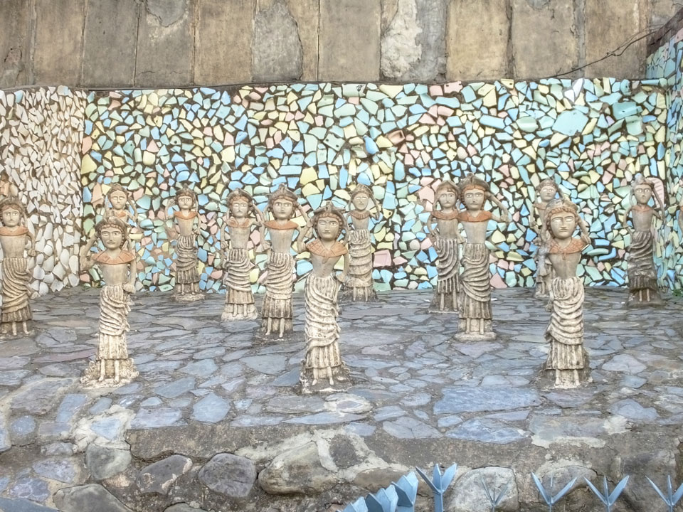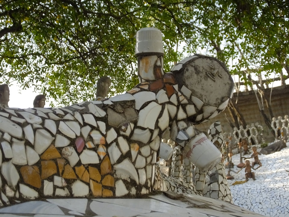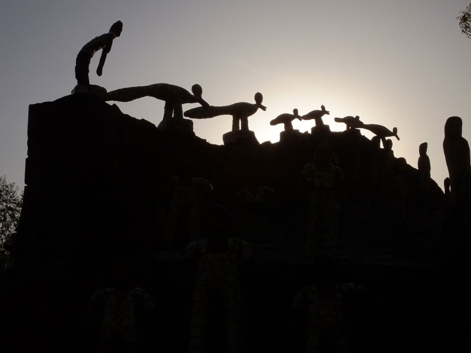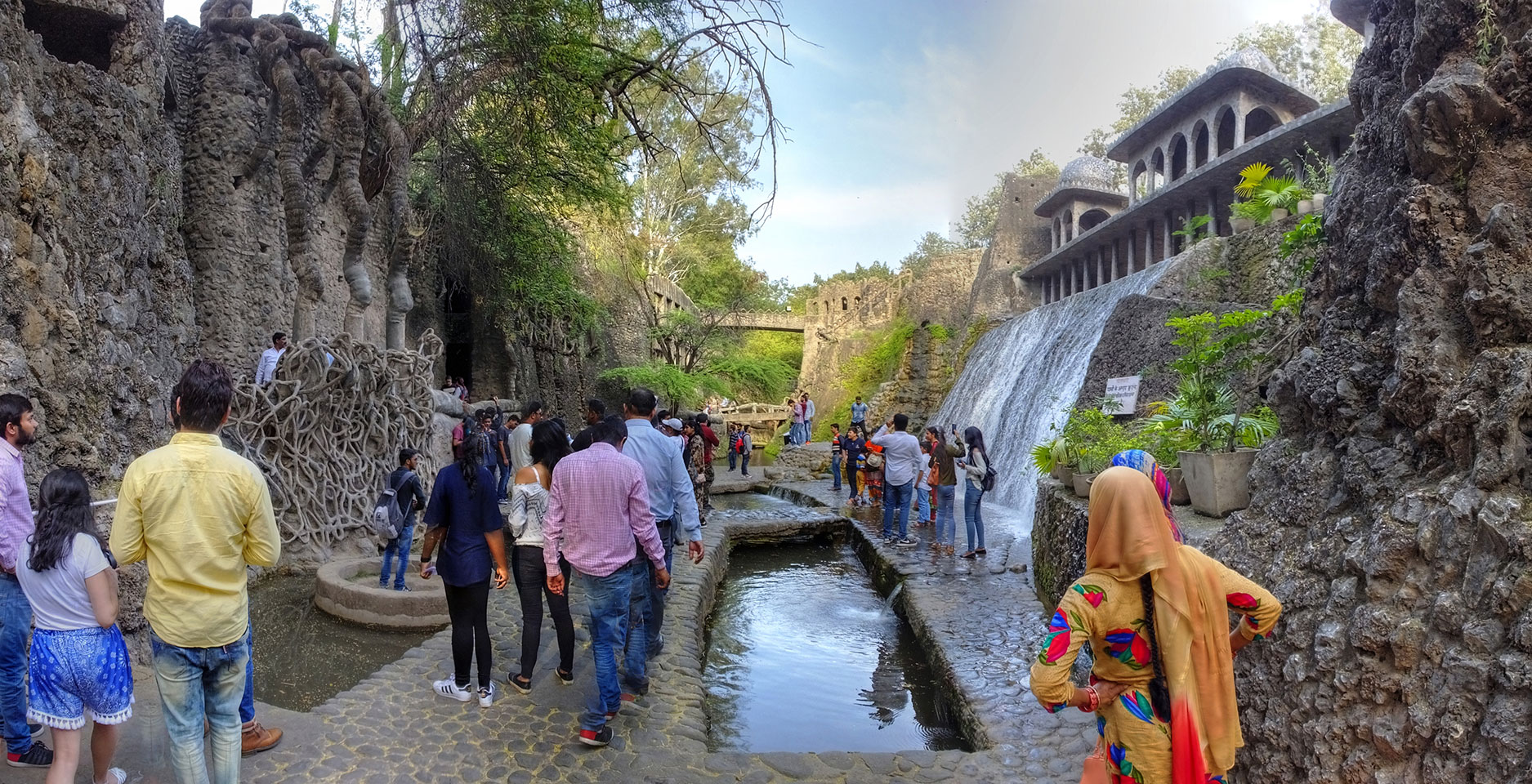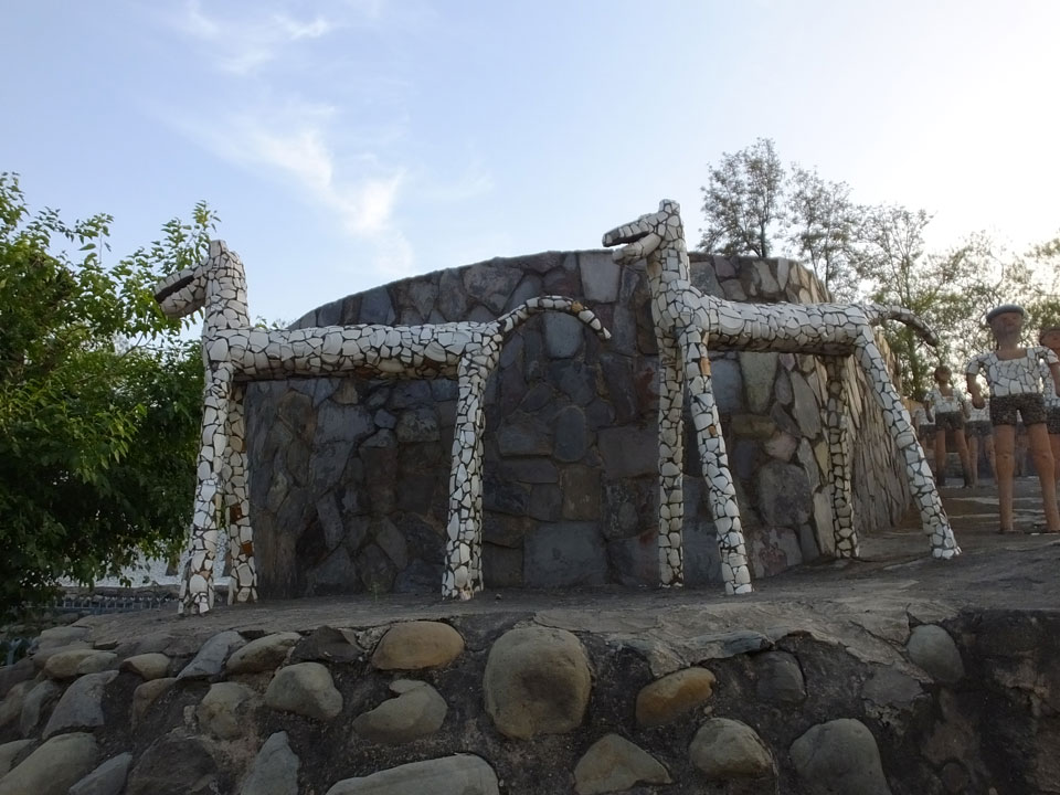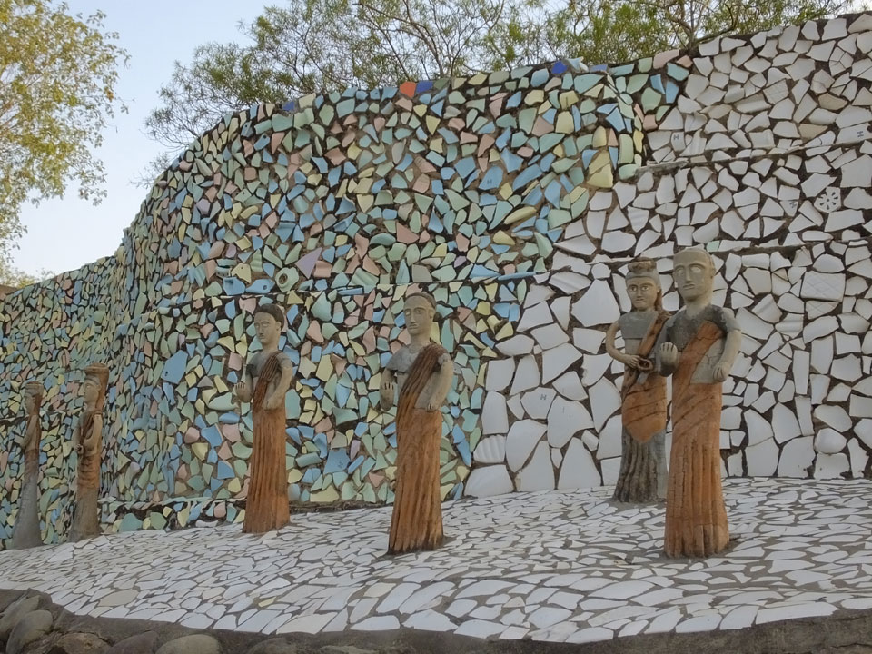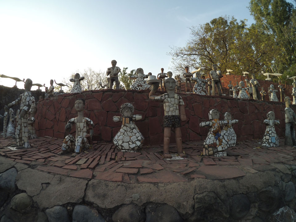 Man bot mir an, dass ich das Zimmer wechseln könne, weil mein Zimmer ohne Fenster nach außen etwas stickig war. Das wollte ich dann auch machen, zunächst jedoch hatte ich ein Tourismus-Programm offen. Ich fuhr für 70 INR zum Rock Garden. Dieser Steingarten wurde von einem Mann gestaltet, der alle möglichen Sachen zu Stauen verarbeitet hatte. Das Ticket kostete mal ausnahmsweise den gleichen Preis für Touristen – nur 30 INR. In einem Café dort hatte ich wieder was zu essen. Dann schaute ich mir den Park an.