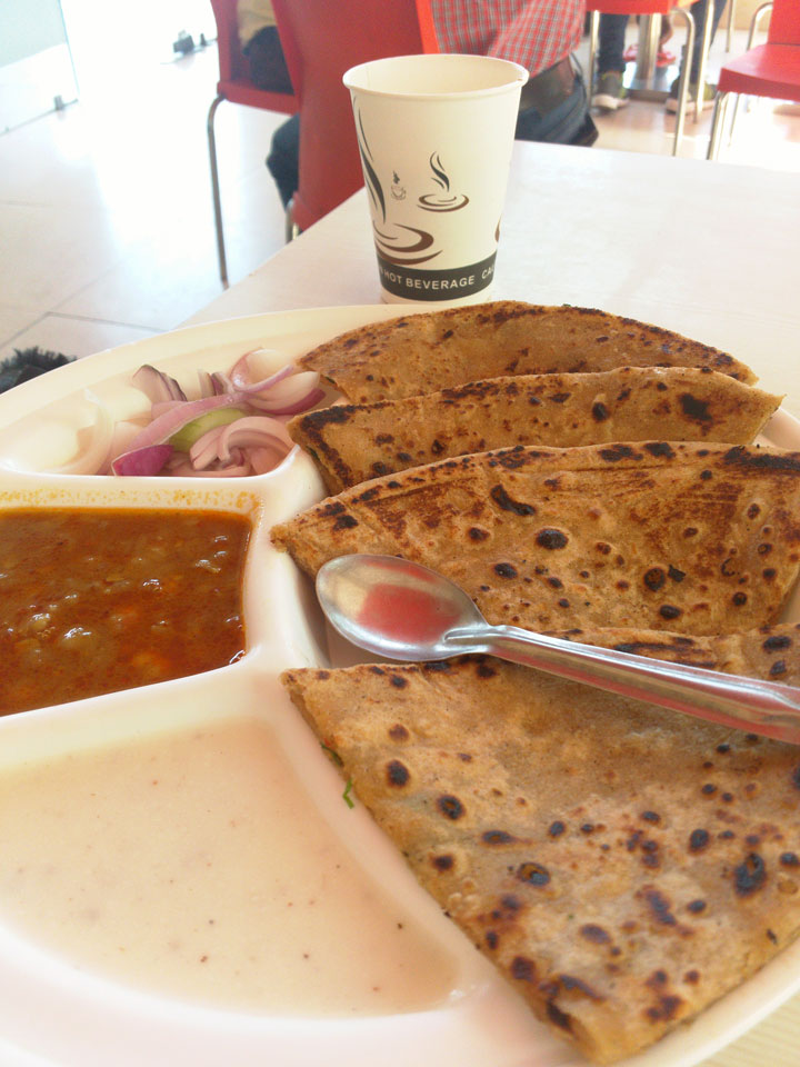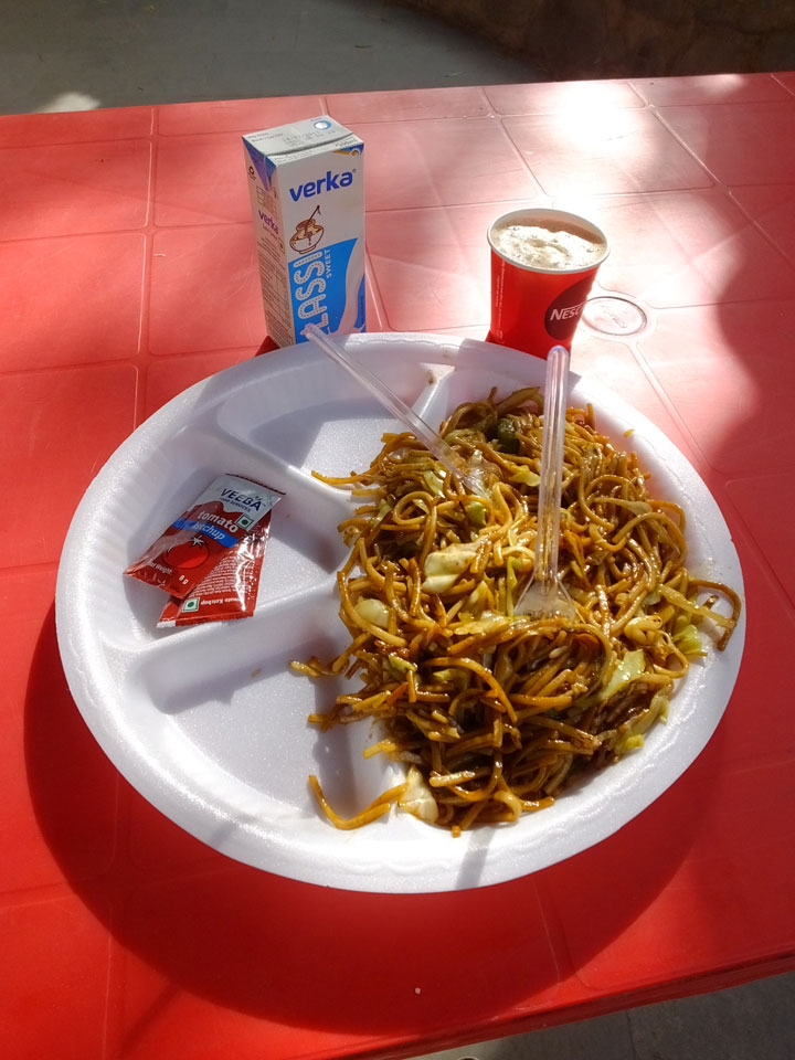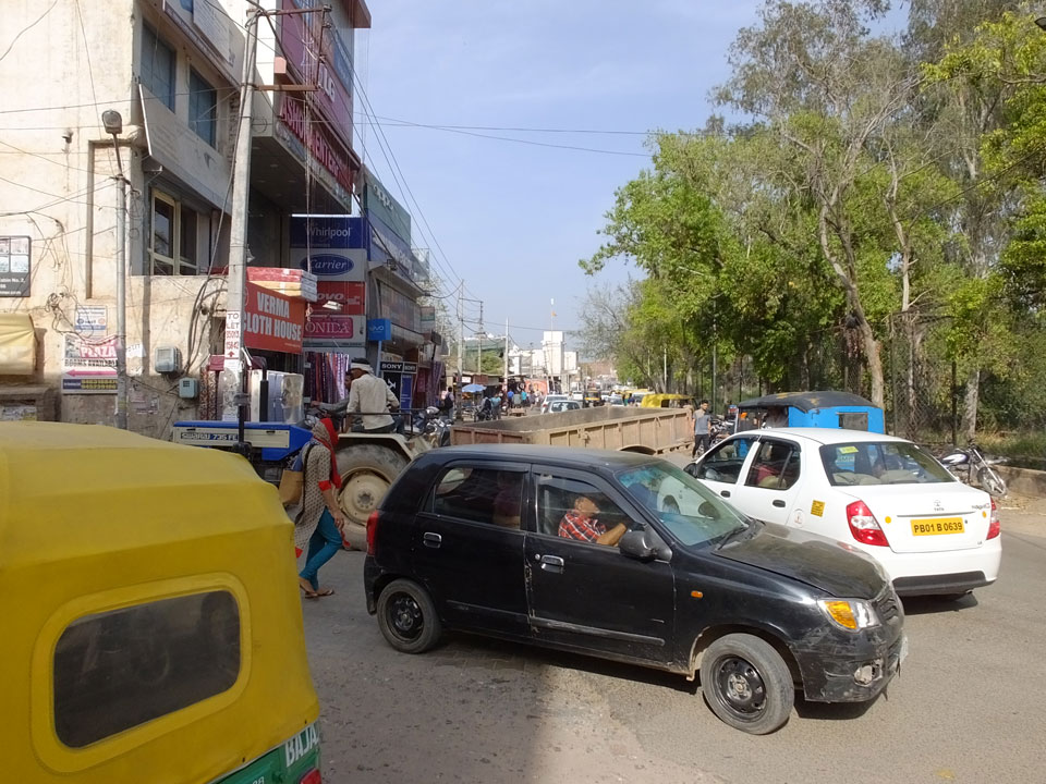 Um 9:30 kam der Zug in Chandigarh an. Weit außerhalb der Stadt, die in einem Raster geplant und gebaut wurde, machte ich nochmals Frühstück. Dann sah ich über Ola ein Taxi in der Nähe. Das erste Mal Ola, wobei man da einen 4-stelligen Code nach der Buchung dem Fahrer sagen muss.