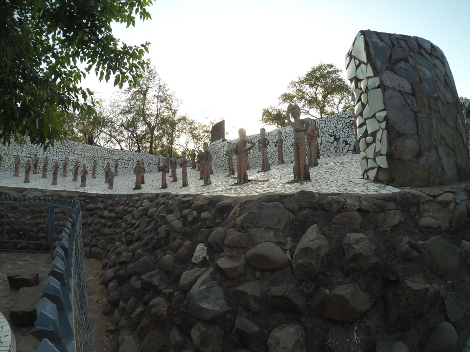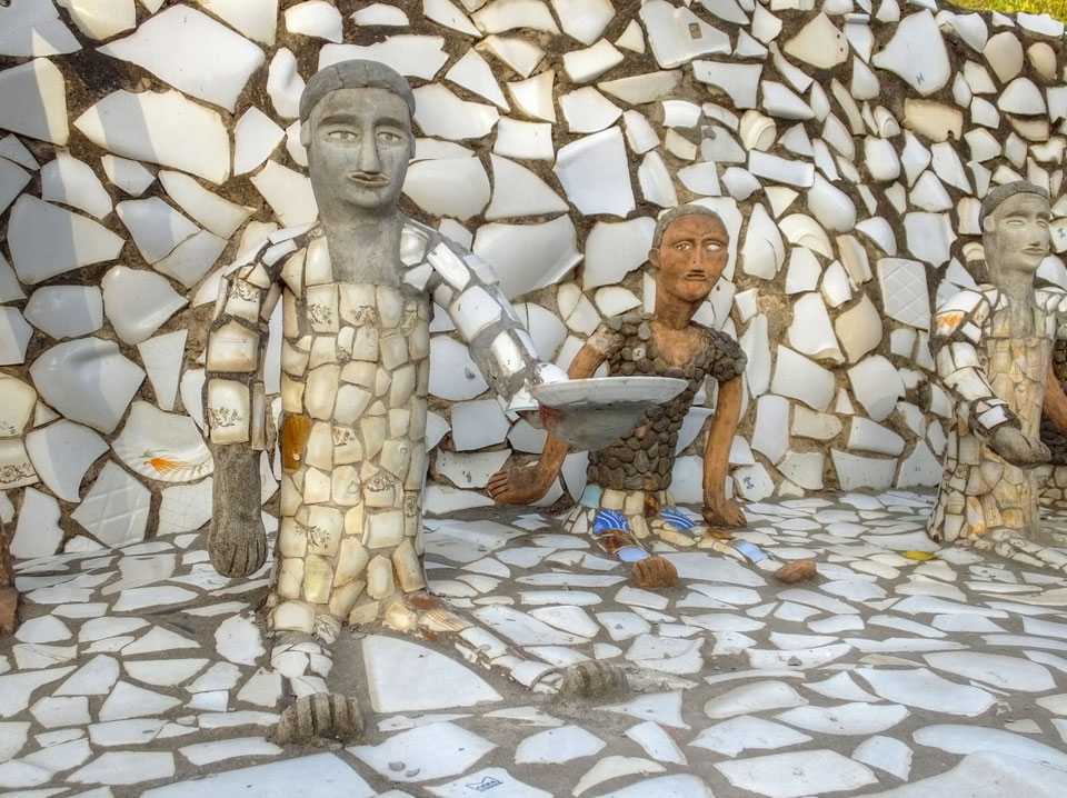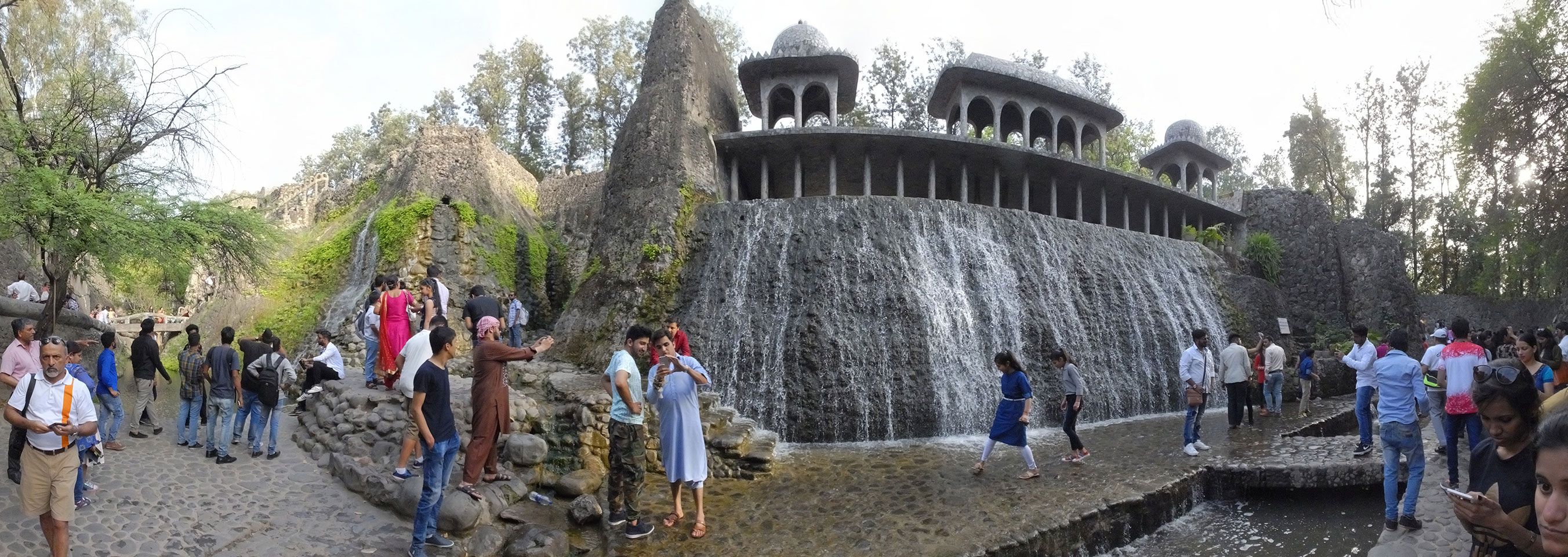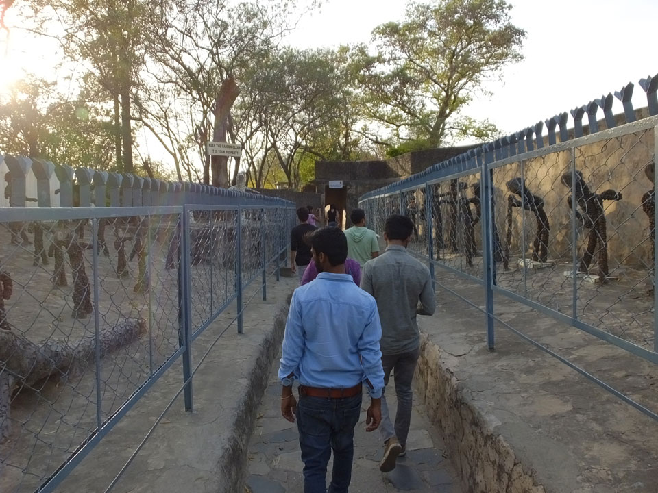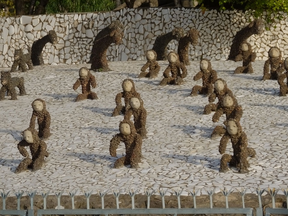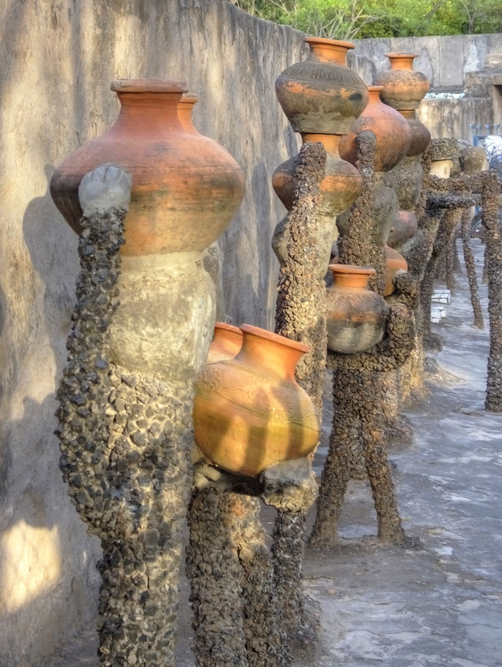 Auf einem großen Areal startete der Weg durch den Park an künstlichen Steinwänden und Wasserfällen. Ein Dorado für Selfie-Liebende Inder und auch für mich. Ich knipste herum in dieser geschaffenen Landschaft, fand dann den Weg zu den vielen Plätzen mit Gruppen von Statuen. Der Künstler gestaltet selten ein einzelnes Exemplar sondern machte oft viele Kopien.