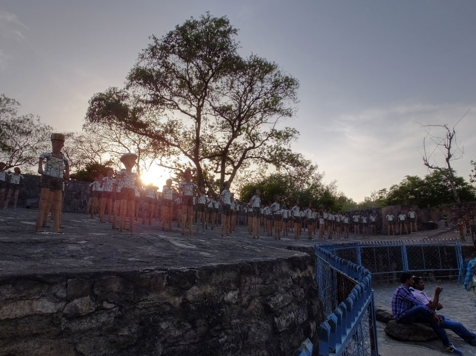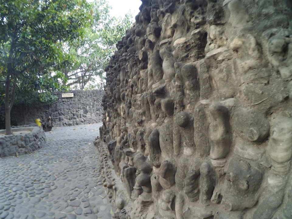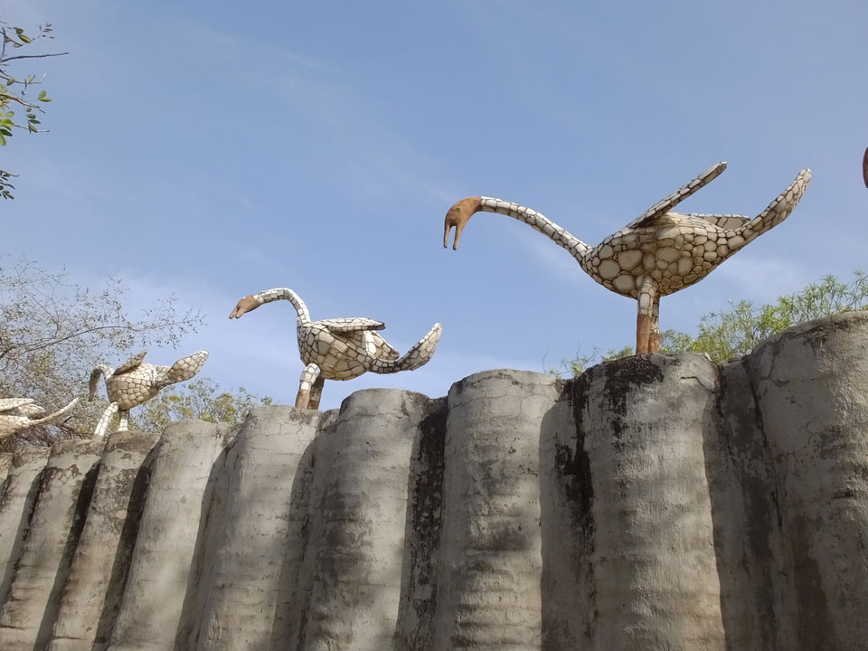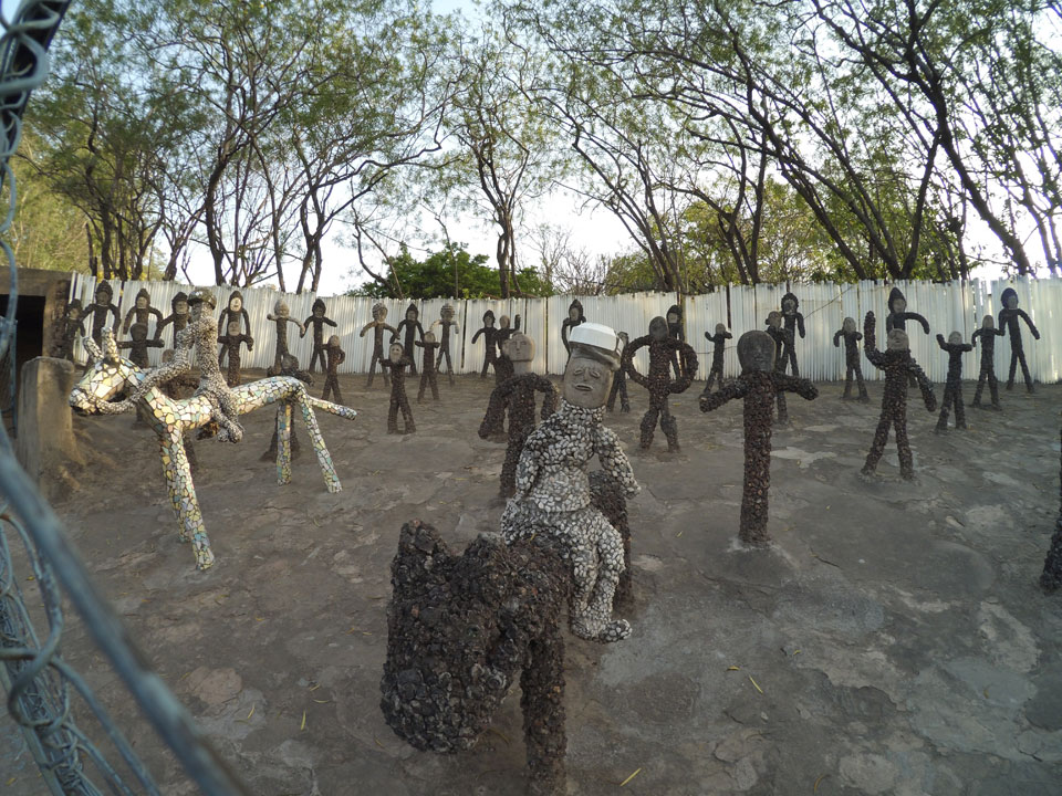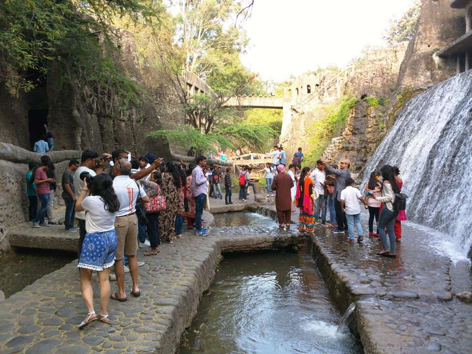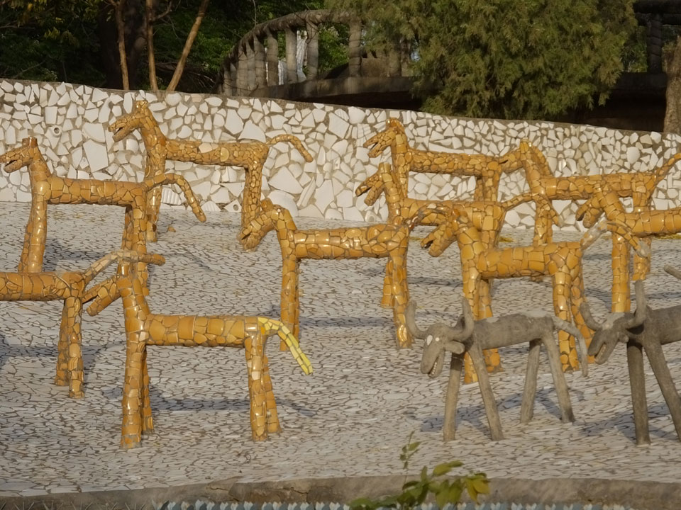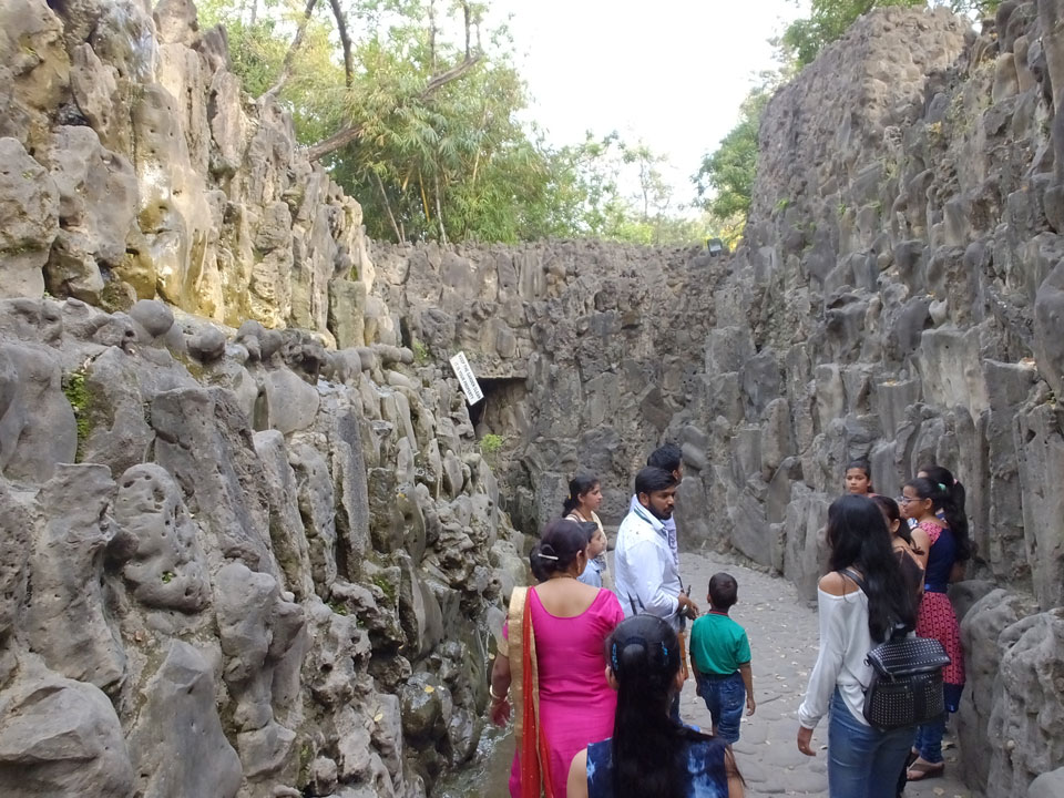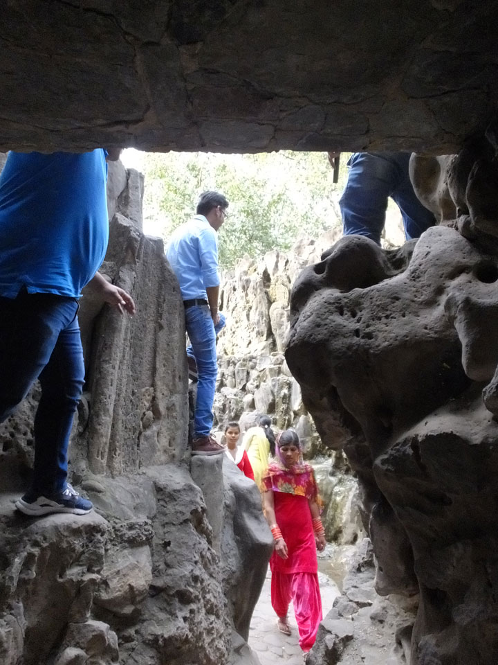 Auf einem großen Areal startete der Weg durch den Park an künstlichen Steinwänden und Wasserfällen. Ein Dorado für Selfie-Liebende Inder und auch für mich. Ich knipste herum in dieser geschaffenen Landschaft, fand dann den Weg zu den vielen Plätzen mit Gruppen von Statuen. Der Künstler gestaltet selten ein einzelnes Exemplar sondern machte oft viele Kopien.