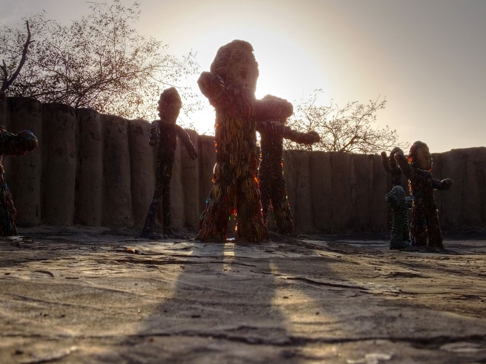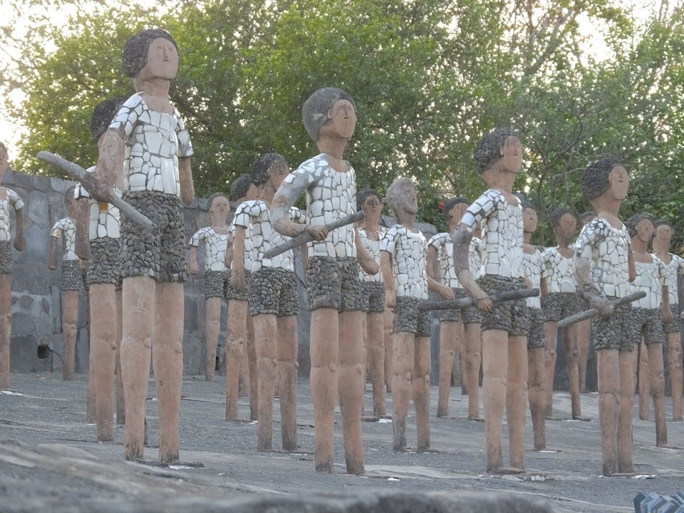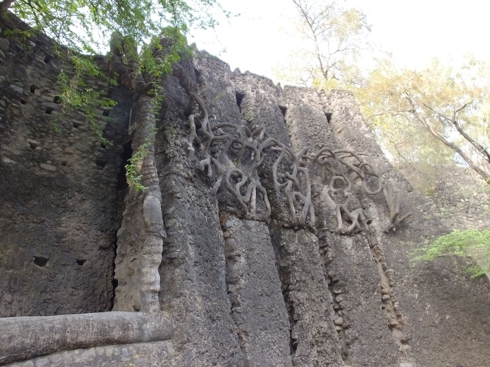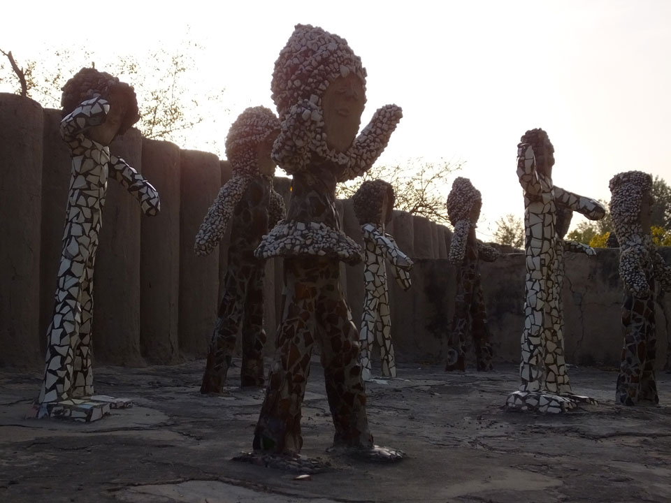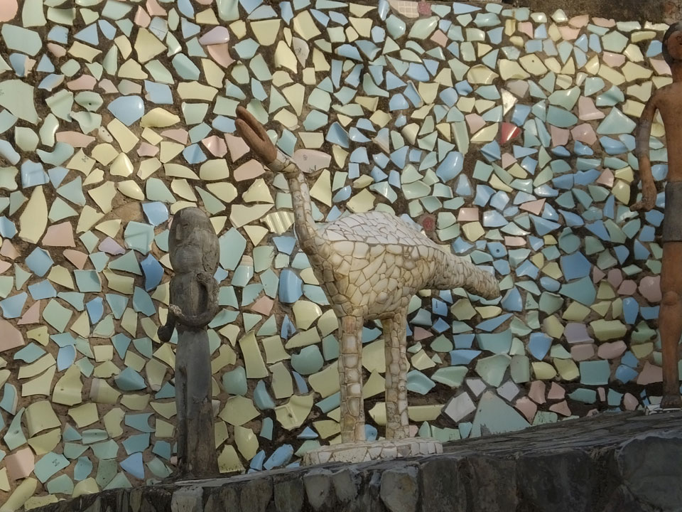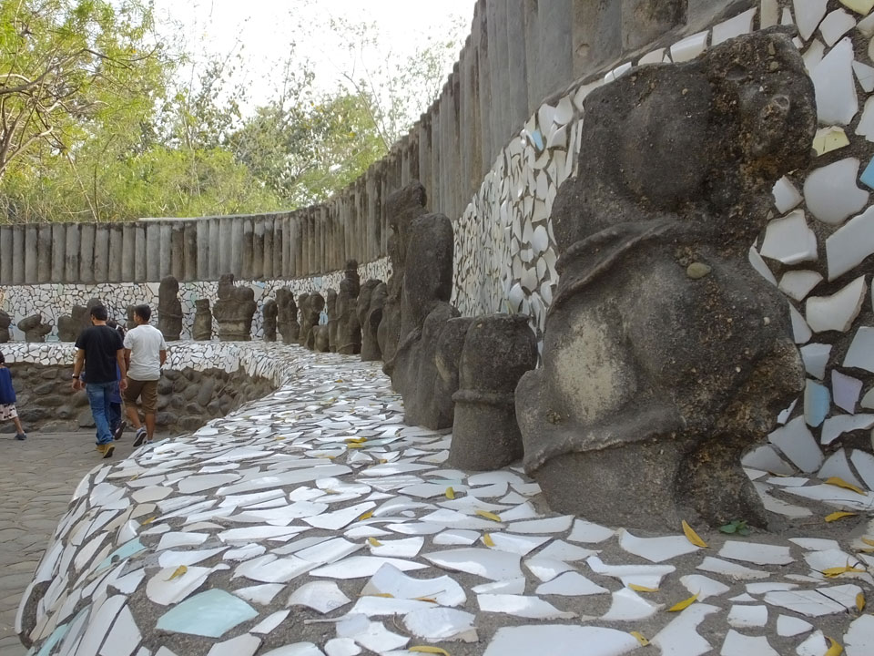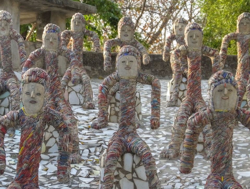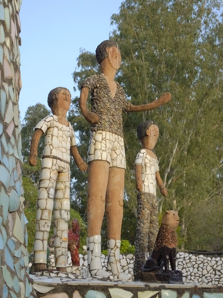 Auf einem großen Areal startete der Weg durch den Park an künstlichen Steinwänden und Wasserfällen. Ein Dorado für Selfie-Liebende Inder und auch für mich. Ich knipste herum in dieser geschaffenen Landschaft, fand dann den Weg zu den vielen Plätzen mit Gruppen von Statuen. Der Künstler gestaltet selten ein einzelnes Exemplar sondern machte oft viele Kopien.