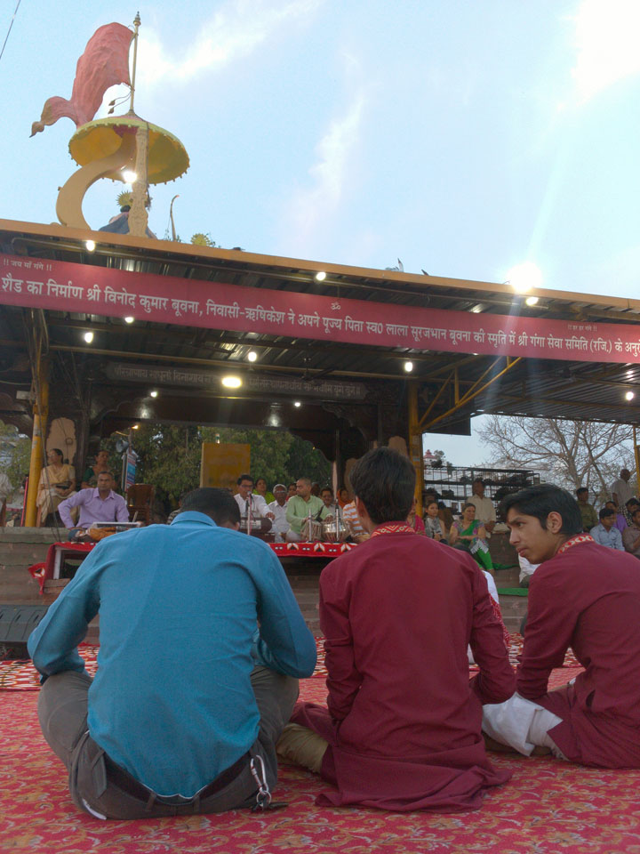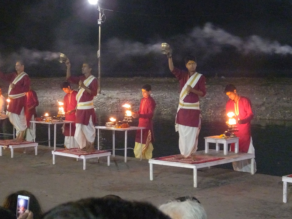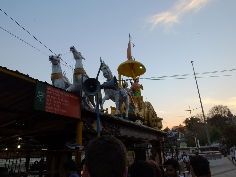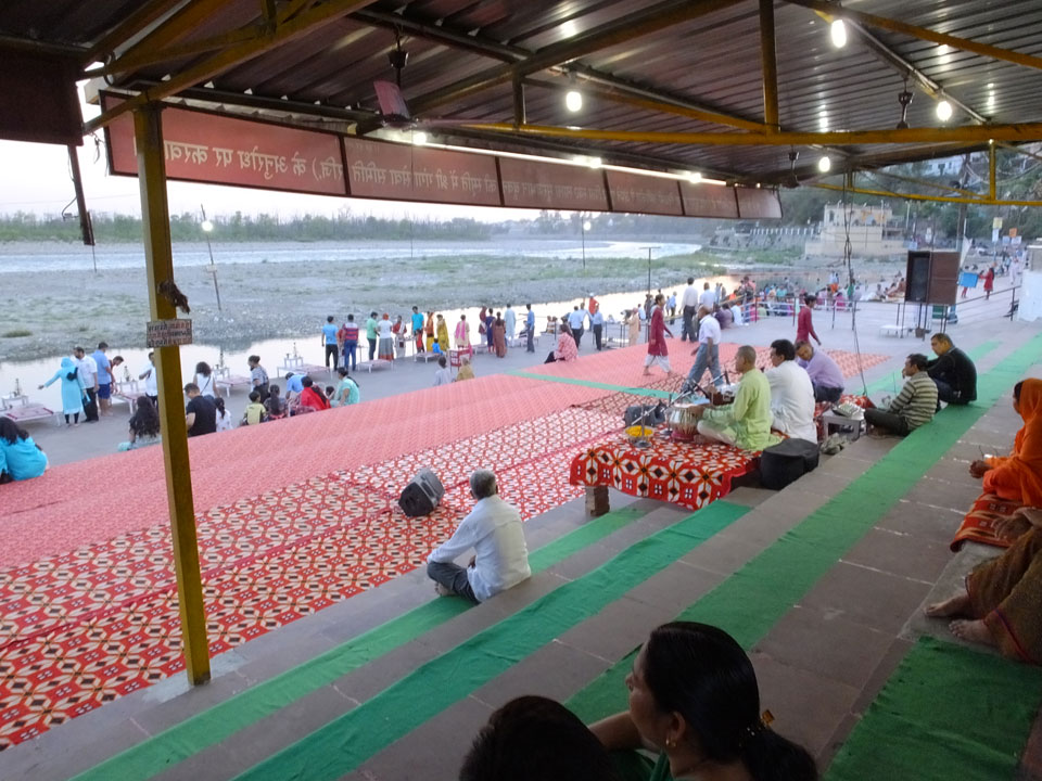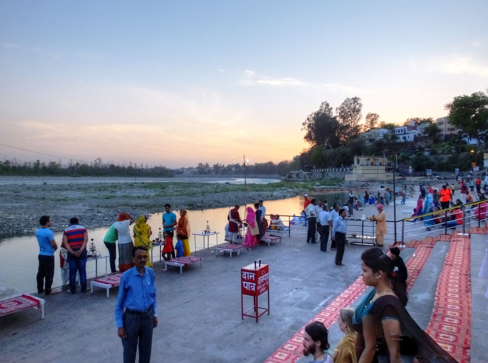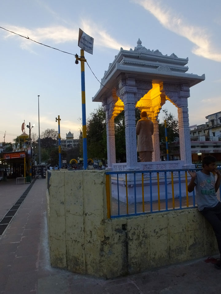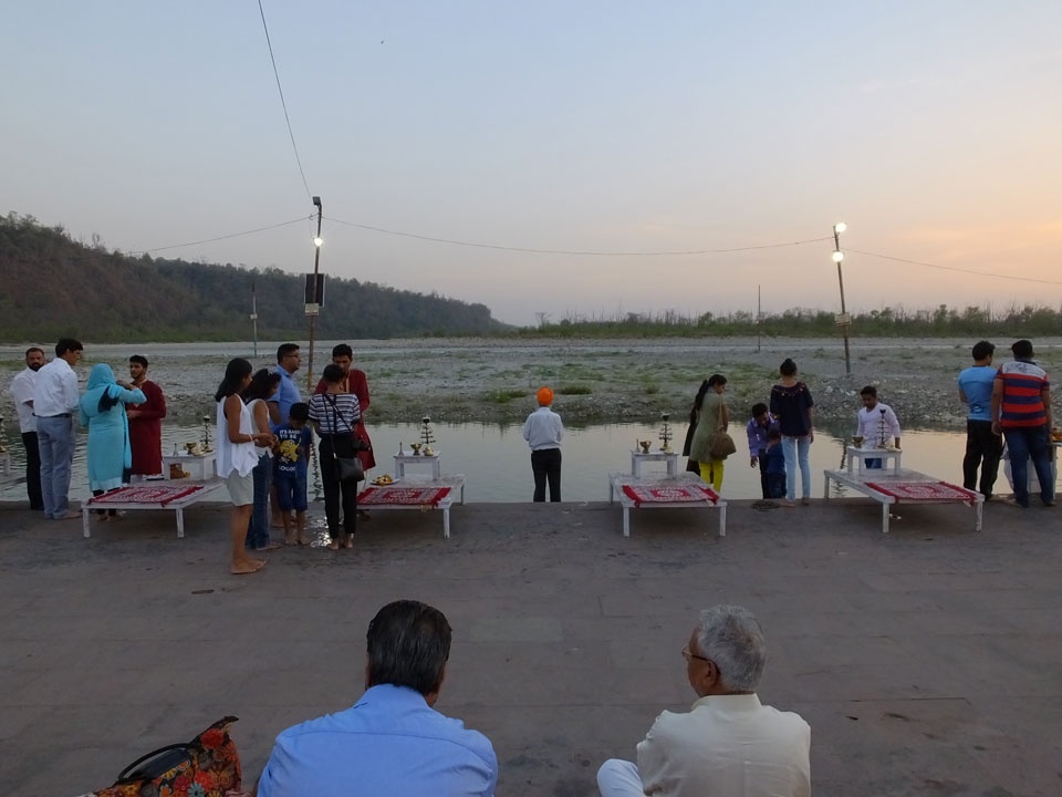 Damit überhaupt mal was Touristisches passiert, wartete ich auf der Tour zur Ganga Aarti. Es kamen ein paar Leute zusammen. Ich dachte eigentlich, dass die Sache in de Nähe war, sah dann aber auf der Karte 15′ Fahrtzeit. Ein Eis auf dem Weg, dann mit dem Tuktuk Richtung Haridwar.