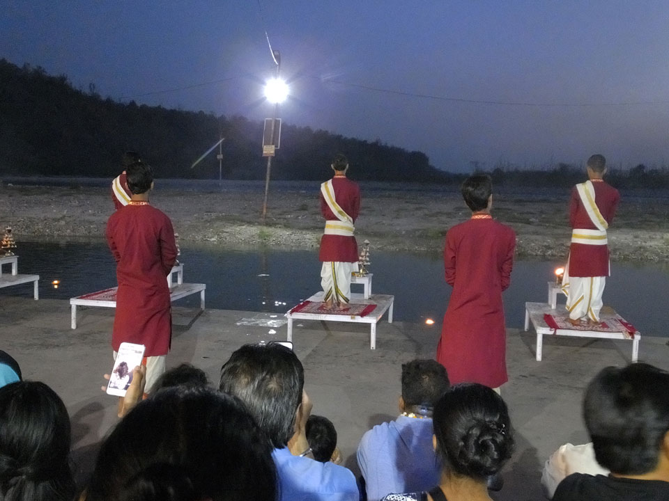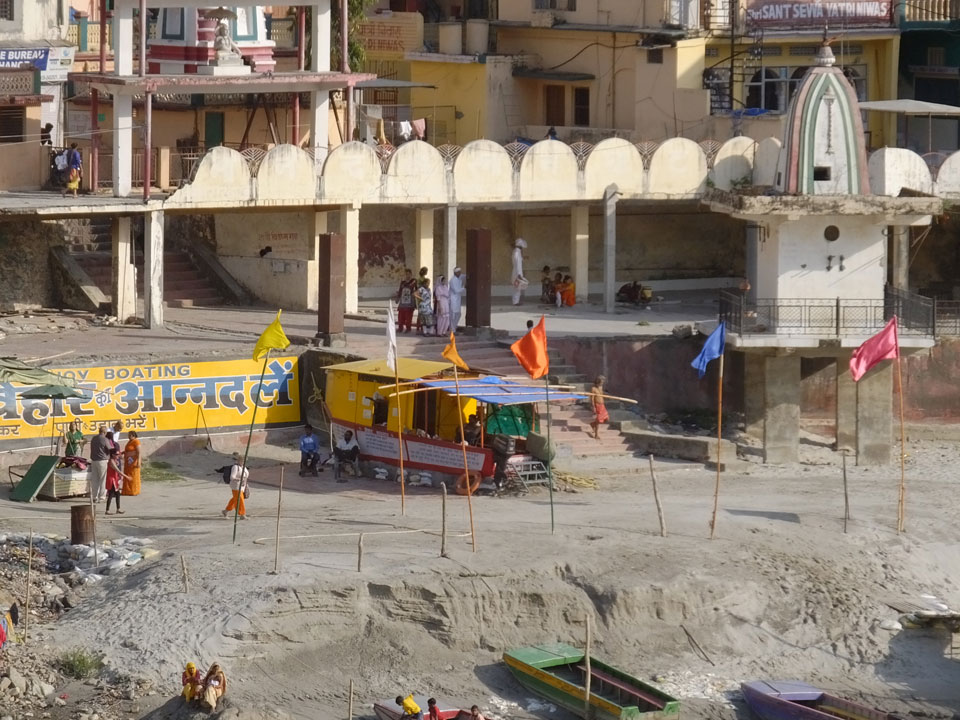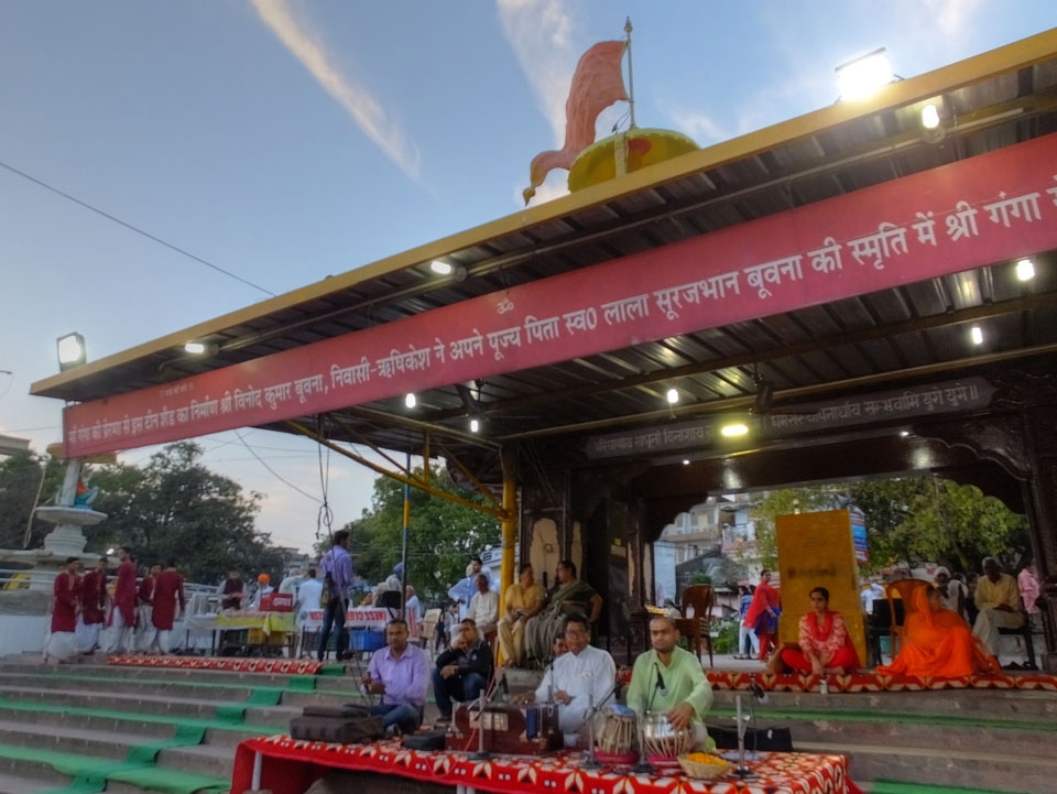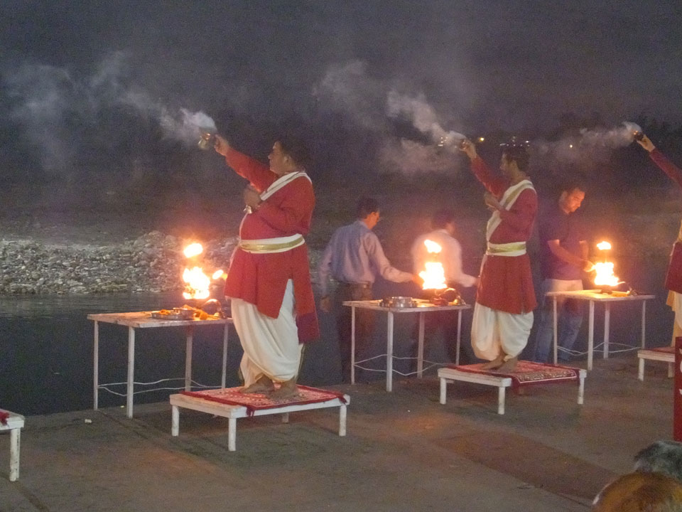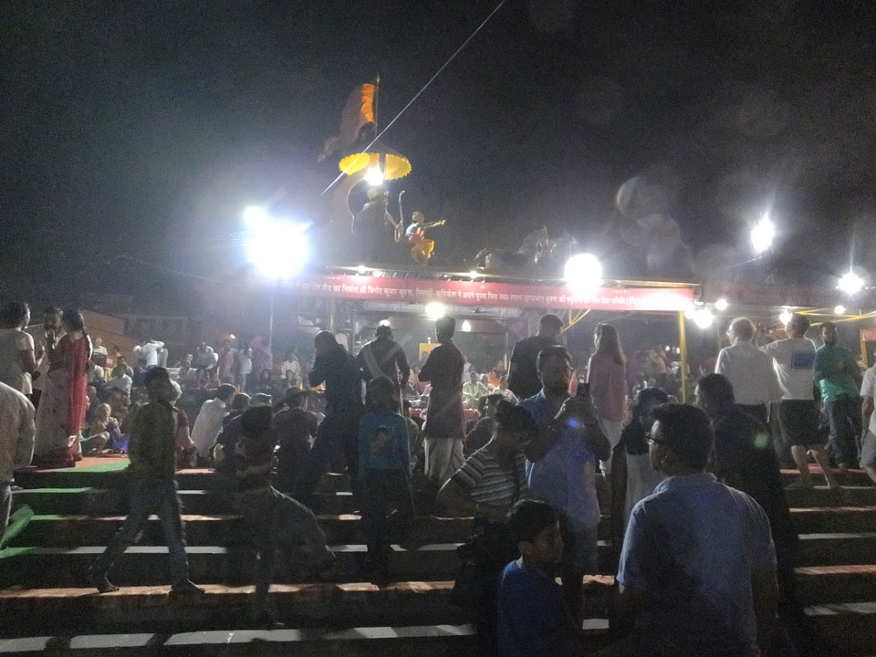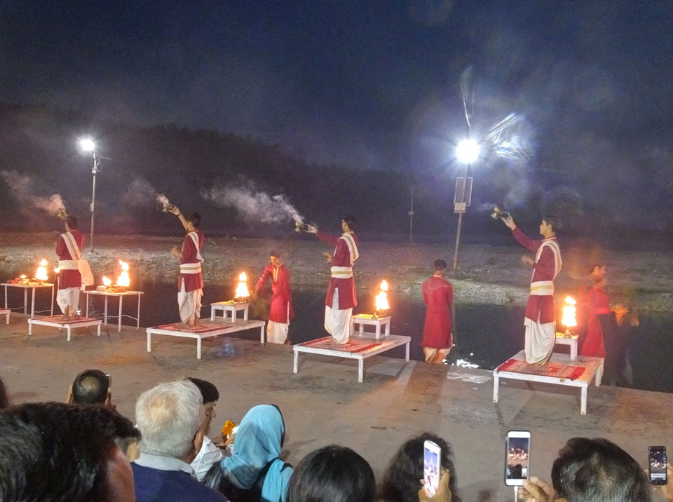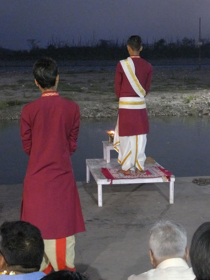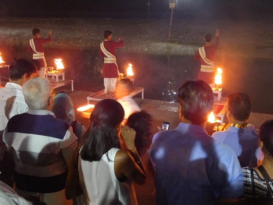 Damit überhaupt mal was Touristisches passiert, wartete ich auf der Tour zur Ganga Aarti. Es kamen ein paar Leute zusammen. Ich dachte eigentlich, dass die Sache in de Nähe war, sah dann aber auf der Karte 15′ Fahrtzeit. Ein Eis auf dem Weg, dann mit dem Tuktuk Richtung Haridwar.