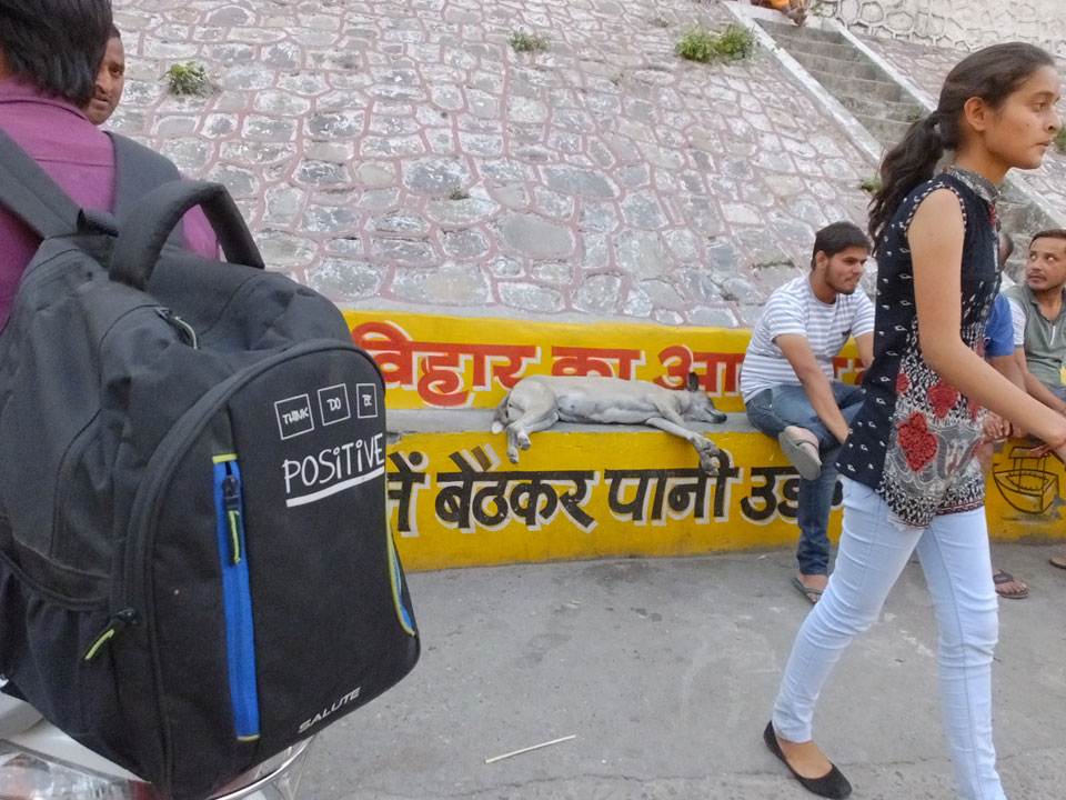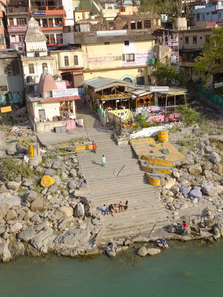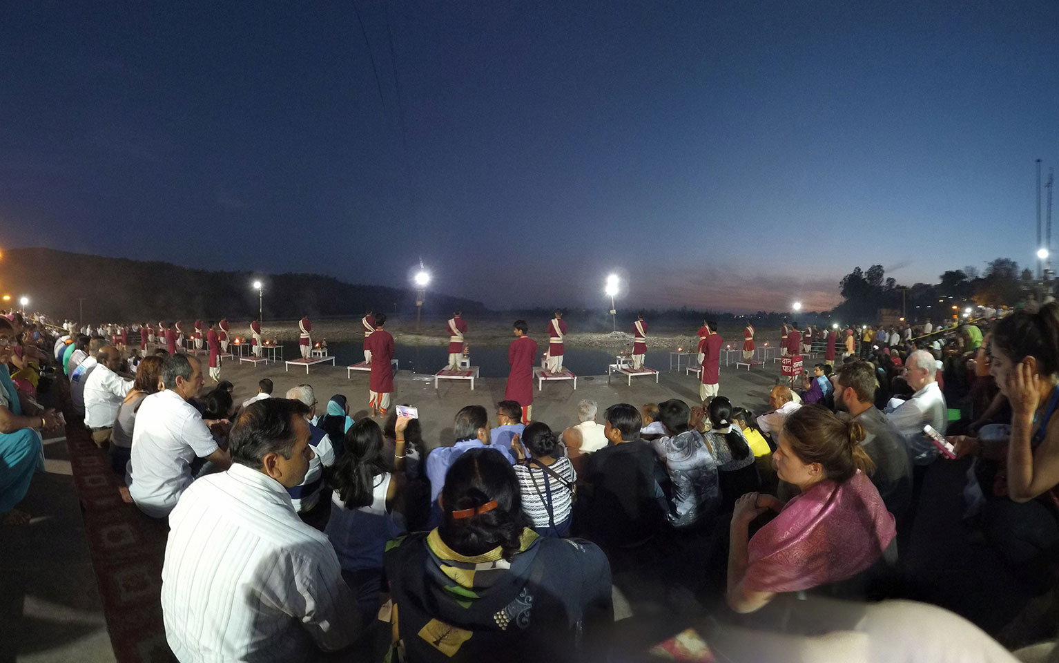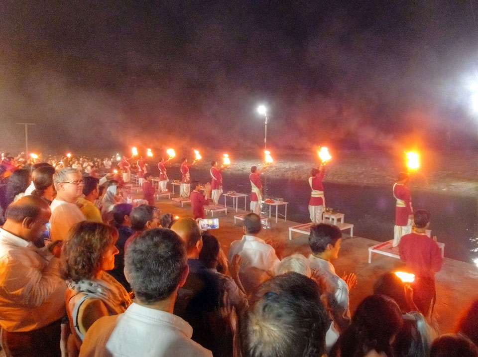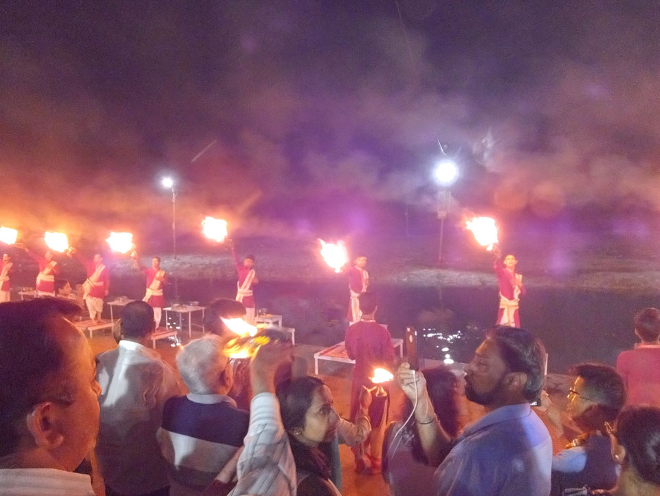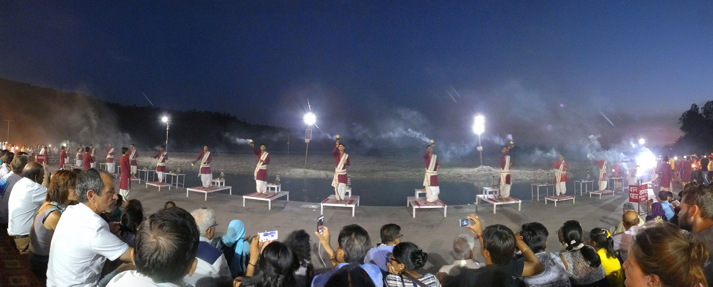 Damit überhaupt mal was Touristisches passiert, wartete ich auf der Tour zur Ganga Aarti. Es kamen ein paar Leute zusammen. Ich dachte eigentlich, dass die Sache in de Nähe war, sah dann aber auf der Karte 15′ Fahrtzeit. Ein Eis auf dem Weg, dann mit dem Tuktuk Richtung Haridwar.