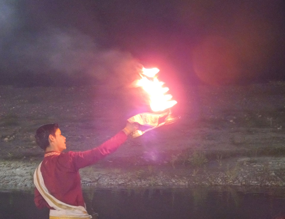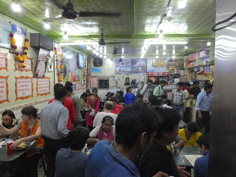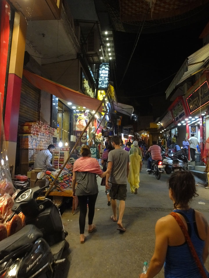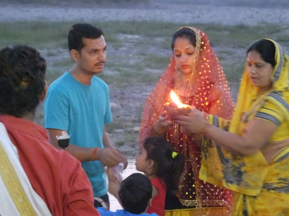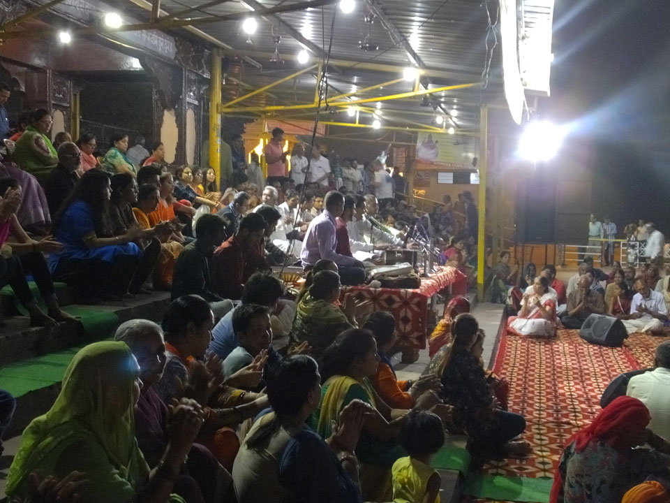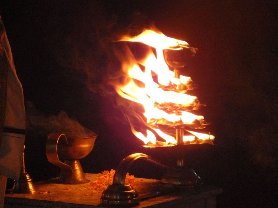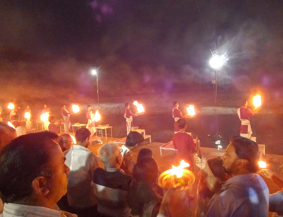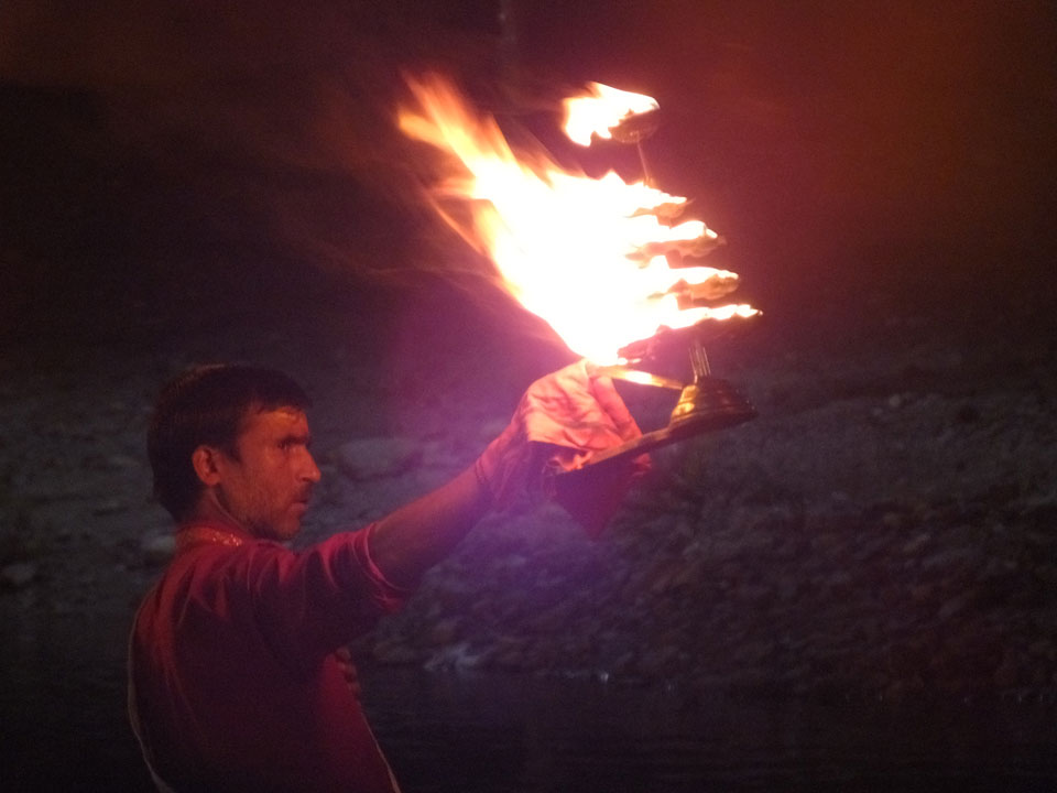 Schon spielte die Musik und dann war die Gebets-Zeremonie auch sehr schön. Nach der Puja, der Feuer-Zeremonie, gingen wir dann. Es gab Zucker und dann schauten wir noch an einem Lassi Shop im Ort vorbei. Ein Tisch zum Abendessen war in einem Restaurant reserviert. Alles echt gut.