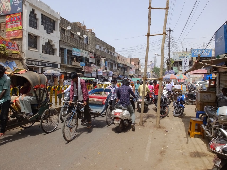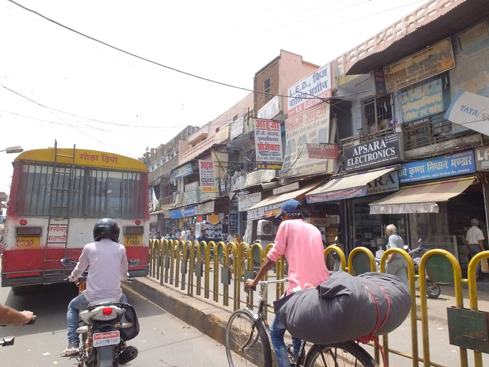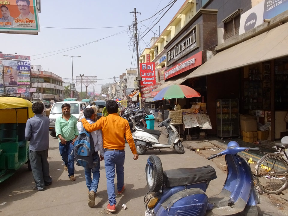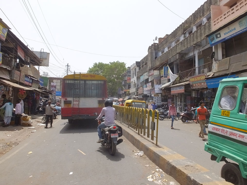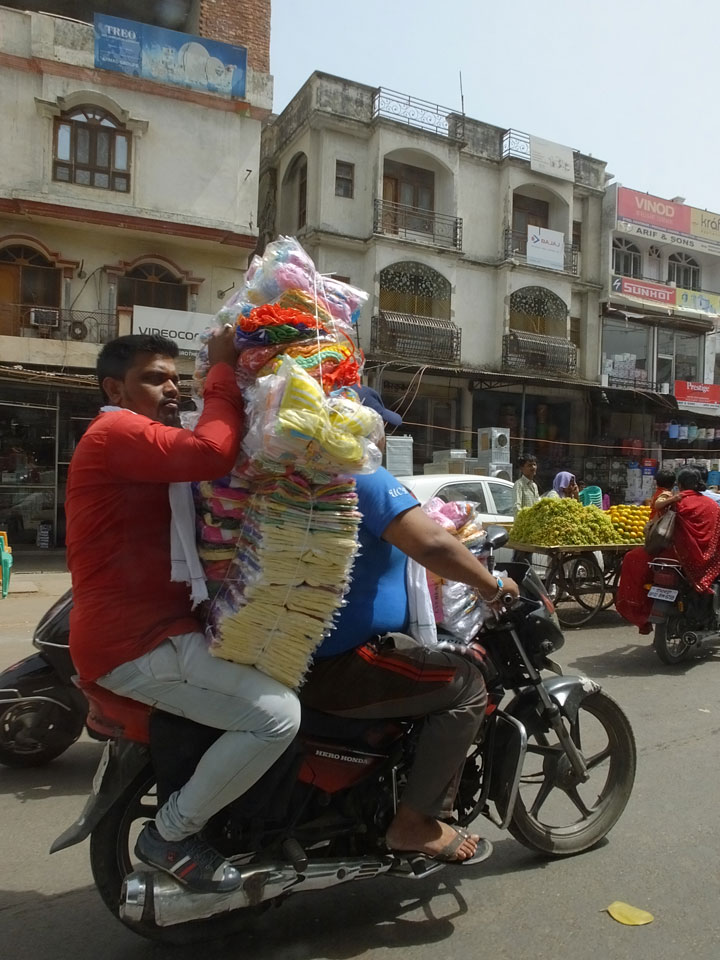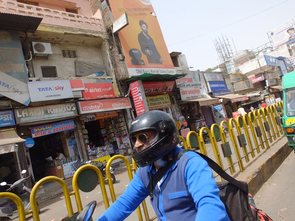 Man stellte einen Mitarbeiter samt Moped zur Verfügung, ich musste Cash holen. Wir fuhren zu zwei Geldautomaten – beide hatten Störungen. Auf den Straßen wimmelte es von Leuten und Tuktuks, alles recht irre. Der nächte Geldautomat klappte und ich hatte ein schönes Bündel 500er Scheine, mit denen ich die 1246 INR dann im Hotel zahlte.