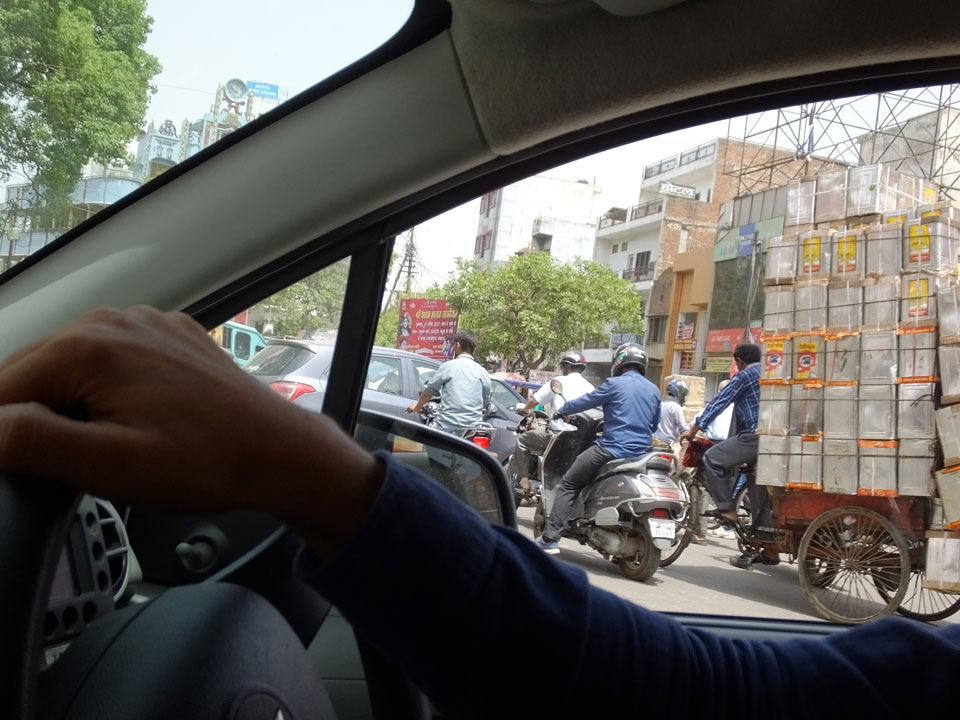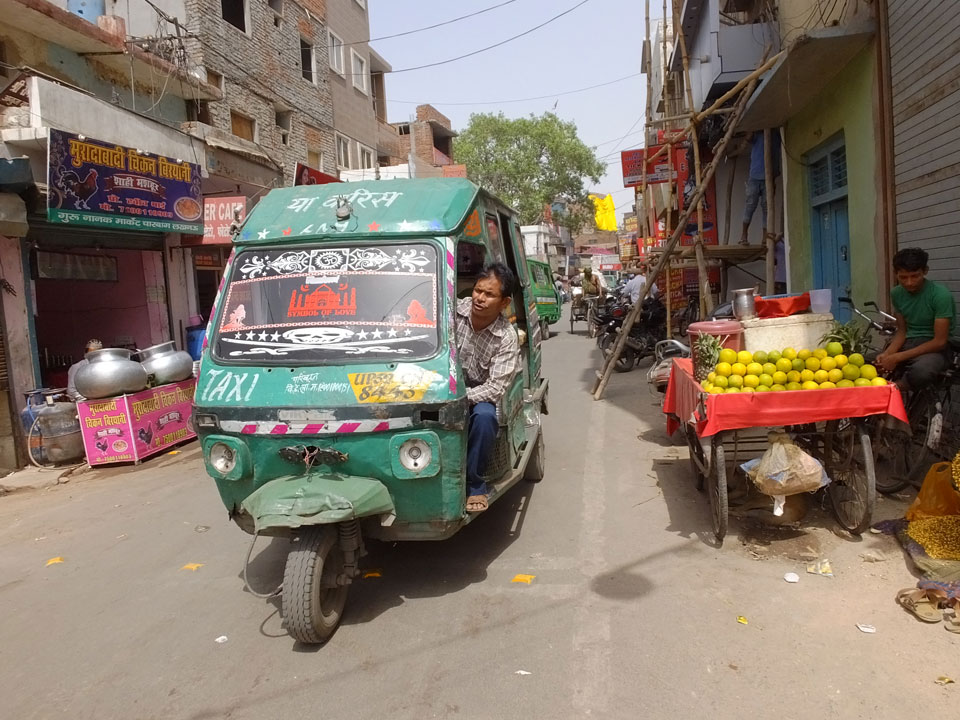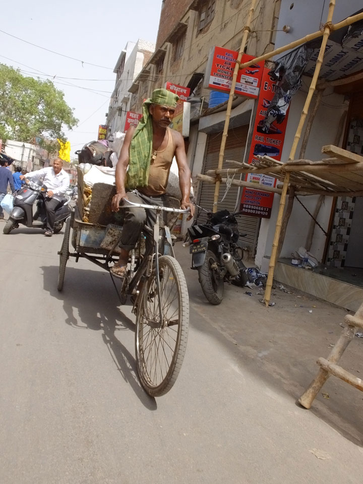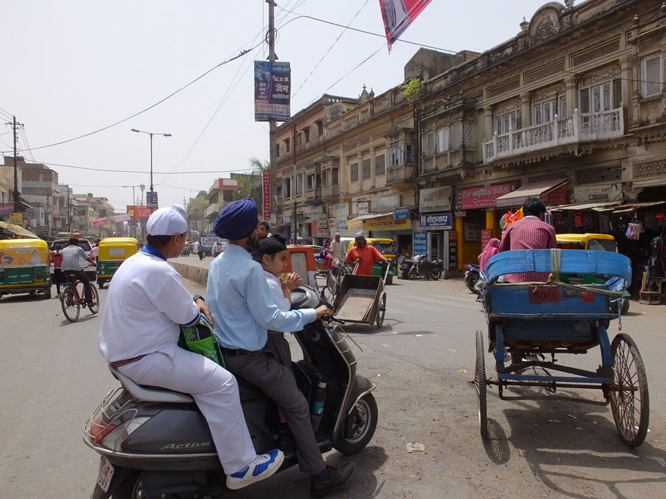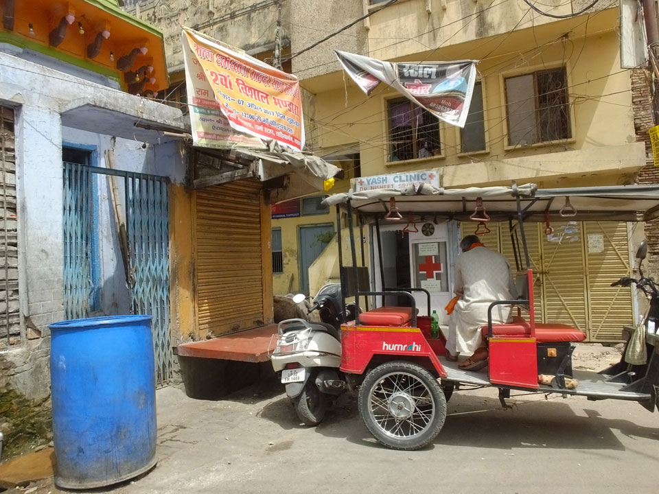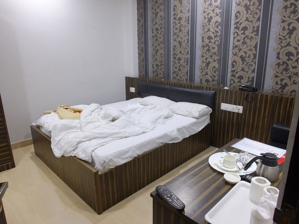 Man stellte einen Mitarbeiter samt Moped zur Verfügung, ich musste Cash holen. Wir fuhren zu zwei Geldautomaten – beide hatten Störungen. Auf den Straßen wimmelte es von Leuten und Tuktuks, alles recht irre. Der nächte Geldautomat klappte und ich hatte ein schönes Bündel 500er Scheine, mit denen ich die 1246 INR dann im Hotel zahlte.