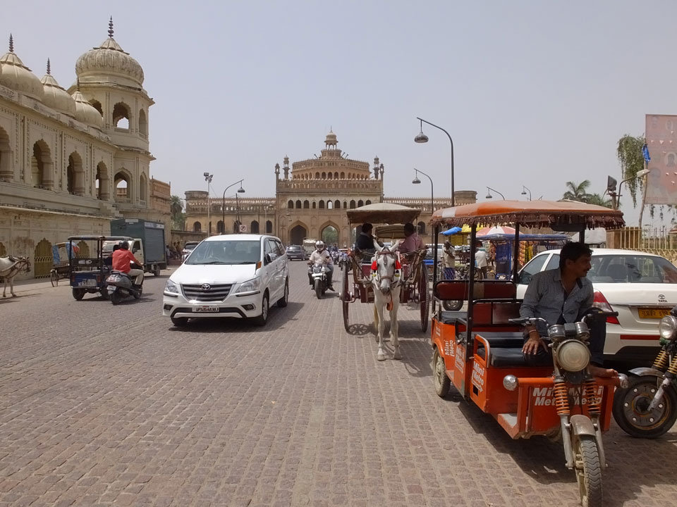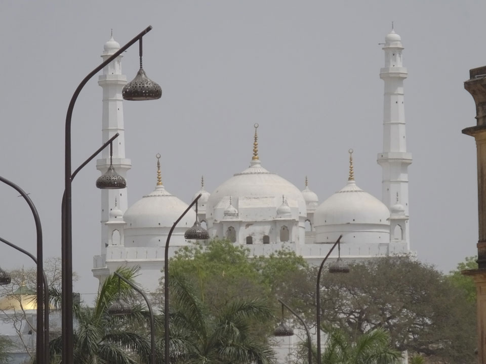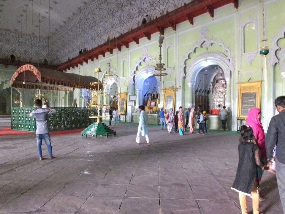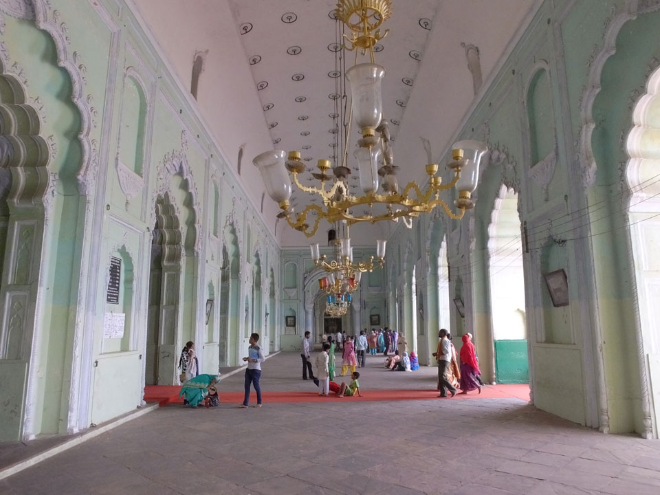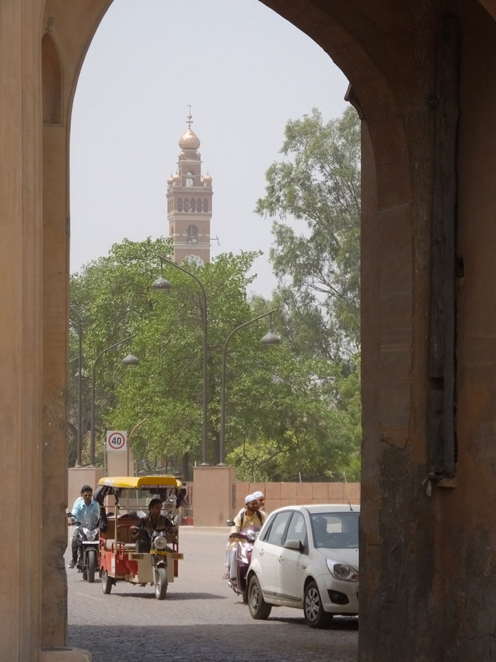 Die Fahrt dauerte fast eine halbe Stunde durch den stockenden Verkehr. Ich zahlte 5 Rupien für die Photo-Erlaubnis aber kam ohne das 500 INR Touristenticket durch, vielleicht war ich aber irgendwie an der falschen Stelle. Nettes Areal, große Moschee – alles OK.