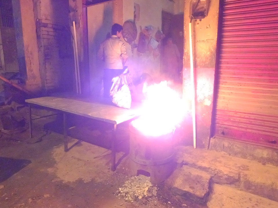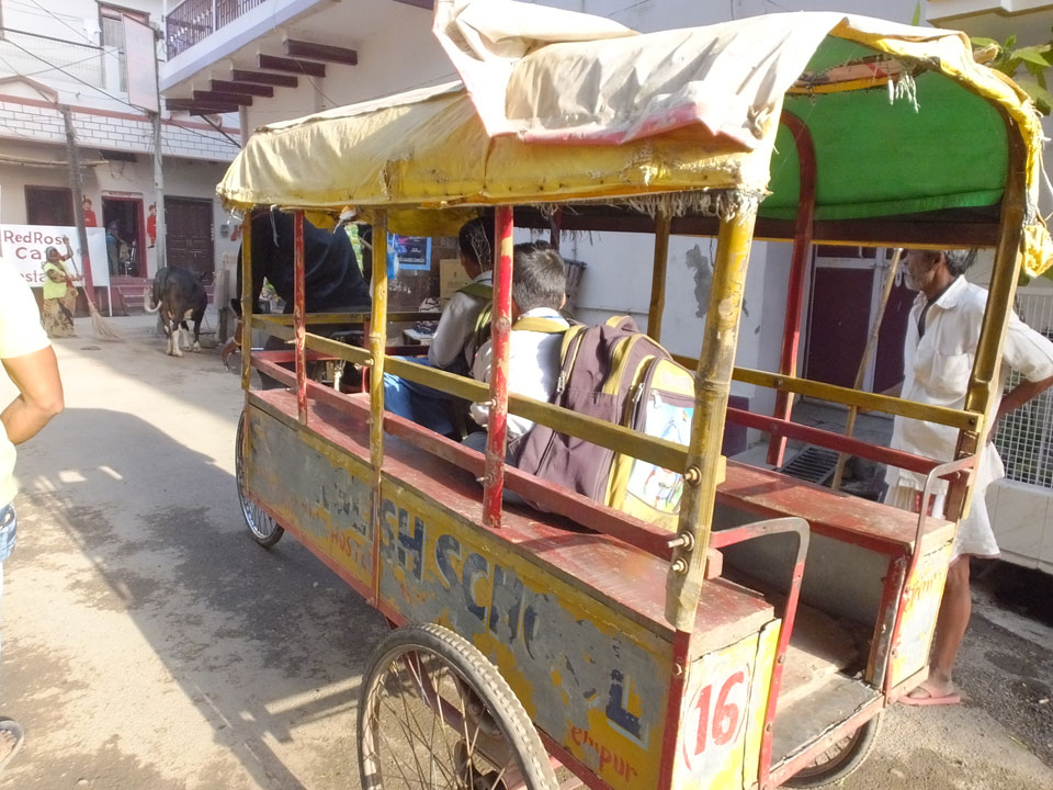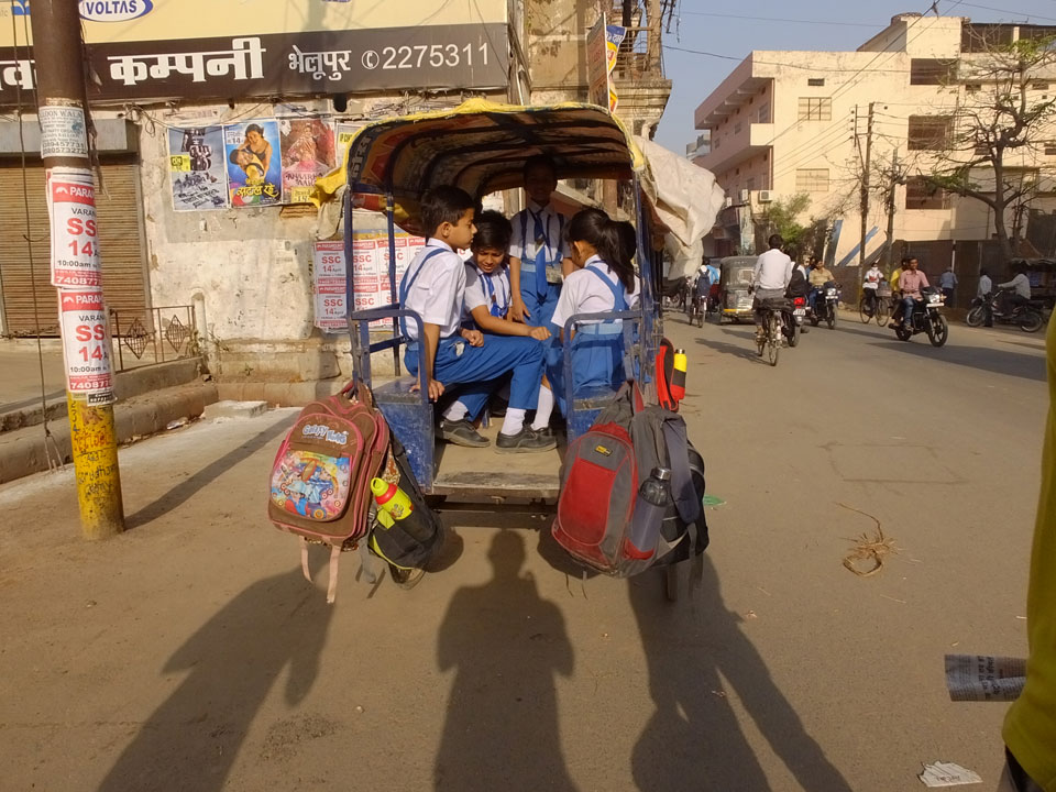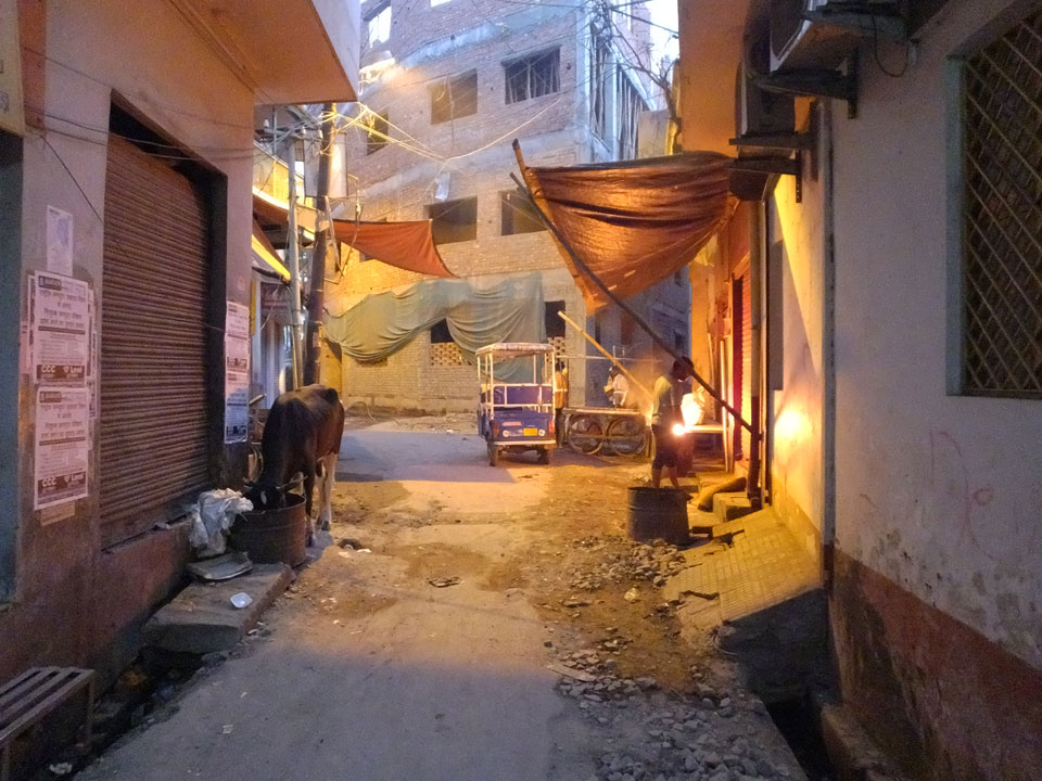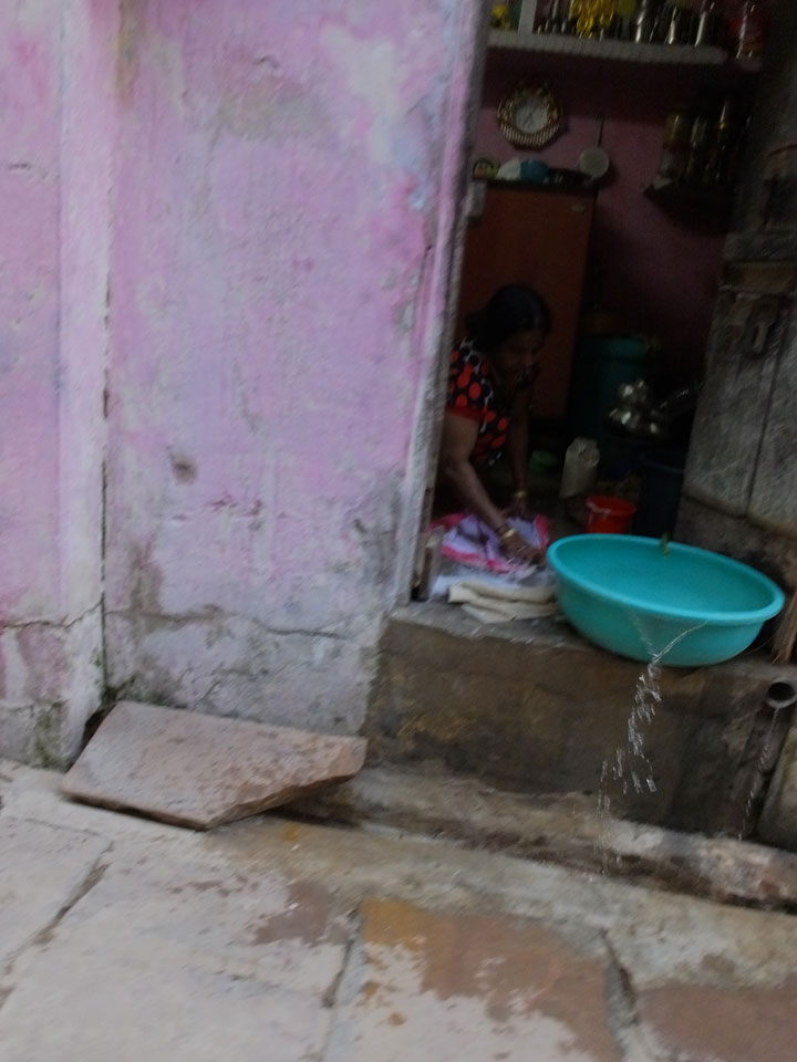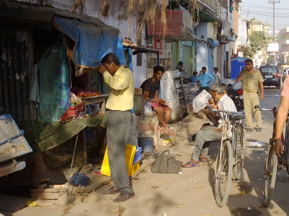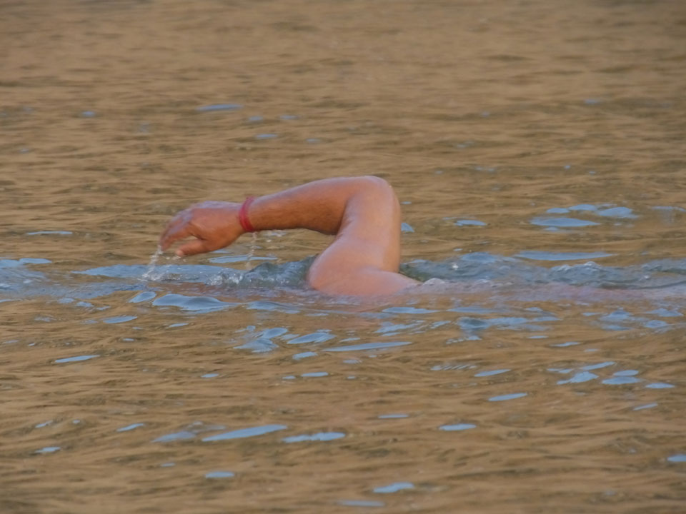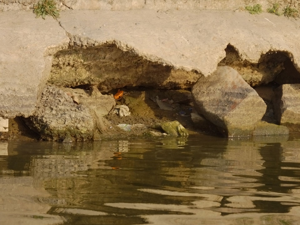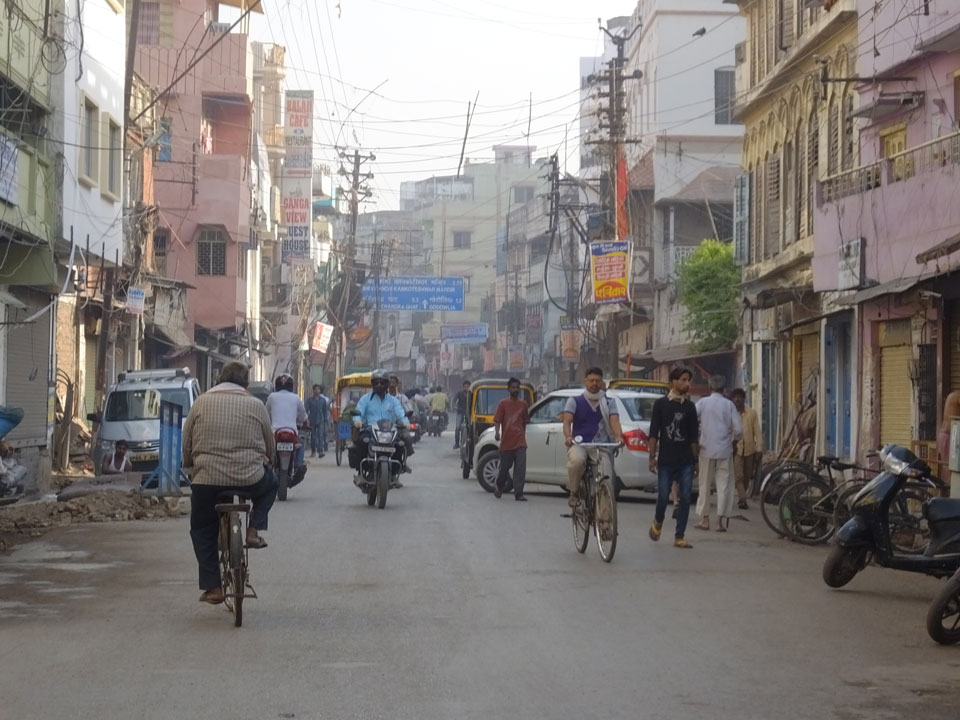 Meinen Wecker hatte ich mit Backups auf 4:35 gestellt. Um 5 war ich tatsächlich unten an der Rezeption, wo auch einige andere Frühaufsteher eintrudelten. Mit einem Zimmergenossen ging es los, unserer Ruderer führte uns zu einem Ghat. Die anderen Leute wurden auf ein anderes Boot gelotst.