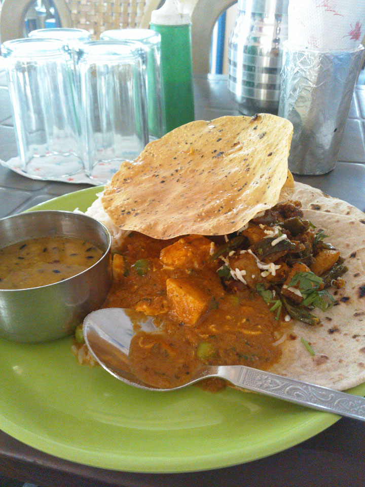 Gegen 16:00 hielten wir endlichzur Rast. Das 170 INR Essen war all you can eat und schmeckte. So hatte ich nur noch 40 Rupees übrig.