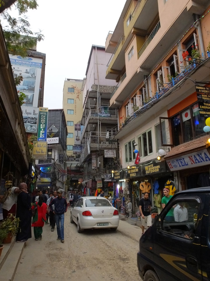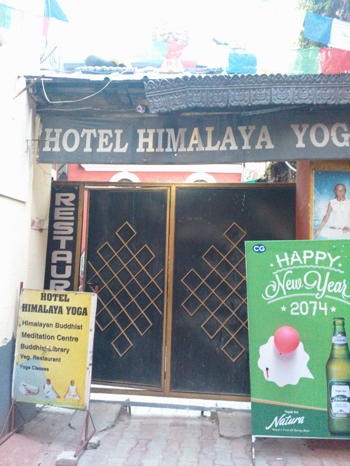 Ich kam im Himalaya Yoga Hotel an, konnte so früh gegen 6 schon einchecken. Das war echt nett, obwohl ich nur ein Einzelzimmer bekam, statt dem bestellten Doppelzimmer. So lag ich erst mal da, war einfach weg für ein paar Stunden. Nach 10 raffte ich mich zum Frühstück auf, das ich normalerweise inclusive habe, heute am ersten Tag aber doch zahlen muss (150). Ein paar Trekker waren gerade auf der Abreise. Einer fragte, ich ich Energy Bars gebrauchen könnte und ja, klar! Er gab mir 3 Bars, sein Kumpel noch Energie-Beutel. So war ich gut ausgestattet, vielleicht kommen die Sachen man gelegen.