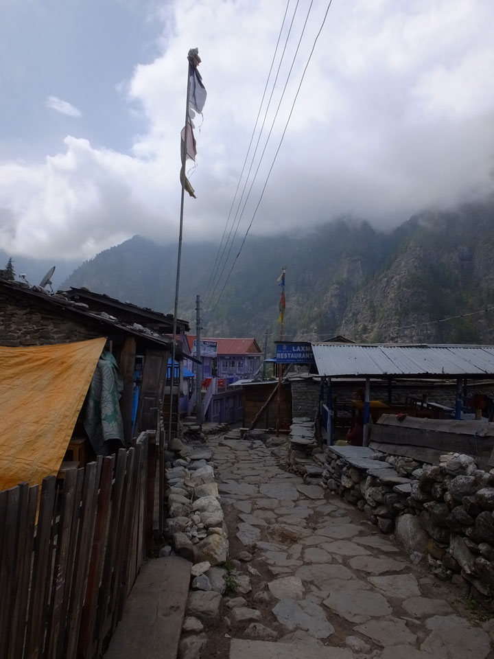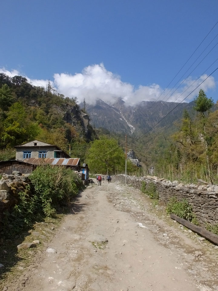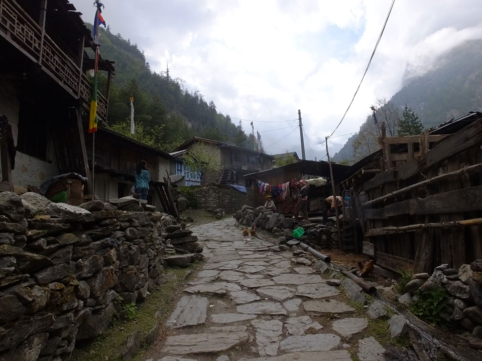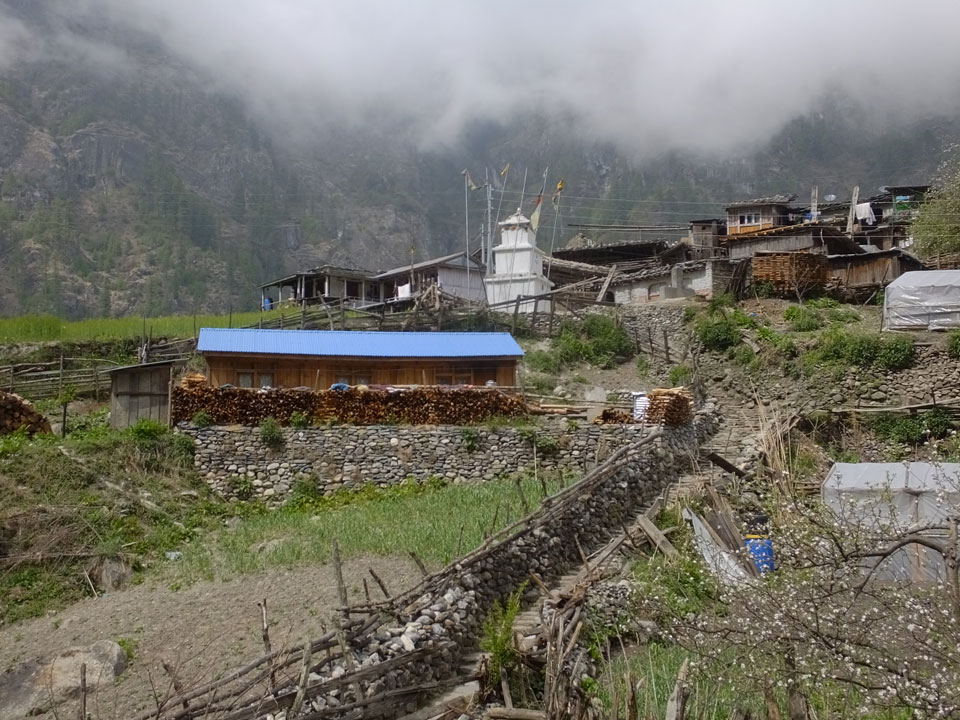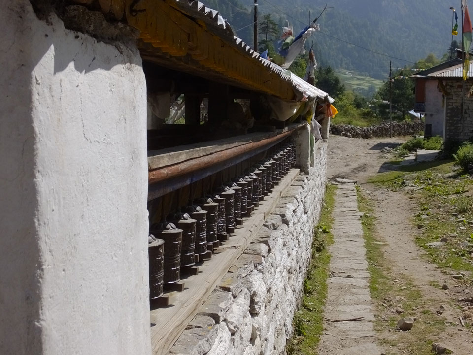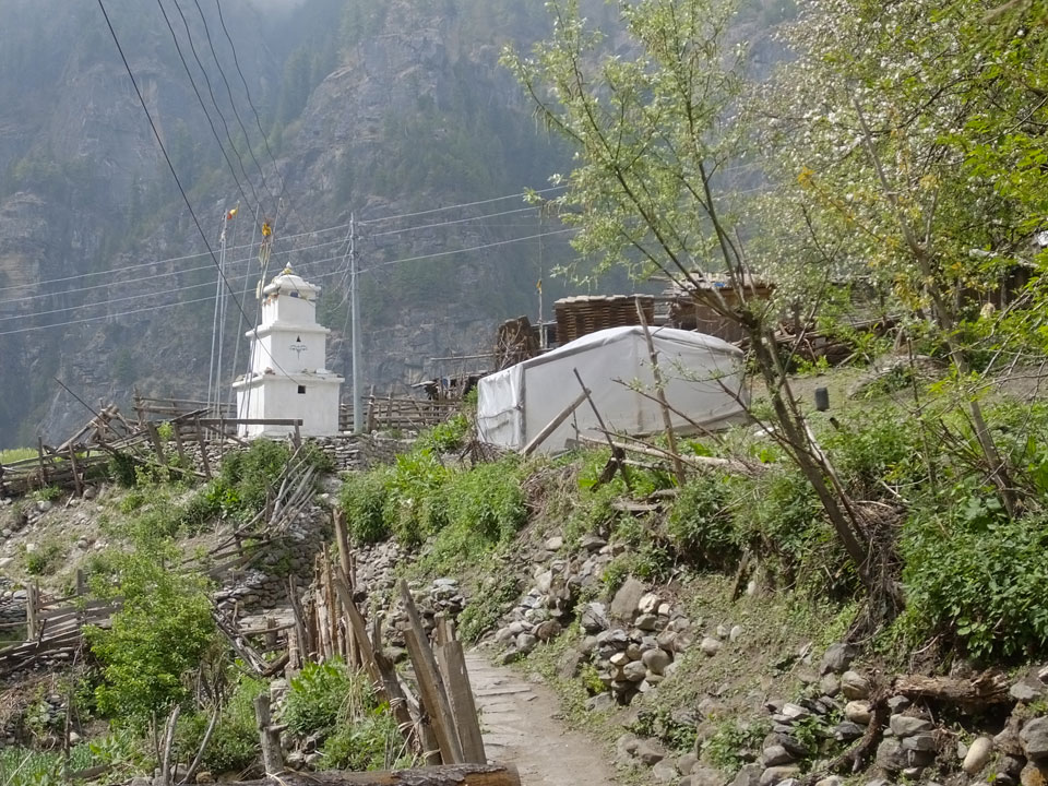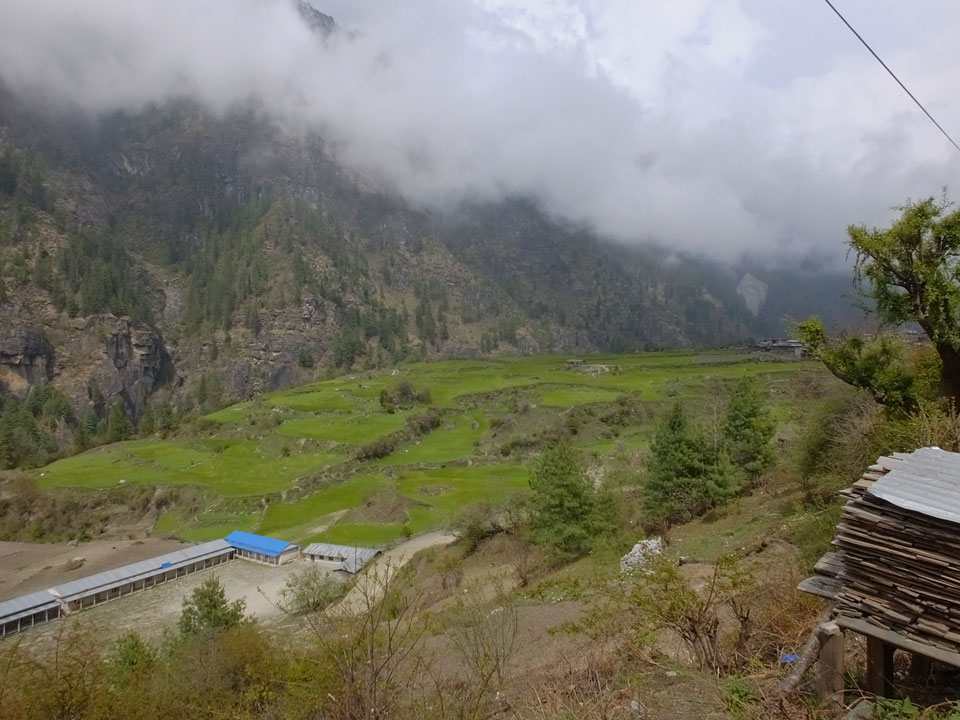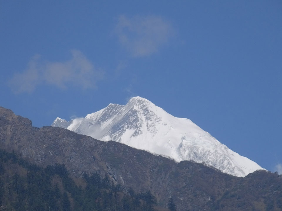 Ich hatte einen Buchweizen Fladen und Omelette zum Frühstück, was mich gut auffüllte. Das Wetter war fantastisch, sodass wir gleich einen Teil des Manaslu (8156m) in der Ferne sahen.