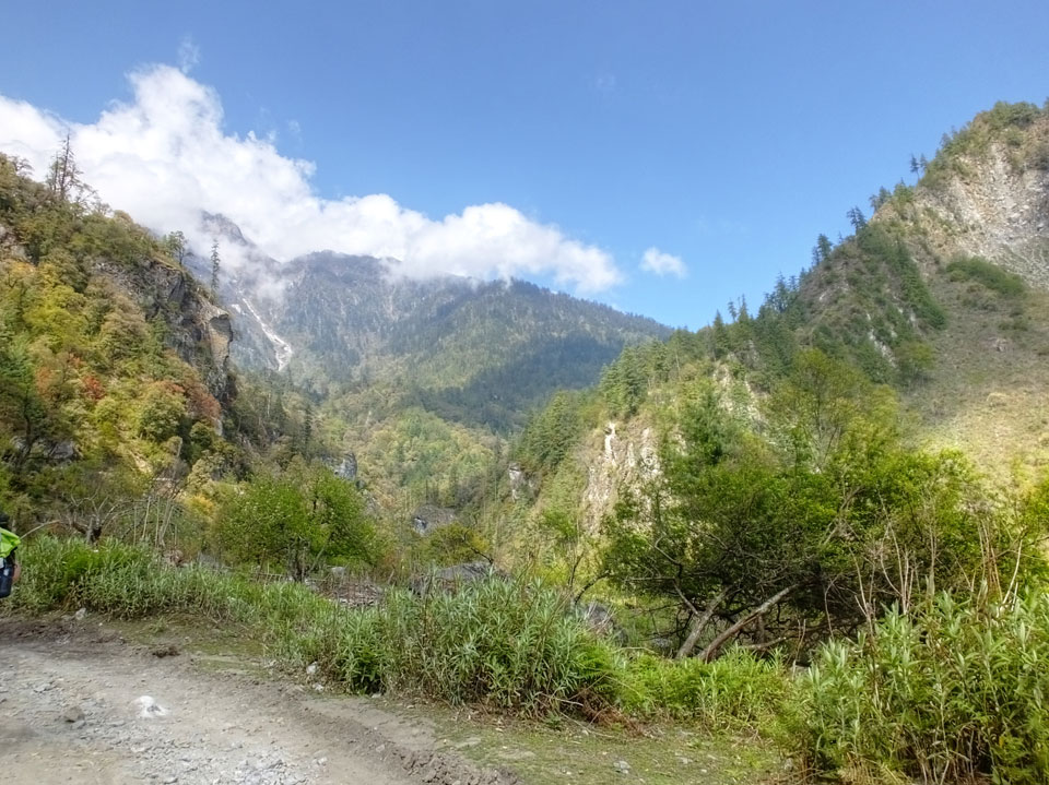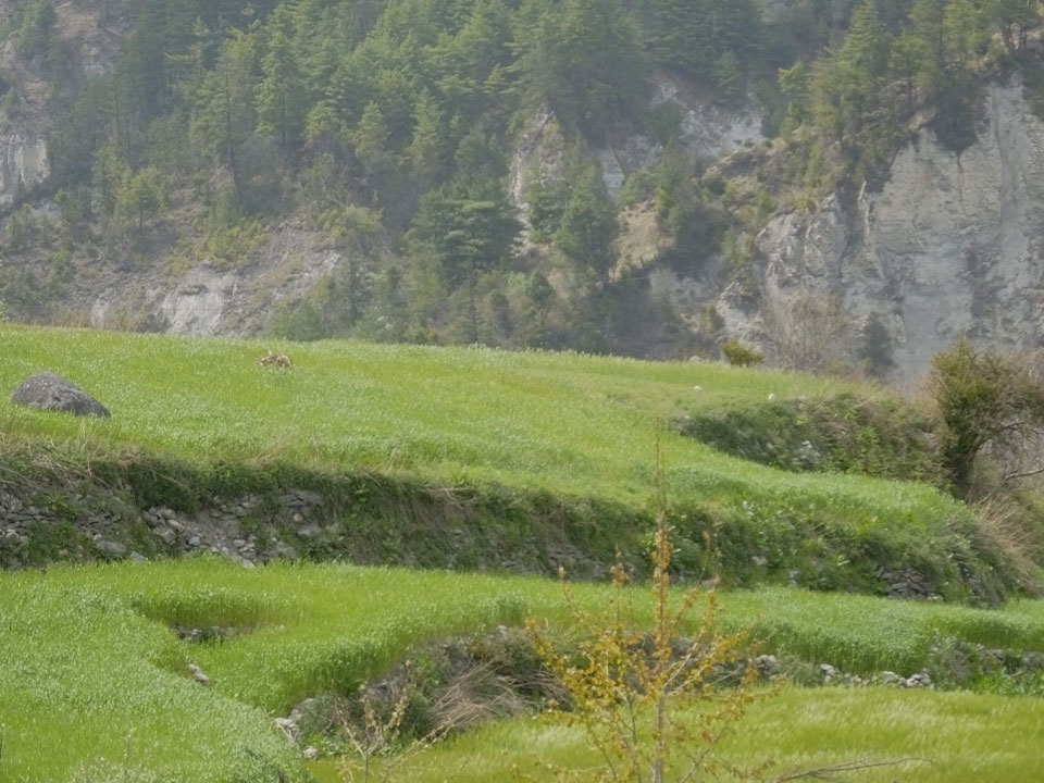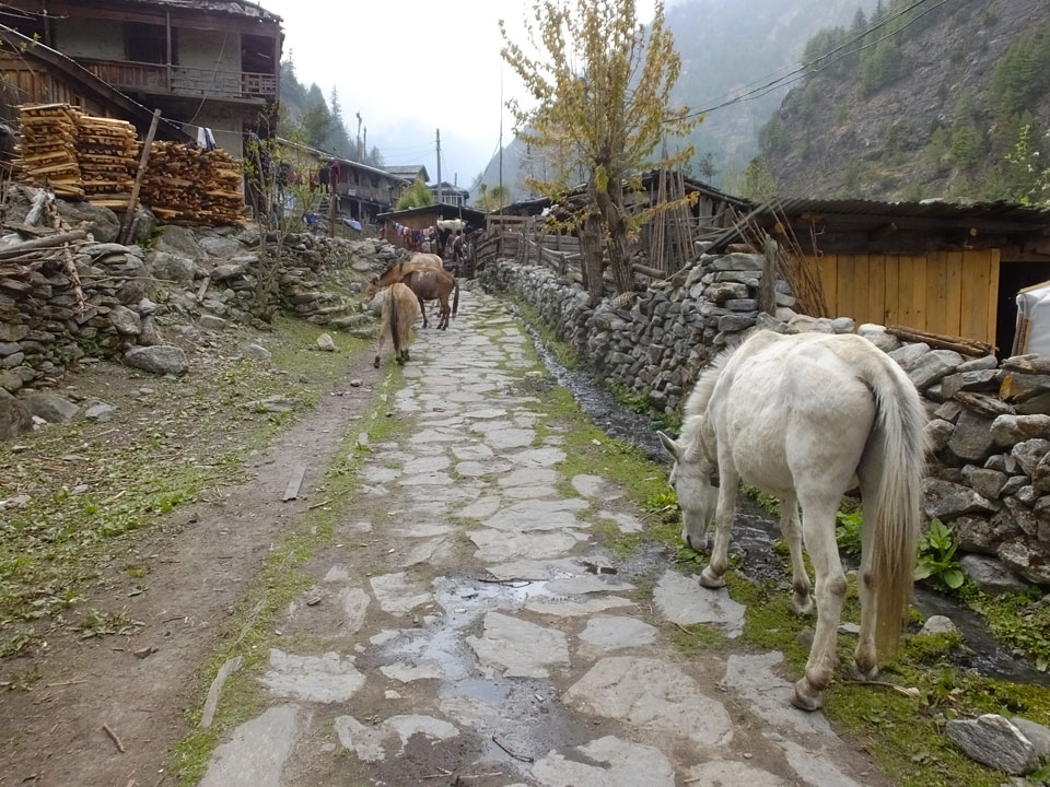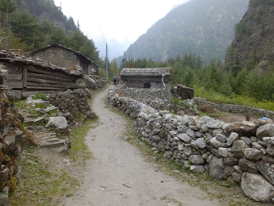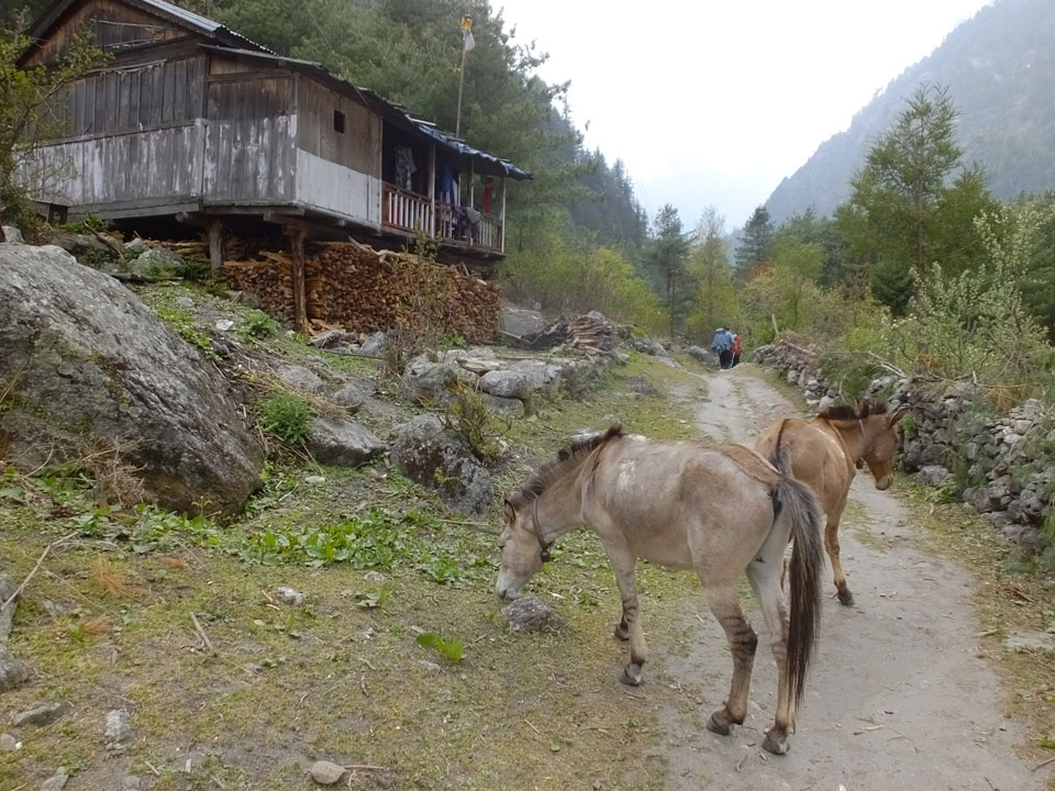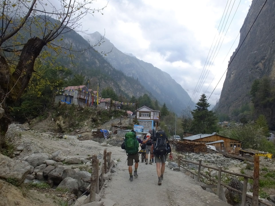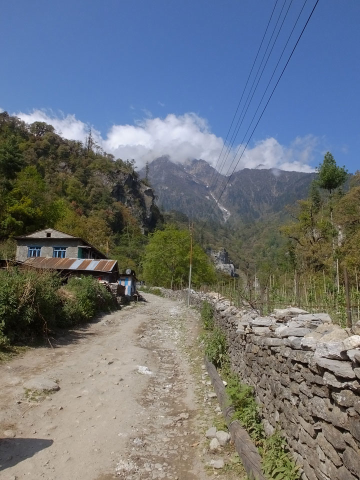 Ich hatte einen Buchweizen Fladen und Omelette zum Frühstück, was mich gut auffüllte. Das Wetter war fantastisch, sodass wir gleich einen Teil des Manaslu (8156m) in der Ferne sahen.