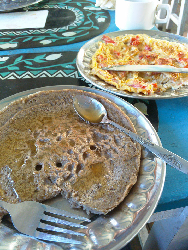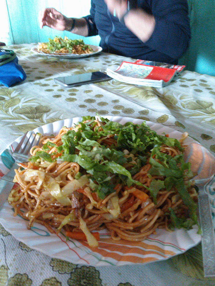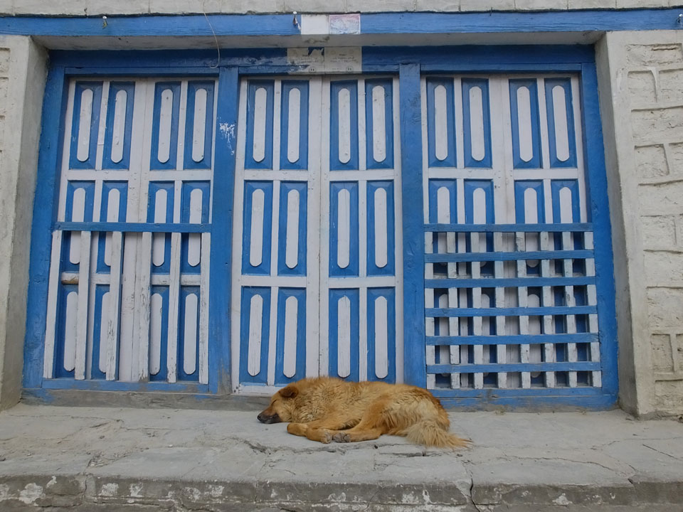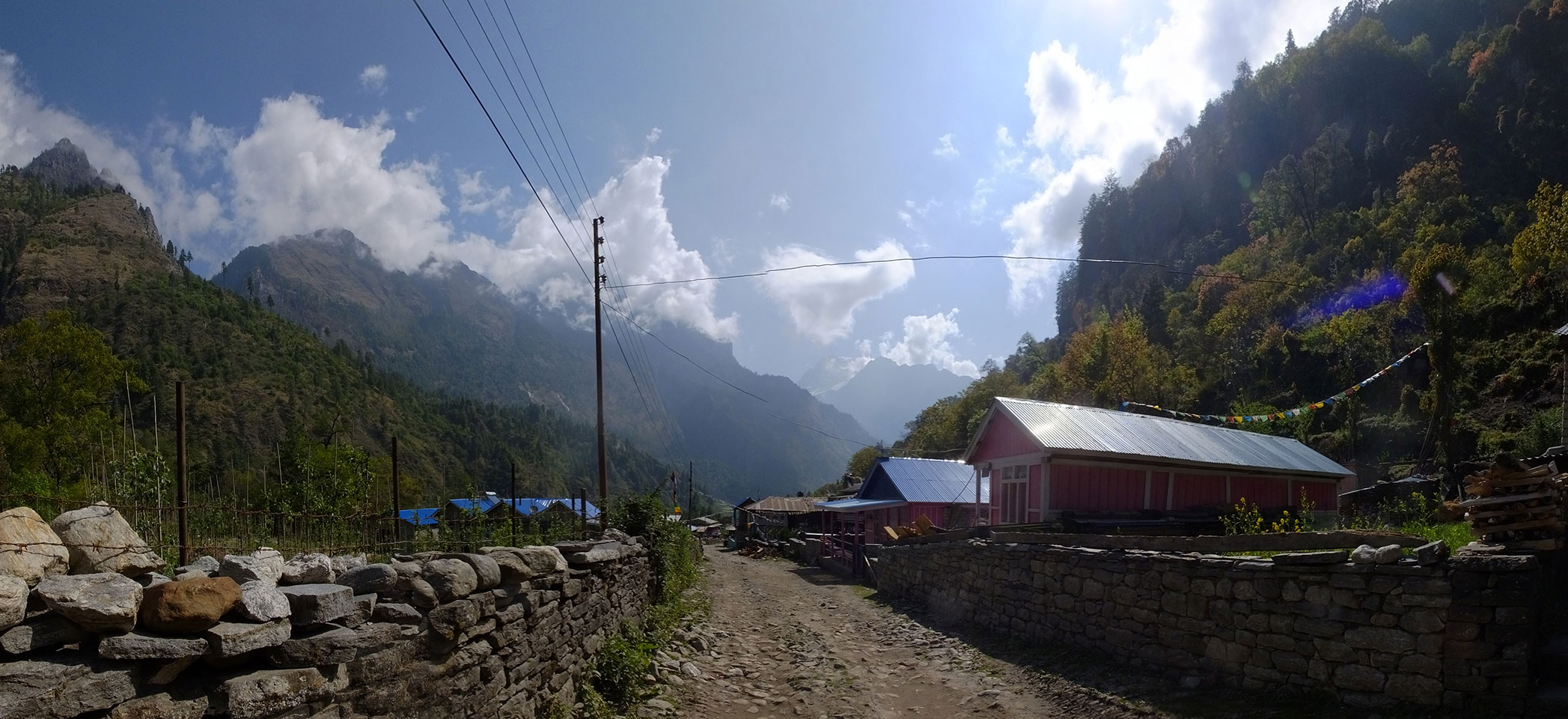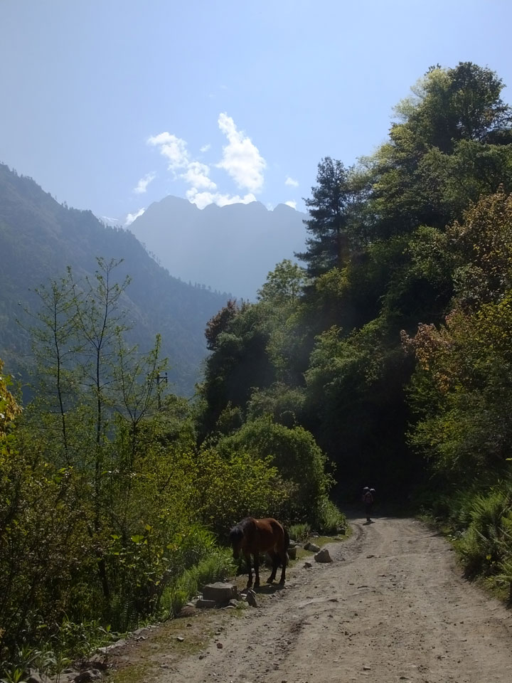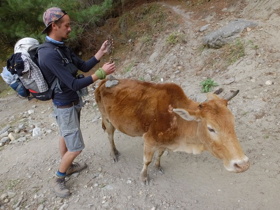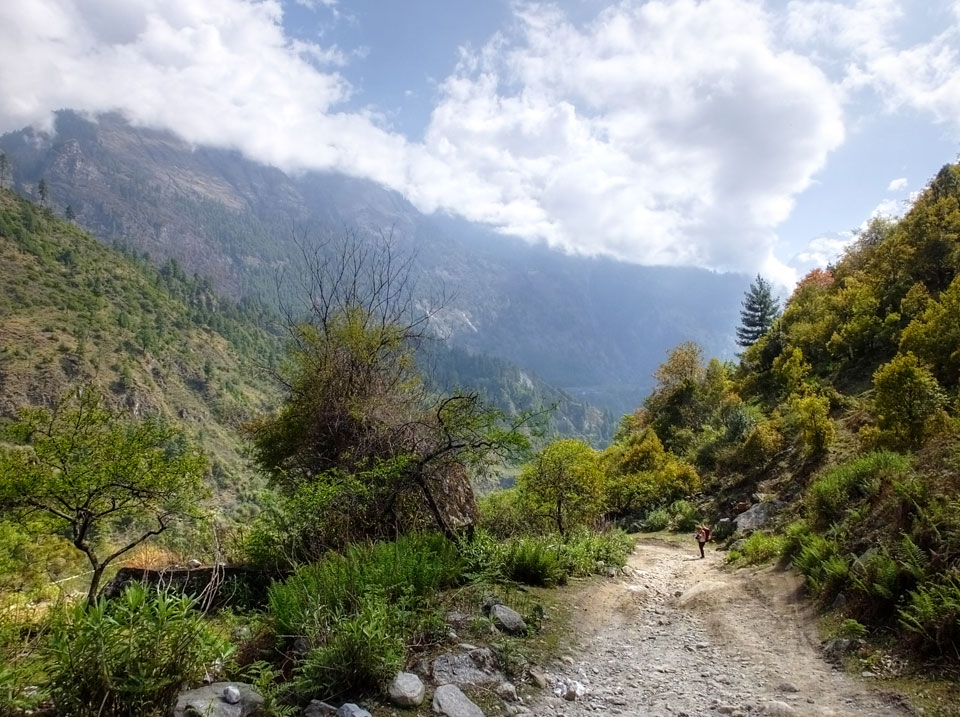 Ich hatte einen Buchweizen Fladen und Omelette zum Frühstück, was mich gut auffüllte. Das Wetter war fantastisch, sodass wir gleich einen Teil des Manaslu (8156m) in der Ferne sahen.