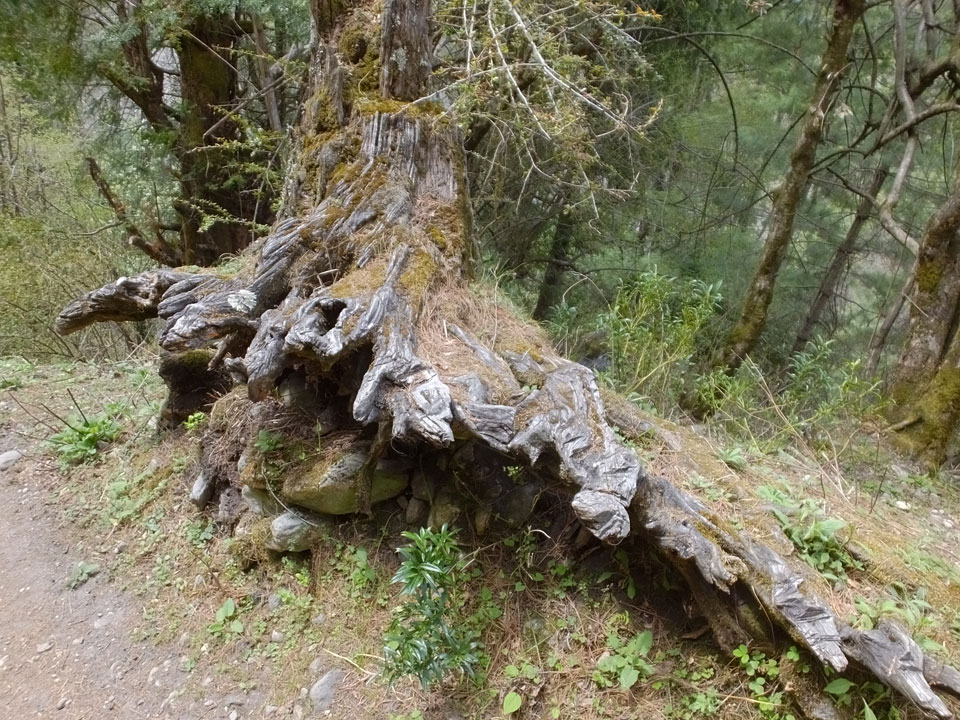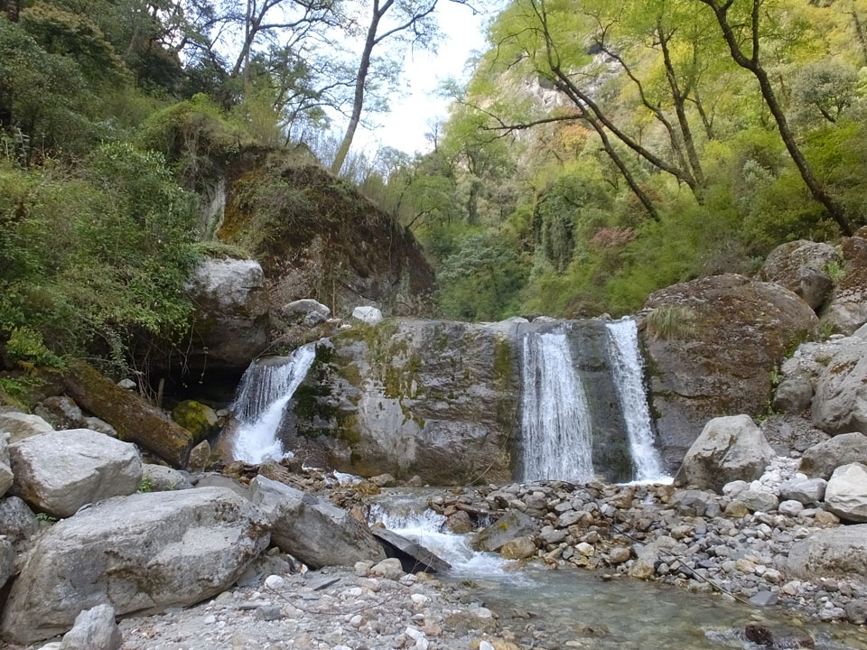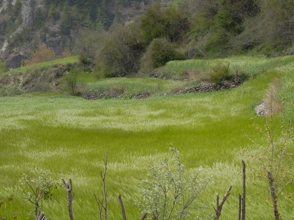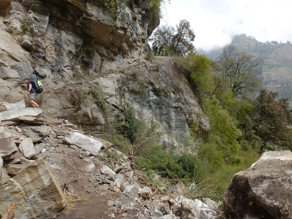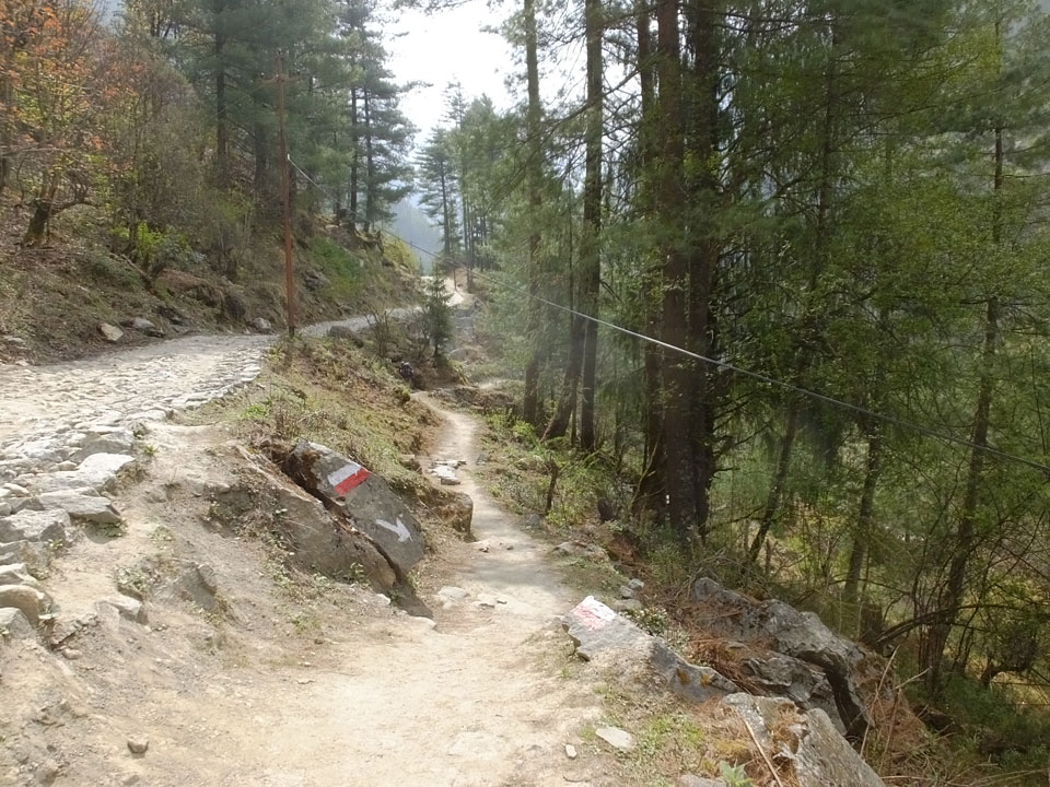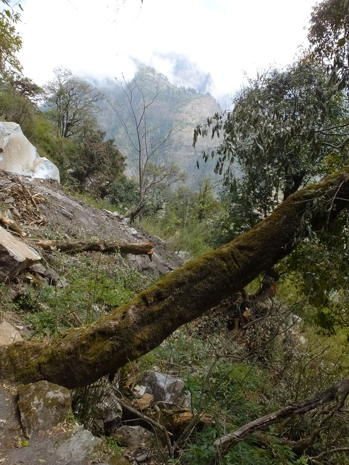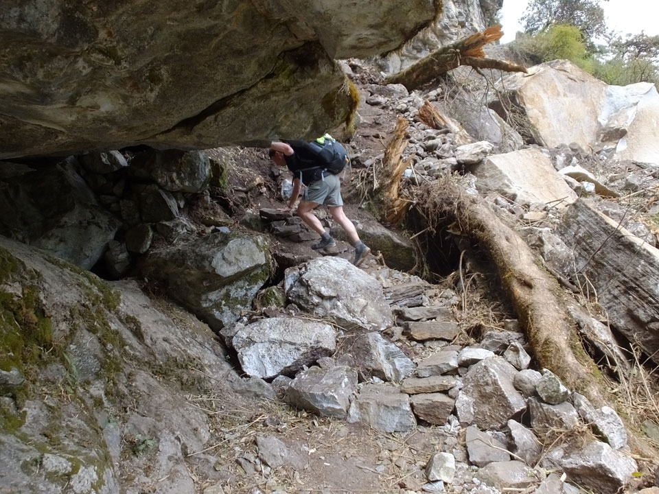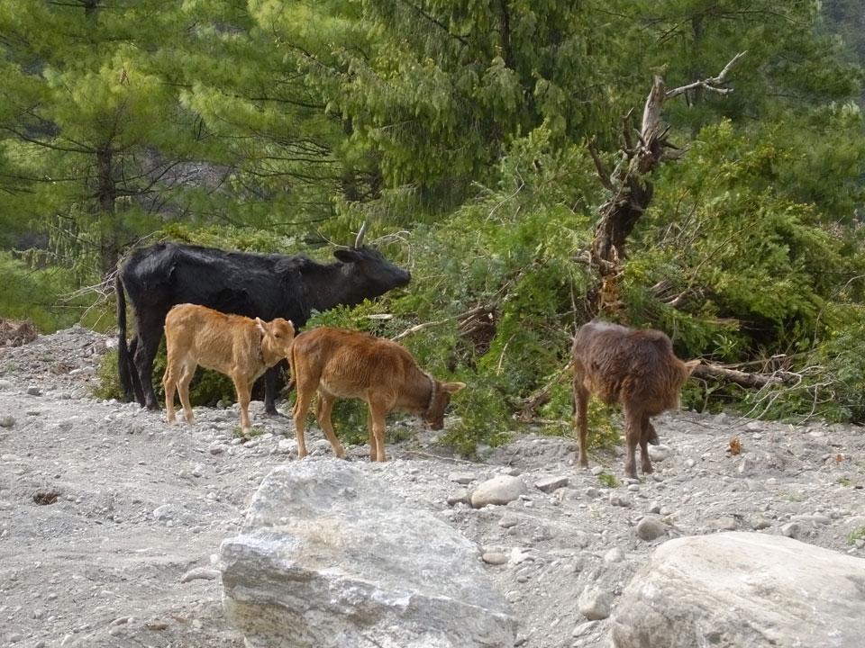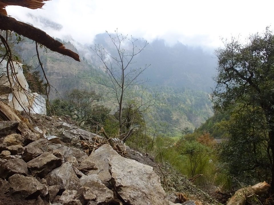 In Chame dann rief die Französin von der gegenüberliegenden Seite aus einem Hotel. Sie war doch schneller unterwegs als wir, was eigentlich unglaublich war. Wir checkten in dem Hotel ein. Ich hatte ein kleines Zimmer mitd em Deutschen. Das Wetter hatte sich heute den ganzen Tag schon zu gezogen, doch hier gab es heiße Quellen, gleich in der Nähe. Ich schnappte also meine Badehose und ging in das heiße Bad – ein kleiner Betonpool. Aber wie fantastisch das war! Das Wasser war so gut und heiß. Genau richtig für meinen Rücken und die Schultern. Ganz so lange konnte man da nicht drin bleiben. Ein paar Nepali saßen da auch da, rauchten einen Joint.