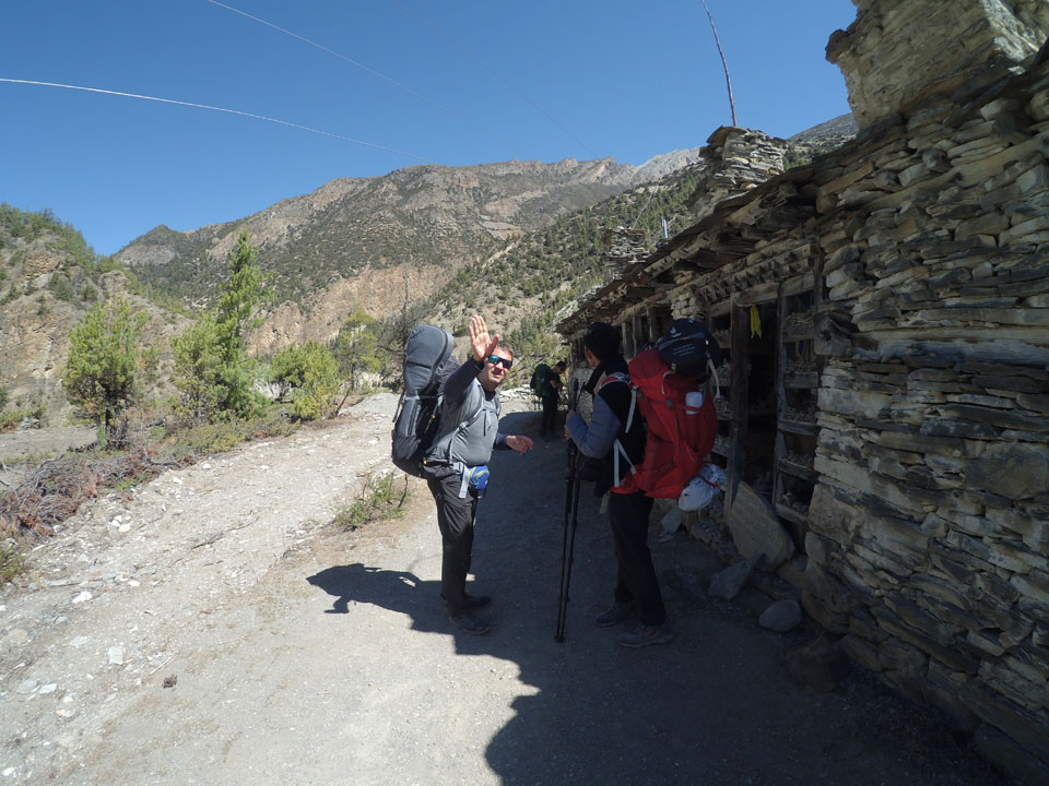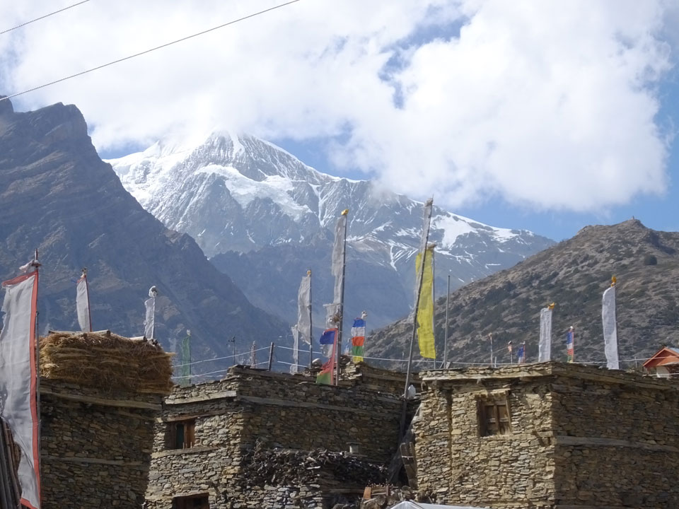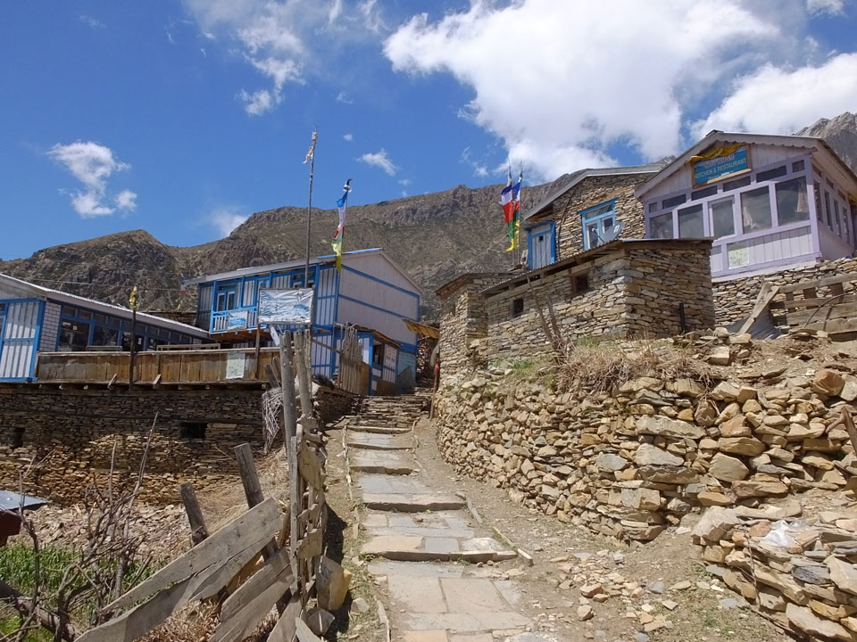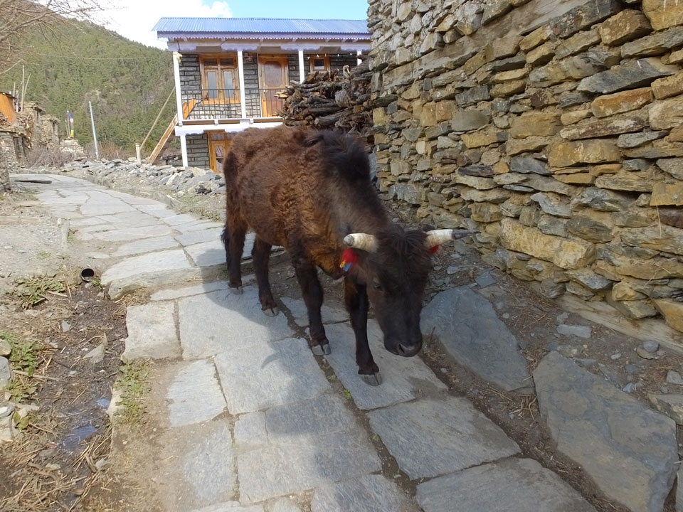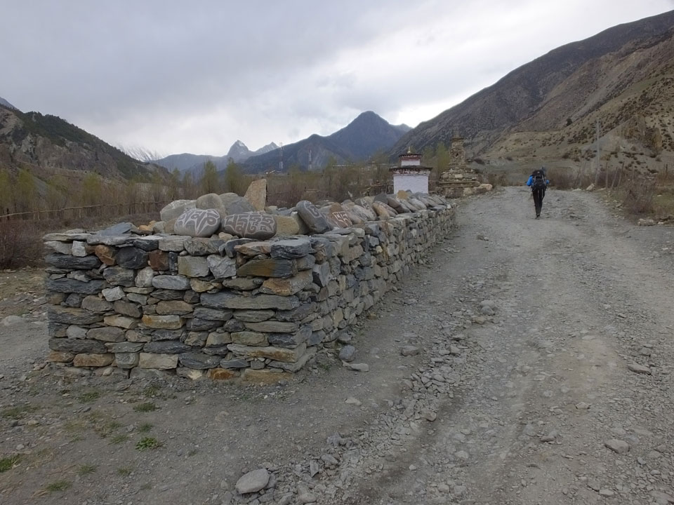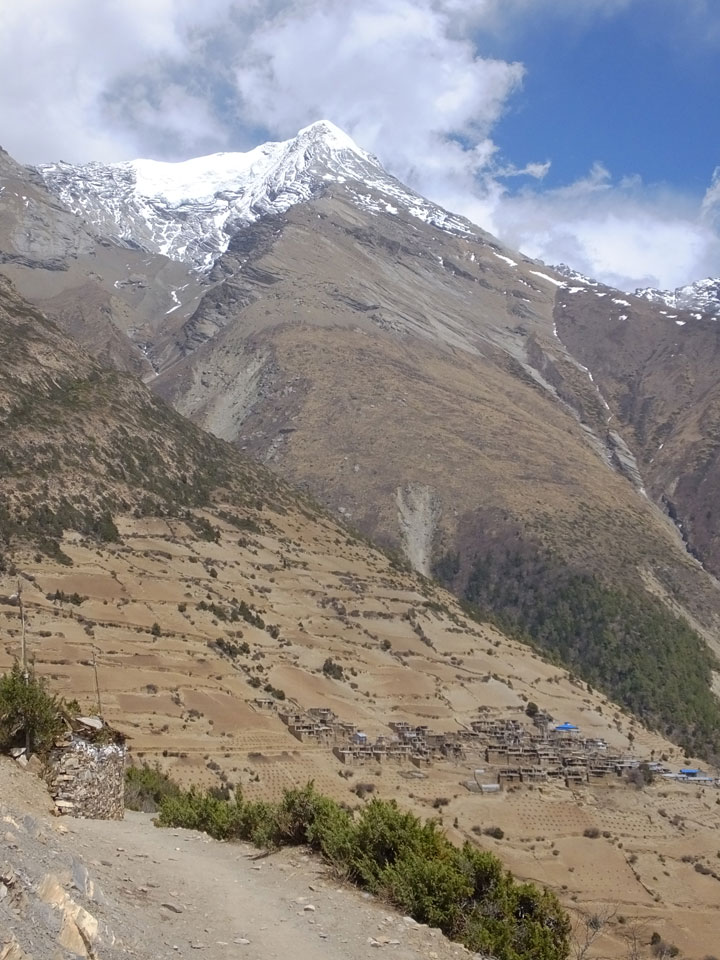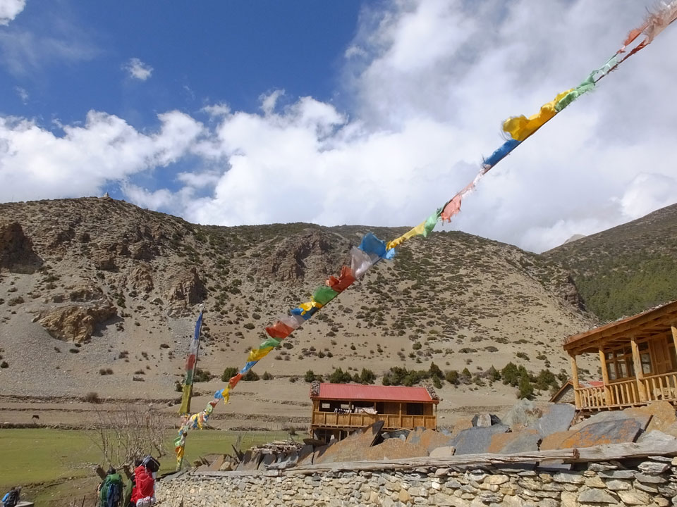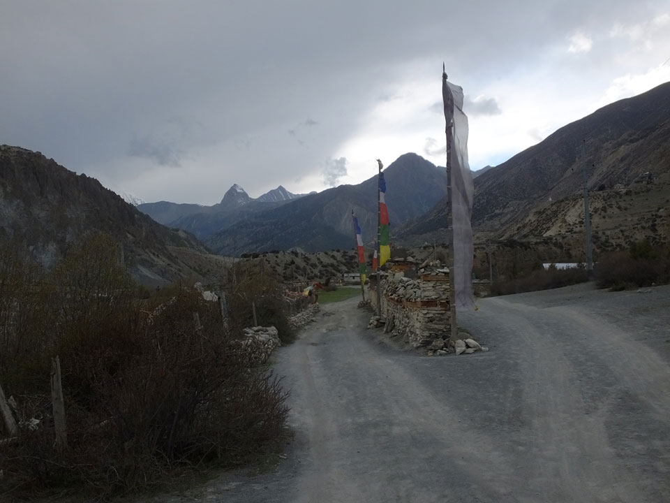 Es kamen noch weitere kleine Dörfer auf dem Weg nach Manang. Eine Pause in Ngang(?) brachte einen Milchkaffee und ich wurde mal ein paar Müsliriegel los. Das Verfallsdatum war 25.3., wobei ich mich da etwas unwohl fühlte, hatte ich die Sachen schon den Leuten angeboten. Ein Philippino und der Thai wollten woanders übernachten und nicht ganz bis nach Manang durchlaufen. Der Deutsche, der heute vor uns aufbracht kam zufällig auch vorbei. Hatten wir ihn doch nochmal wiedergesehen.