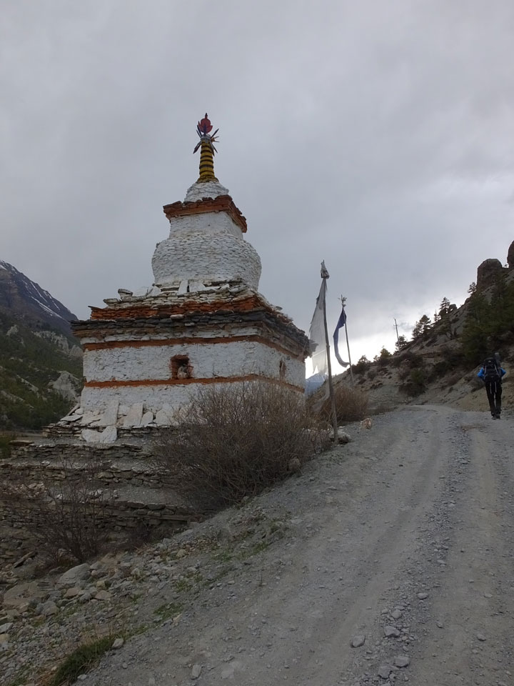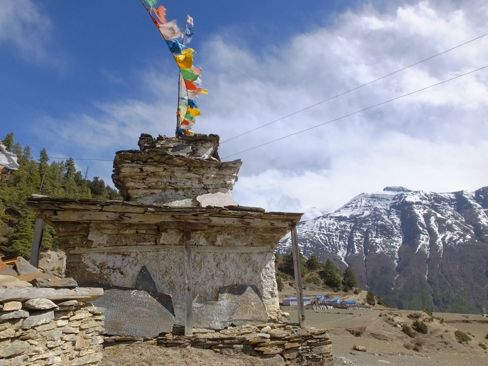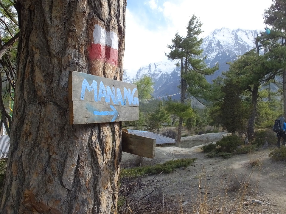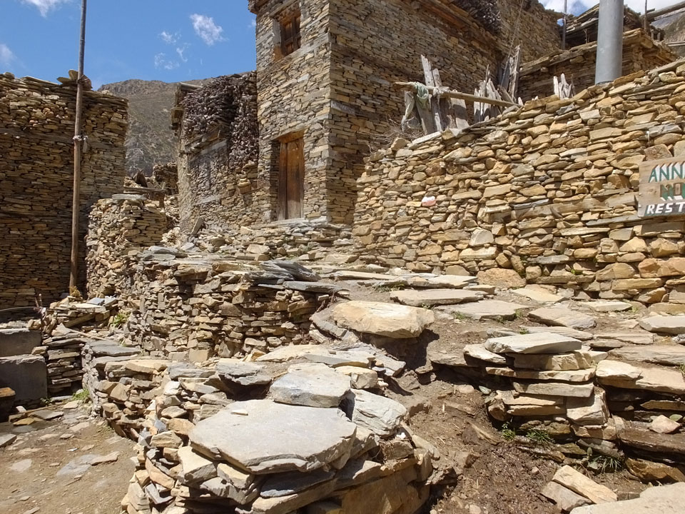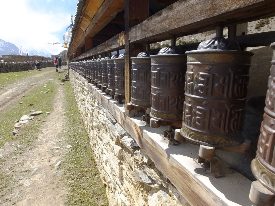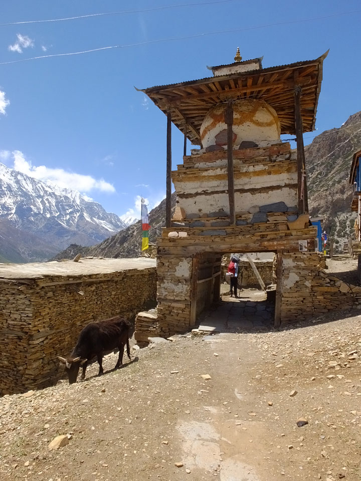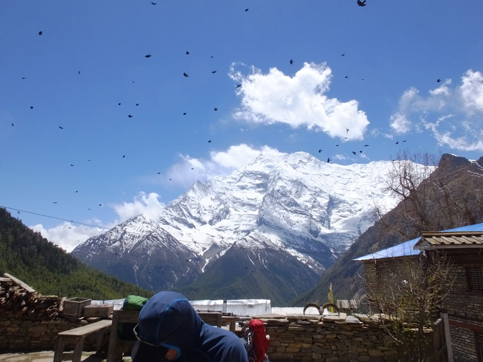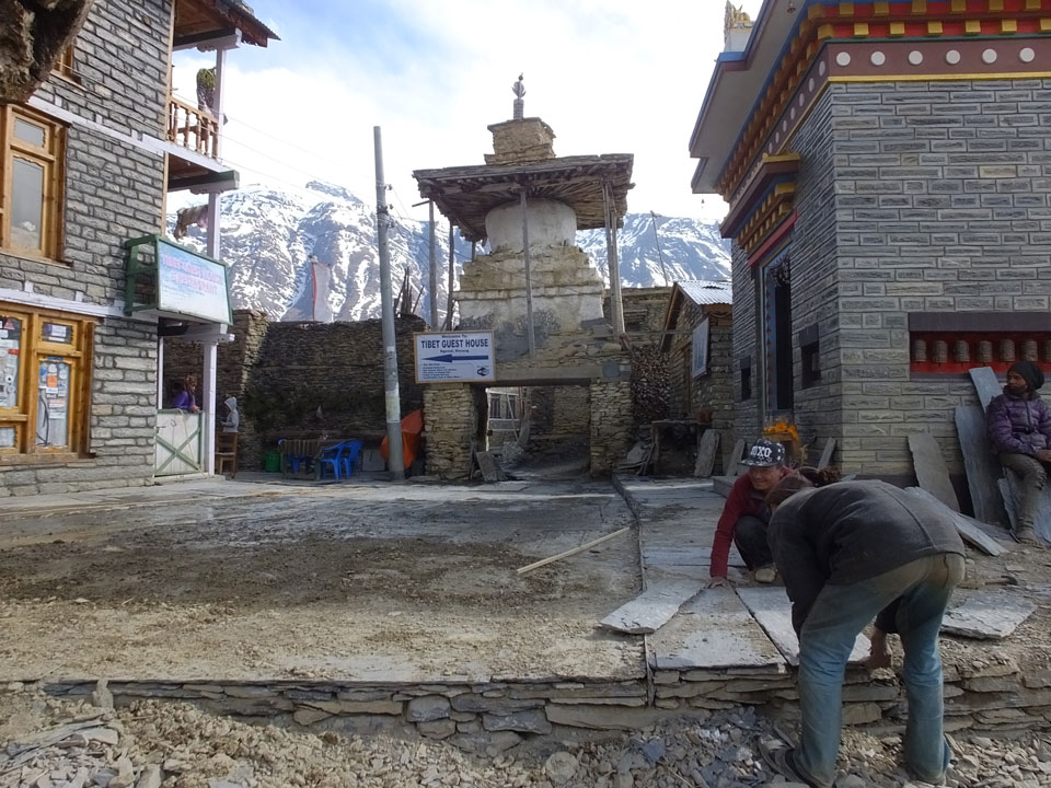 Es kamen noch weitere kleine Dörfer auf dem Weg nach Manang. Eine Pause in Ngang(?) brachte einen Milchkaffee und ich wurde mal ein paar Müsliriegel los. Das Verfallsdatum war 25.3., wobei ich mich da etwas unwohl fühlte, hatte ich die Sachen schon den Leuten angeboten. Ein Philippino und der Thai wollten woanders übernachten und nicht ganz bis nach Manang durchlaufen. Der Deutsche, der heute vor uns aufbracht kam zufällig auch vorbei. Hatten wir ihn doch nochmal wiedergesehen.