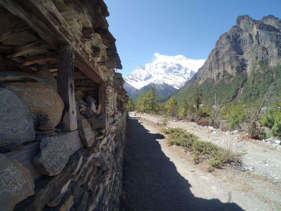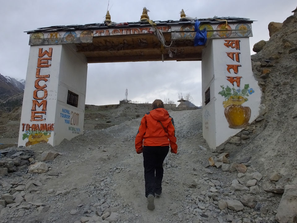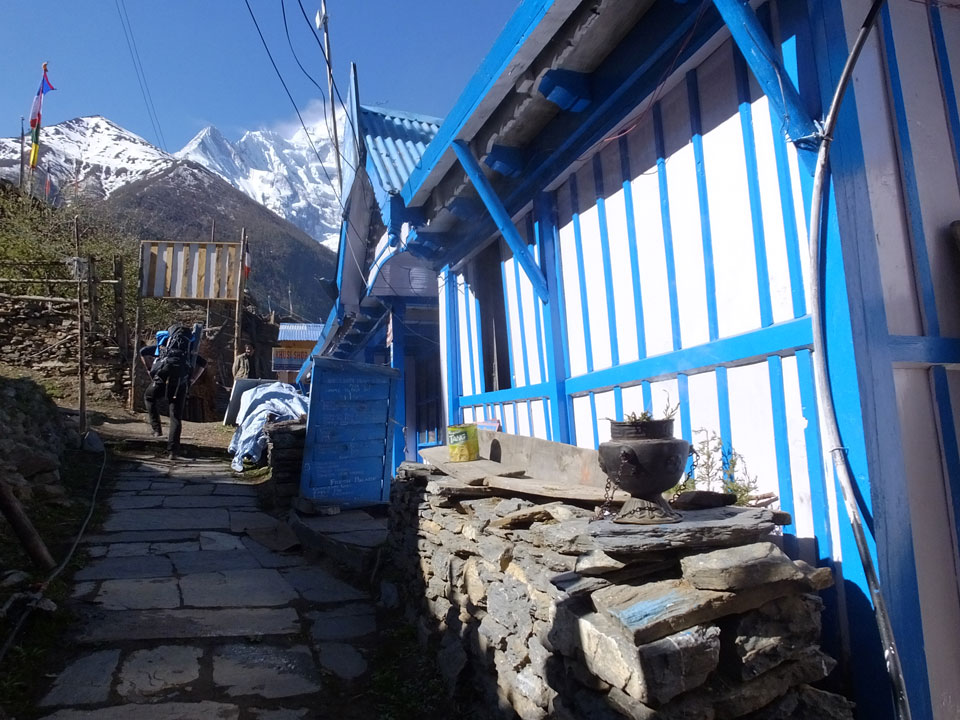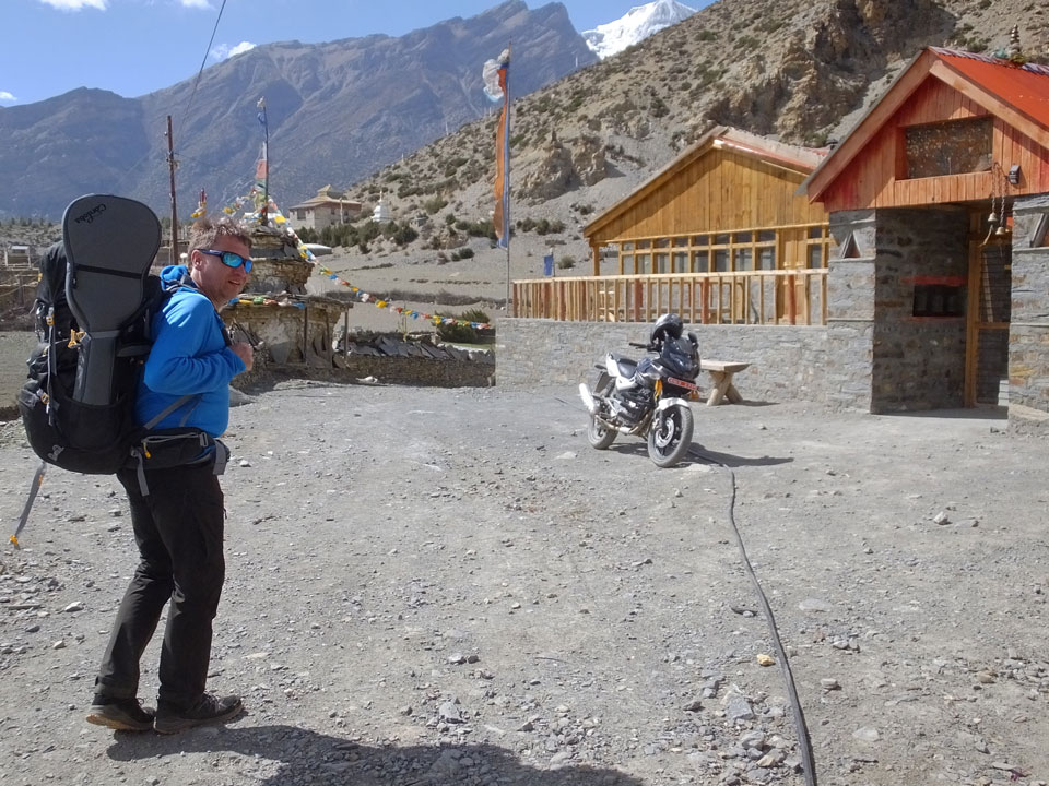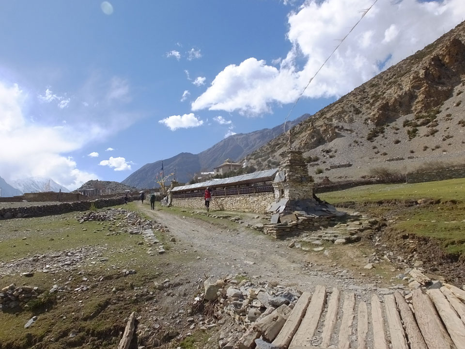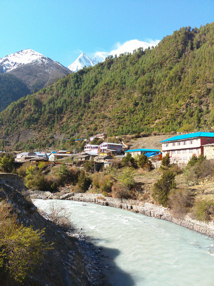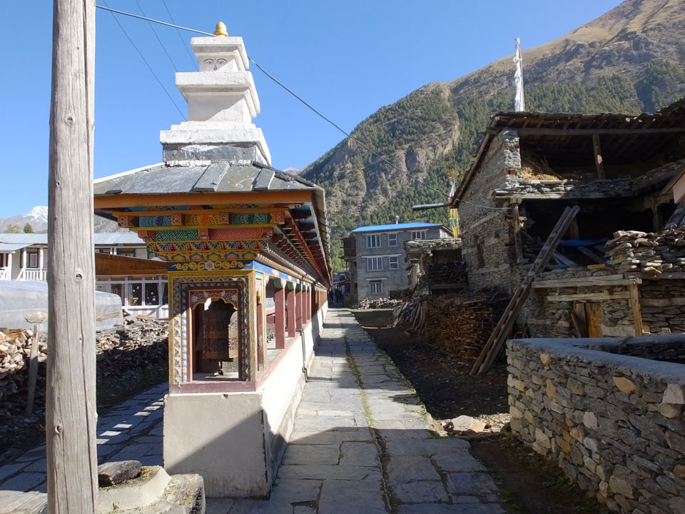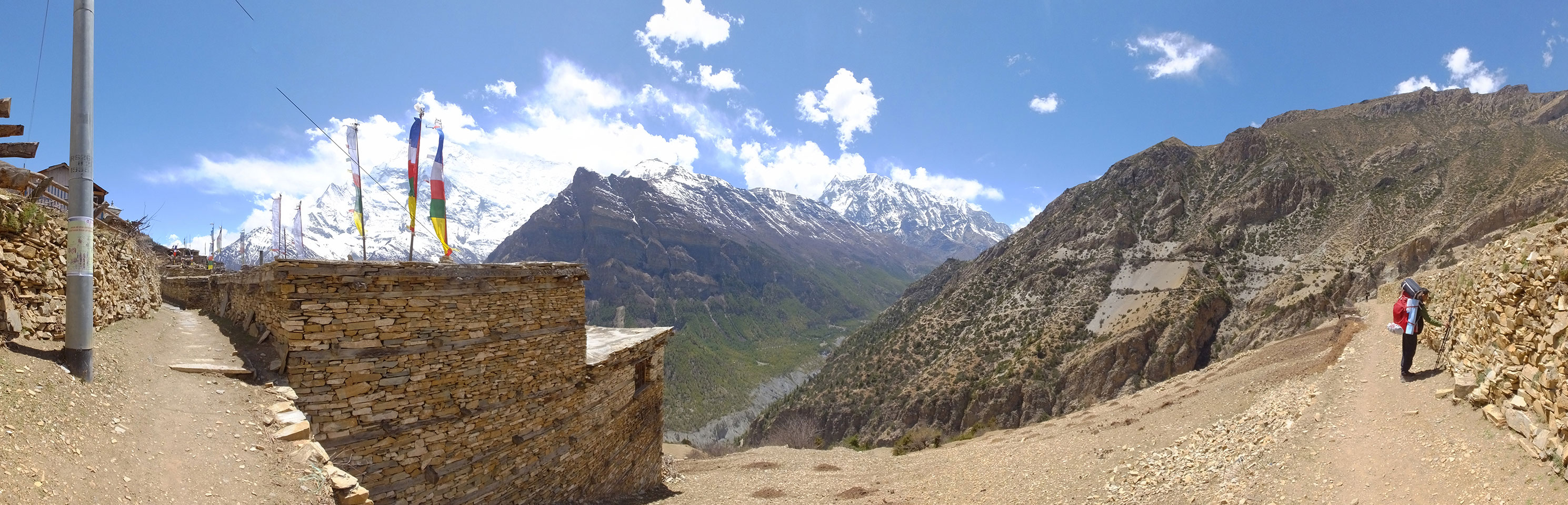 Es kamen noch weitere kleine Dörfer auf dem Weg nach Manang. Eine Pause in Ngang(?) brachte einen Milchkaffee und ich wurde mal ein paar Müsliriegel los. Das Verfallsdatum war 25.3., wobei ich mich da etwas unwohl fühlte, hatte ich die Sachen schon den Leuten angeboten. Ein Philippino und der Thai wollten woanders übernachten und nicht ganz bis nach Manang durchlaufen. Der Deutsche, der heute vor uns aufbracht kam zufällig auch vorbei. Hatten wir ihn doch nochmal wiedergesehen.