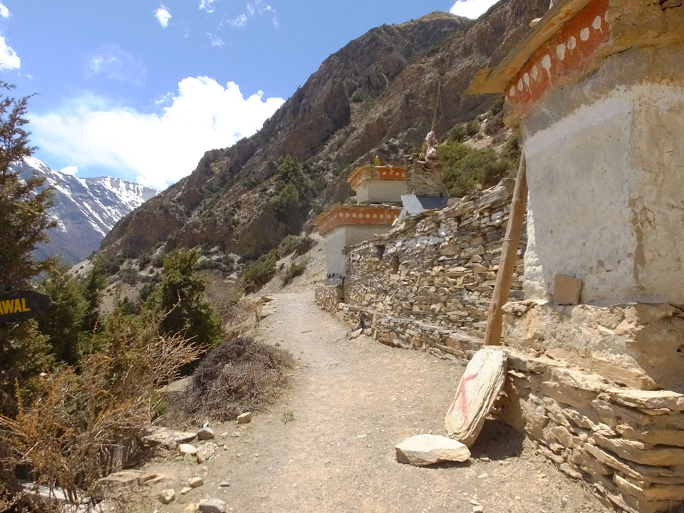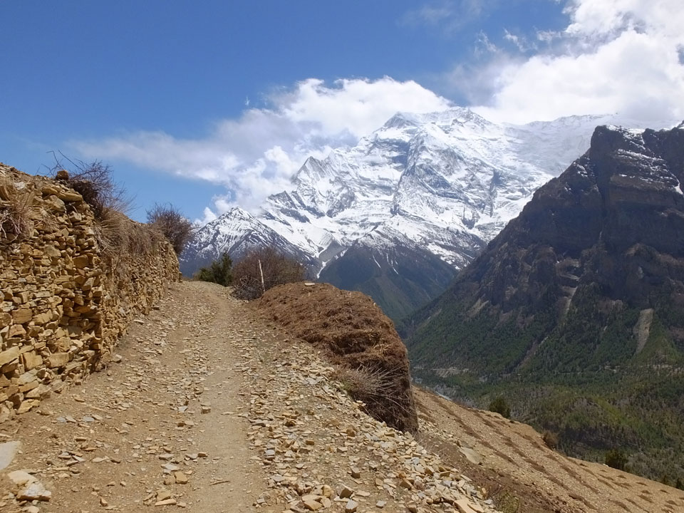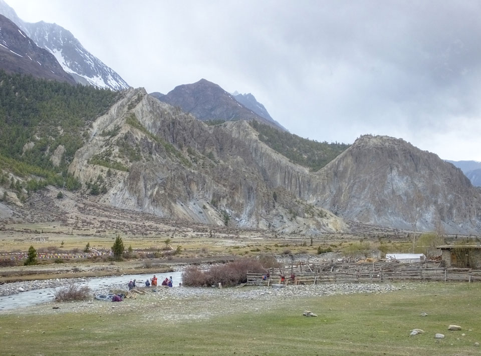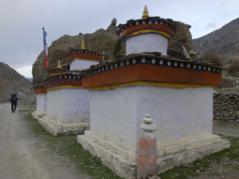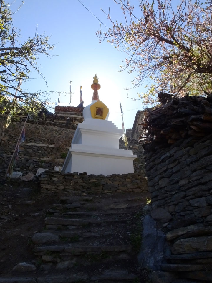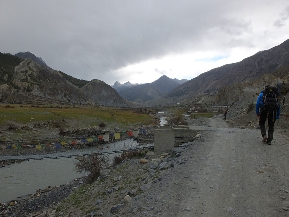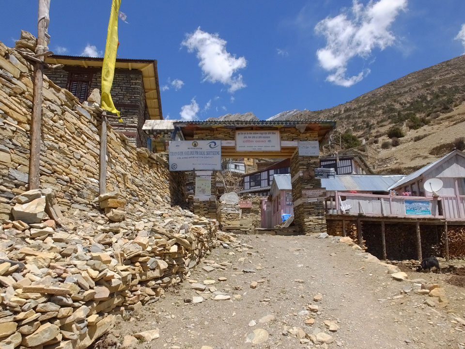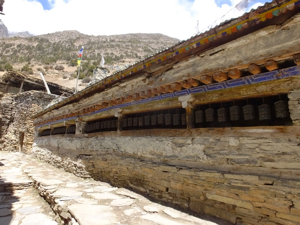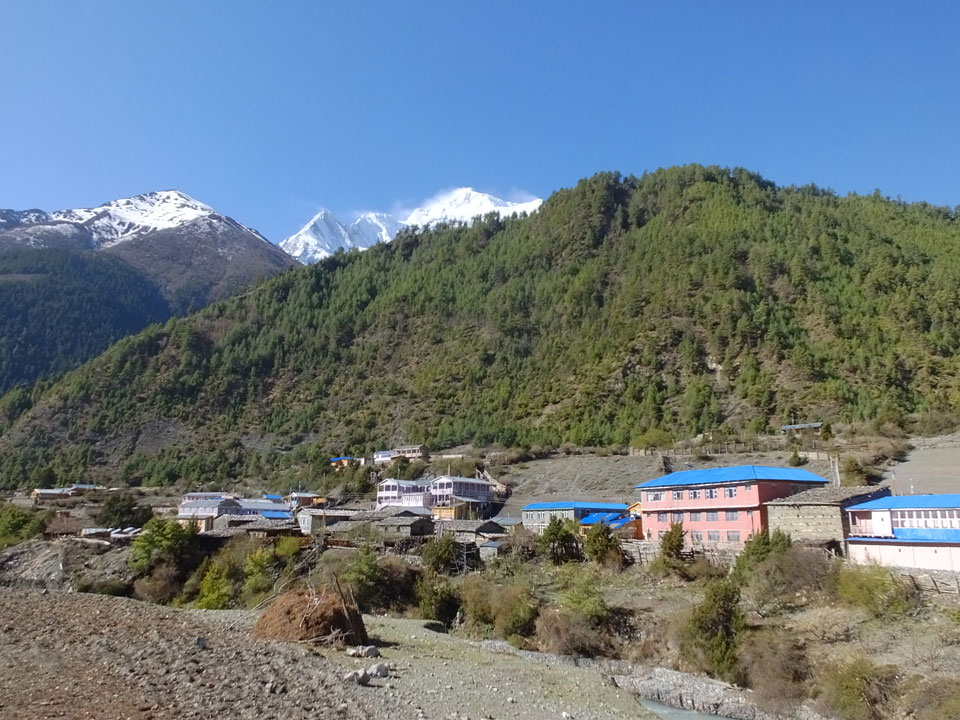 Es kamen noch weitere kleine Dörfer auf dem Weg nach Manang. Eine Pause in Ngang(?) brachte einen Milchkaffee und ich wurde mal ein paar Müsliriegel los. Das Verfallsdatum war 25.3., wobei ich mich da etwas unwohl fühlte, hatte ich die Sachen schon den Leuten angeboten. Ein Philippino und der Thai wollten woanders übernachten und nicht ganz bis nach Manang durchlaufen. Der Deutsche, der heute vor uns aufbracht kam zufällig auch vorbei. Hatten wir ihn doch nochmal wiedergesehen.