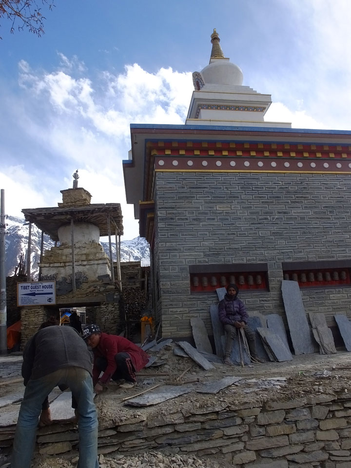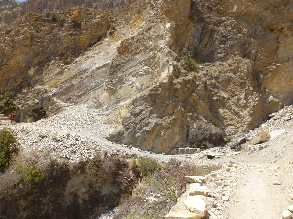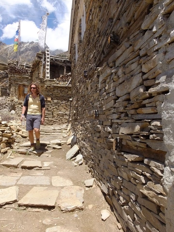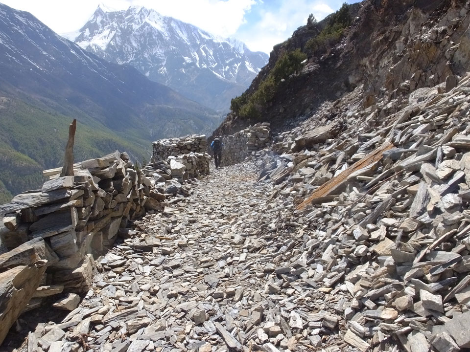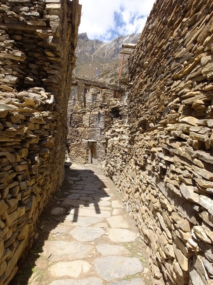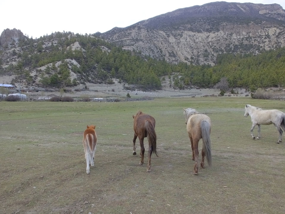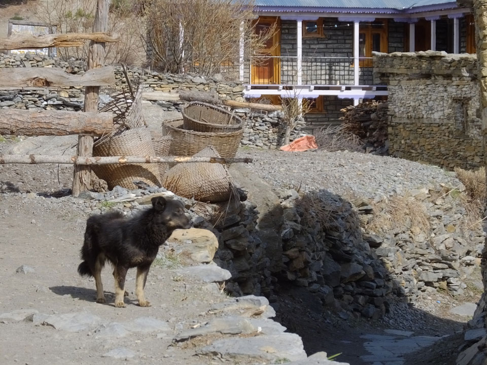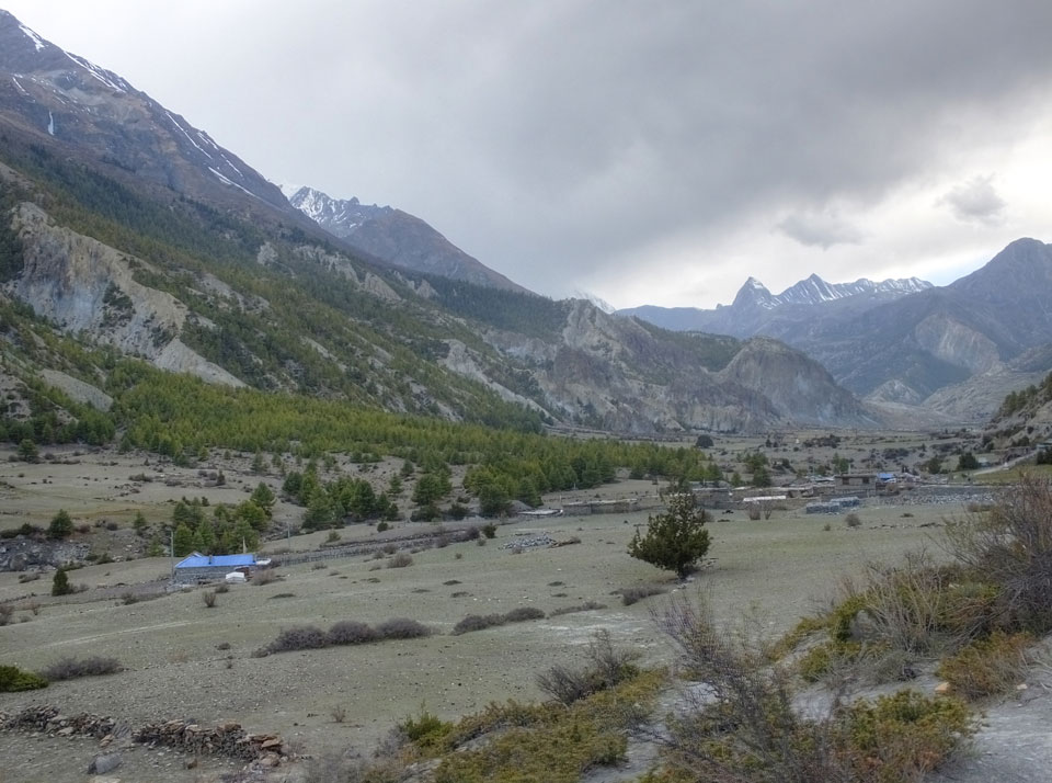 Es kamen noch weitere kleine Dörfer auf dem Weg nach Manang. Eine Pause in Ngang(?) brachte einen Milchkaffee und ich wurde mal ein paar Müsliriegel los. Das Verfallsdatum war 25.3., wobei ich mich da etwas unwohl fühlte, hatte ich die Sachen schon den Leuten angeboten. Ein Philippino und der Thai wollten woanders übernachten und nicht ganz bis nach Manang durchlaufen. Der Deutsche, der heute vor uns aufbracht kam zufällig auch vorbei. Hatten wir ihn doch nochmal wiedergesehen.