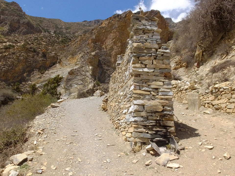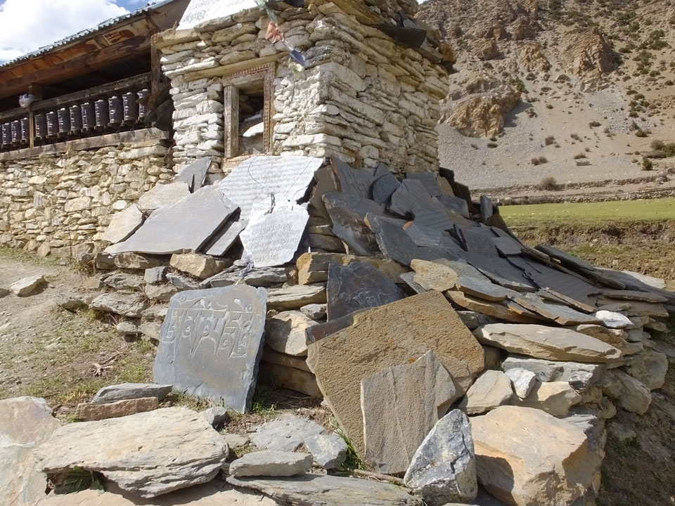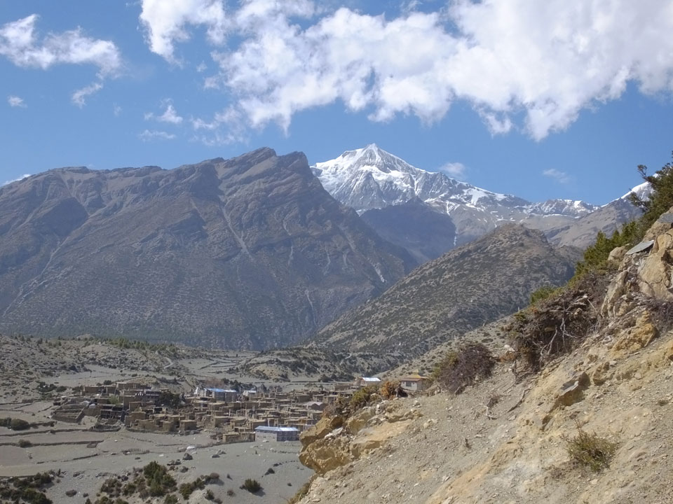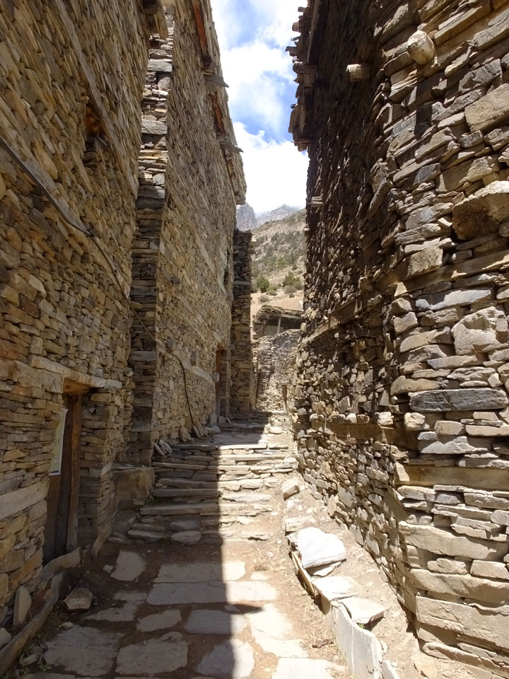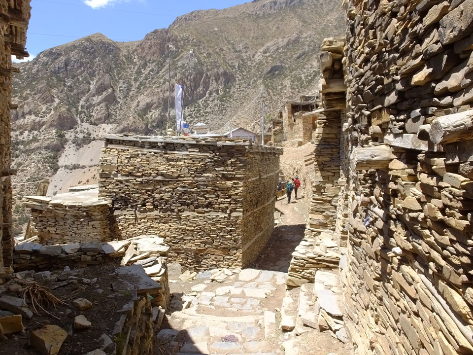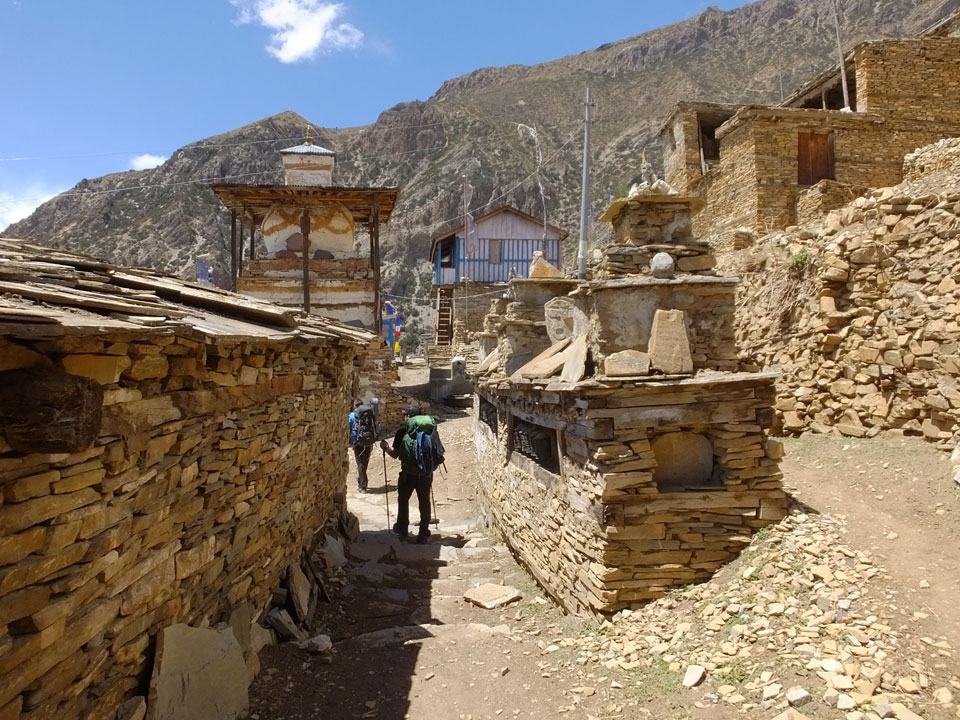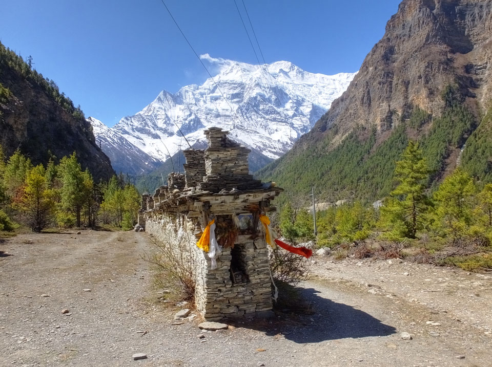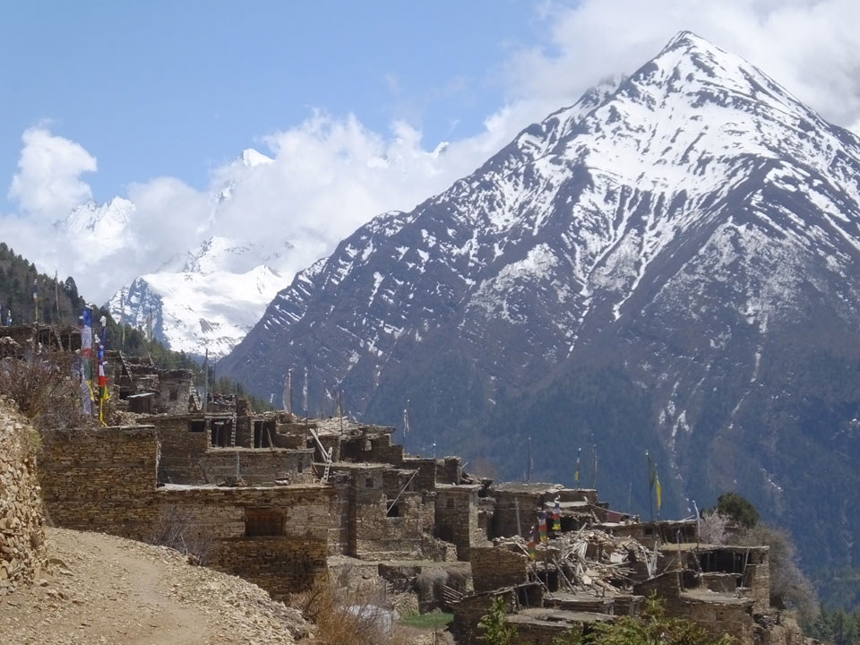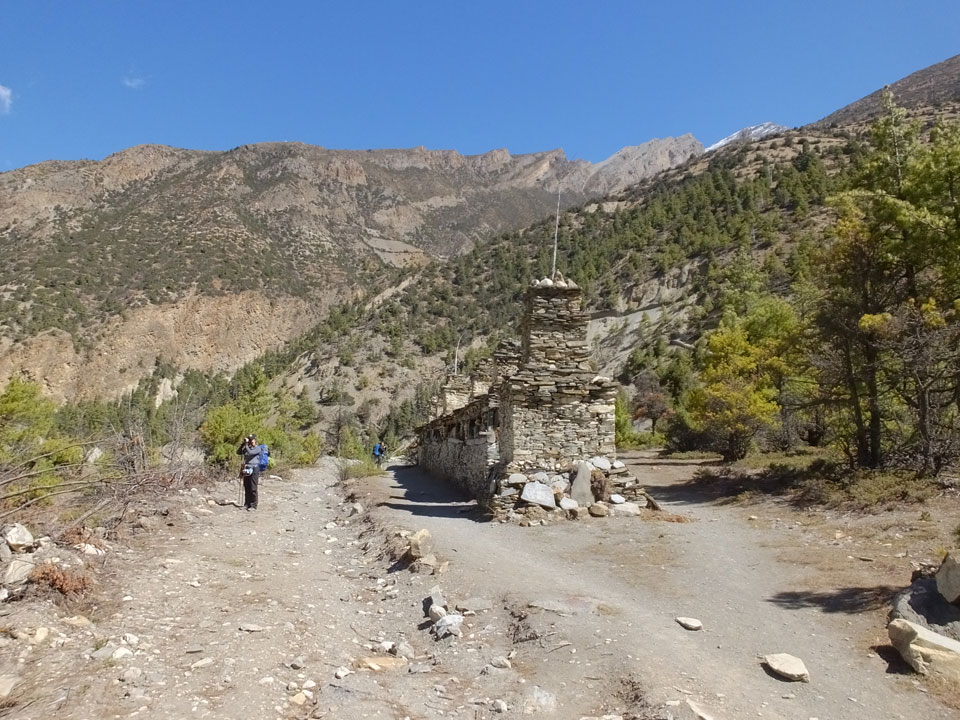 Es kamen noch weitere kleine Dörfer auf dem Weg nach Manang. Eine Pause in Ngang(?) brachte einen Milchkaffee und ich wurde mal ein paar Müsliriegel los. Das Verfallsdatum war 25.3., wobei ich mich da etwas unwohl fühlte, hatte ich die Sachen schon den Leuten angeboten. Ein Philippino und der Thai wollten woanders übernachten und nicht ganz bis nach Manang durchlaufen. Der Deutsche, der heute vor uns aufbracht kam zufällig auch vorbei. Hatten wir ihn doch nochmal wiedergesehen.