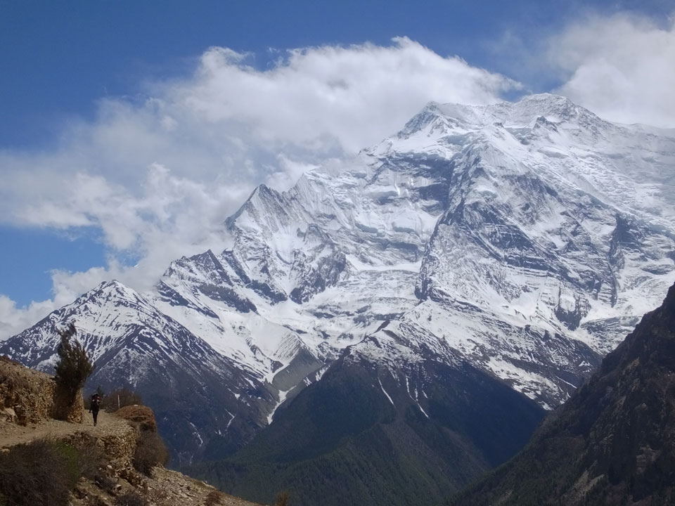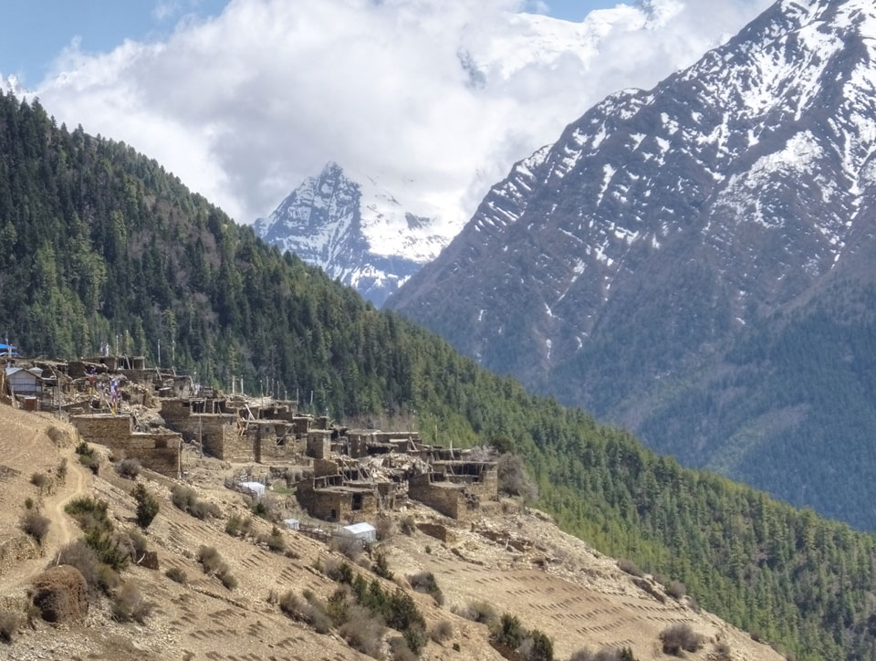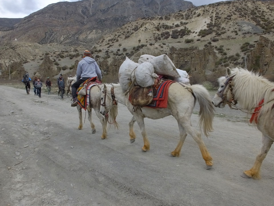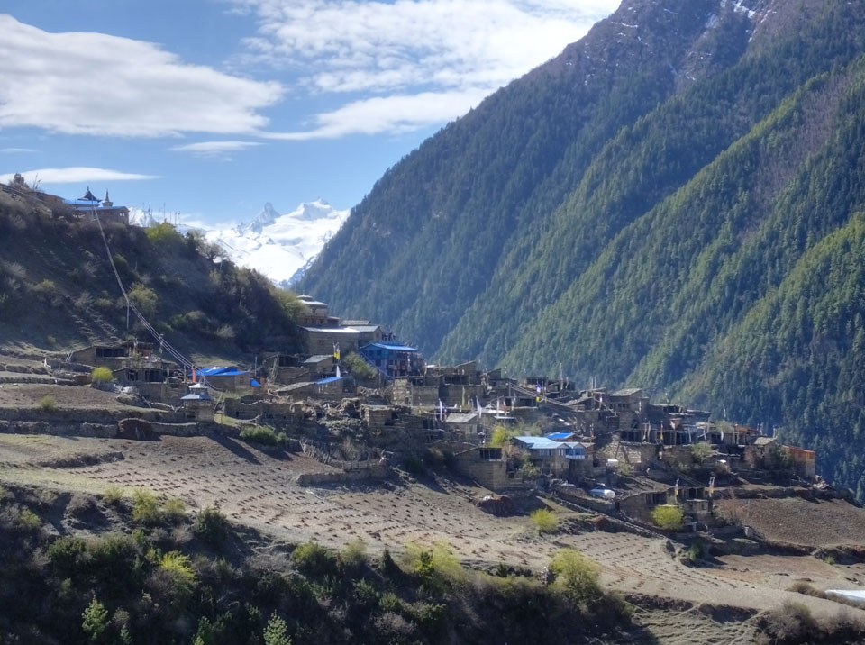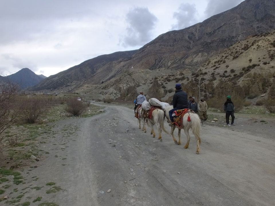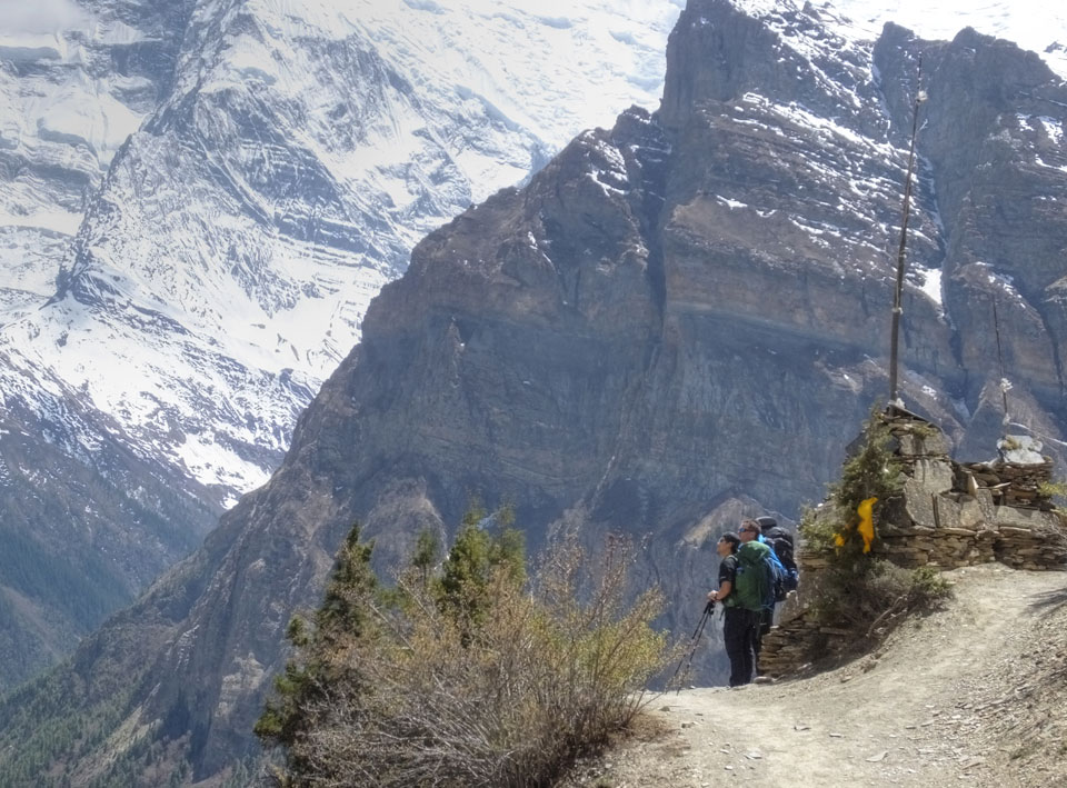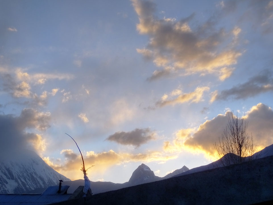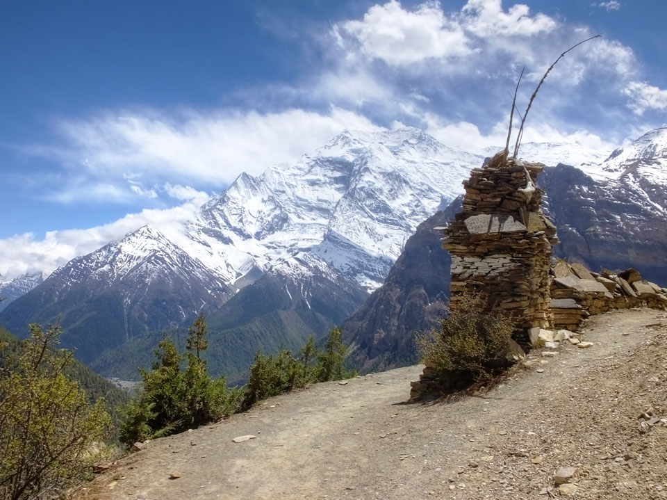 Es kamen noch weitere kleine Dörfer auf dem Weg nach Manang. Eine Pause in Ngang(?) brachte einen Milchkaffee und ich wurde mal ein paar Müsliriegel los. Das Verfallsdatum war 25.3., wobei ich mich da etwas unwohl fühlte, hatte ich die Sachen schon den Leuten angeboten. Ein Philippino und der Thai wollten woanders übernachten und nicht ganz bis nach Manang durchlaufen. Der Deutsche, der heute vor uns aufbracht kam zufällig auch vorbei. Hatten wir ihn doch nochmal wiedergesehen.
