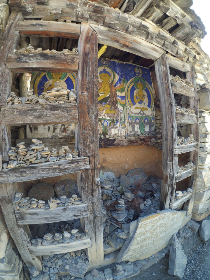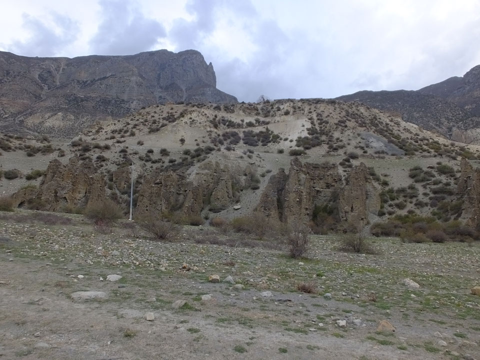 In der Ferne dann winkte ich den beiden Asiaten „See you“ und si „go go“. In zügigem Schritt kamen wir gut voran. Meine Blasen an den Füßen machten das Laufen zwar nicht zum Genuss, aber was will man machen. Durch staubige Pfade, vorbei an surrealen Felsen in einer tollen Szenerie. Noch eine Rast bei Cinnamon Roll und dann nach 18:00 erst in Manang.